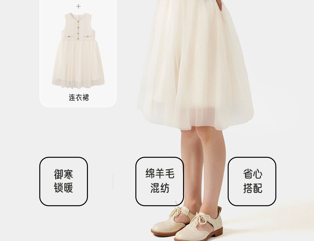 英氏童装女童衣服秋冬连衣裙保暖外套女生衣裙套装中大童套装新款