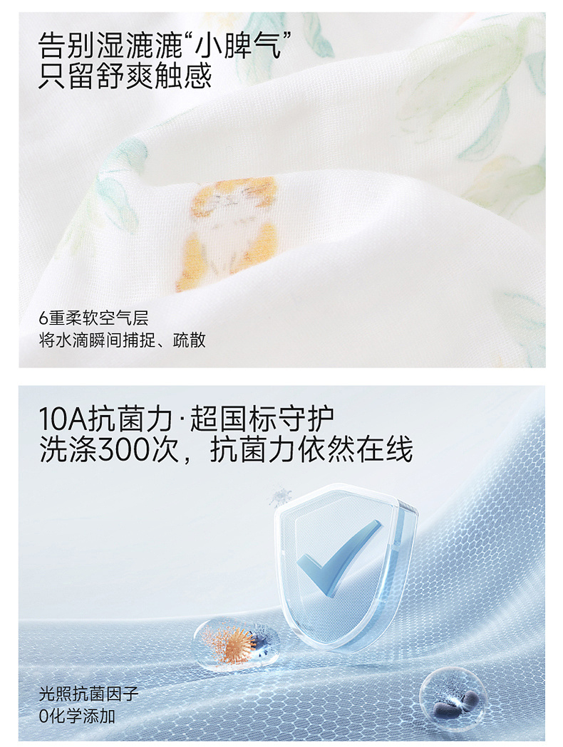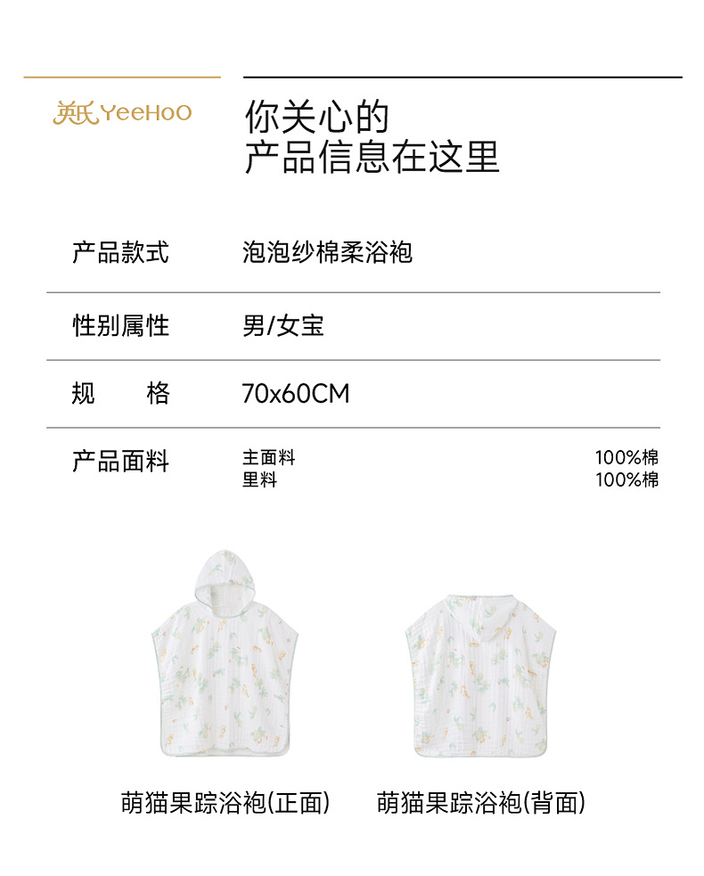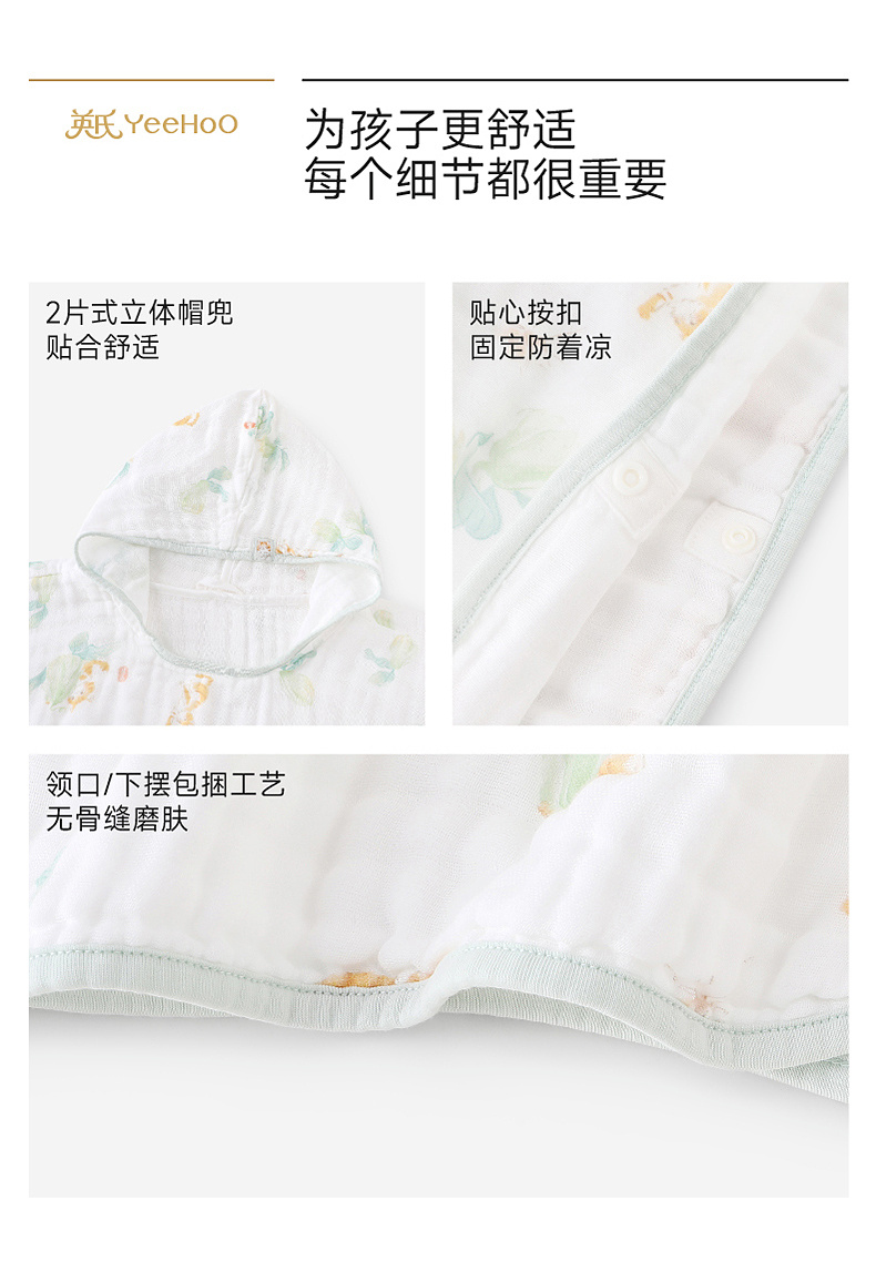 【商场同款】英氏儿童浴巾新生儿纯棉抑菌浴袍婴儿吸水泡泡纱包单