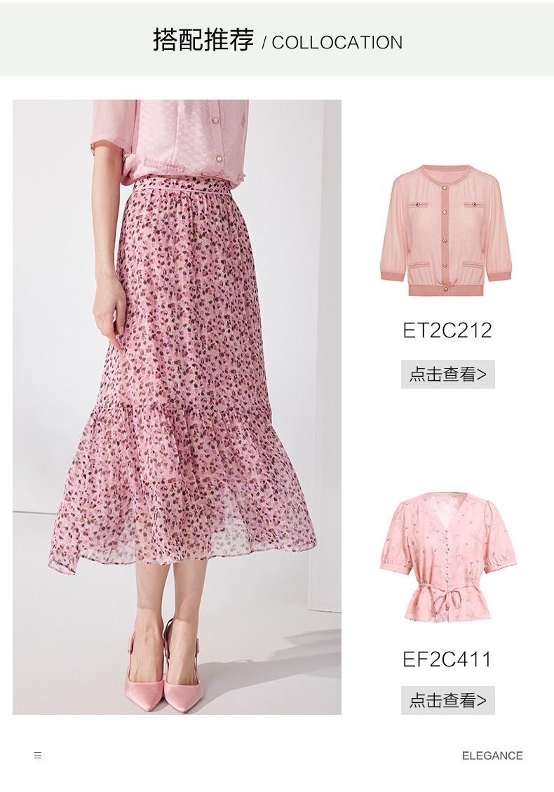 乔万尼新品夏桑蚕丝半身裙中长款显瘦长裙ET2D298