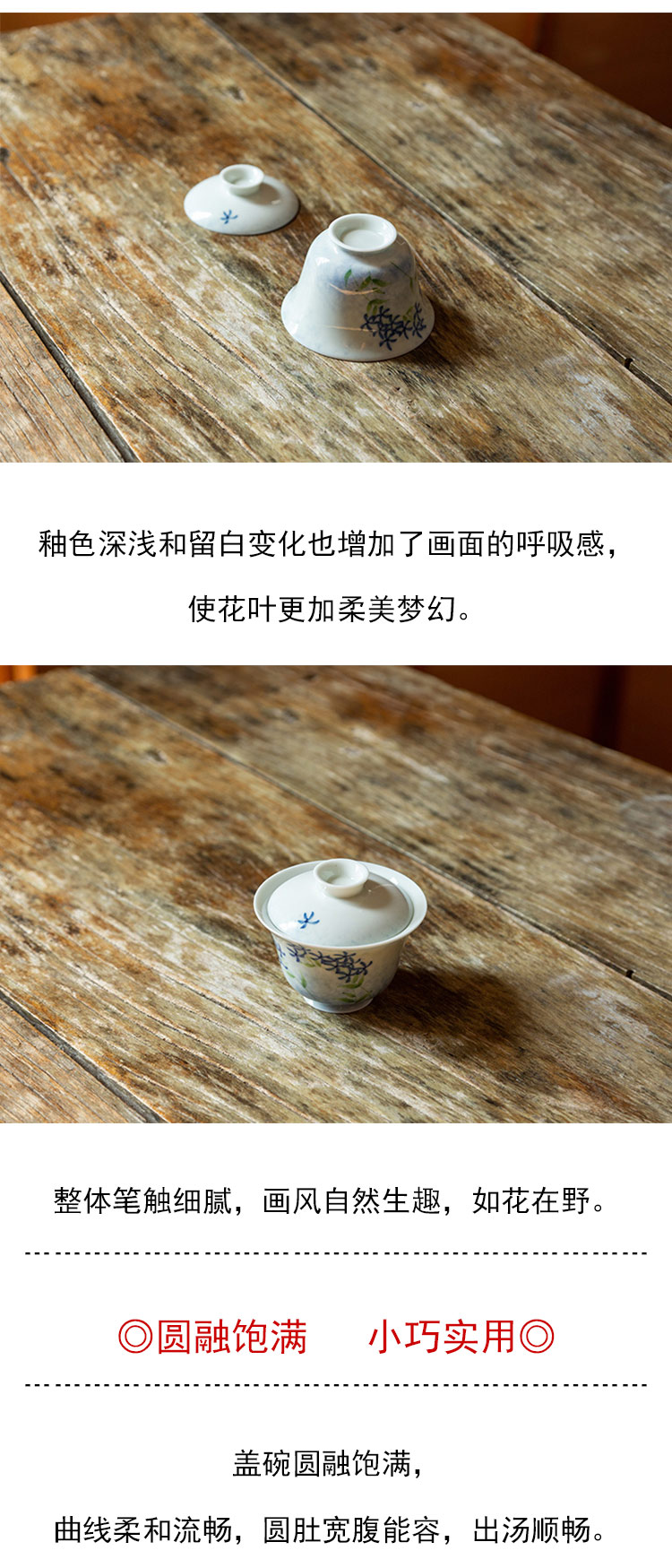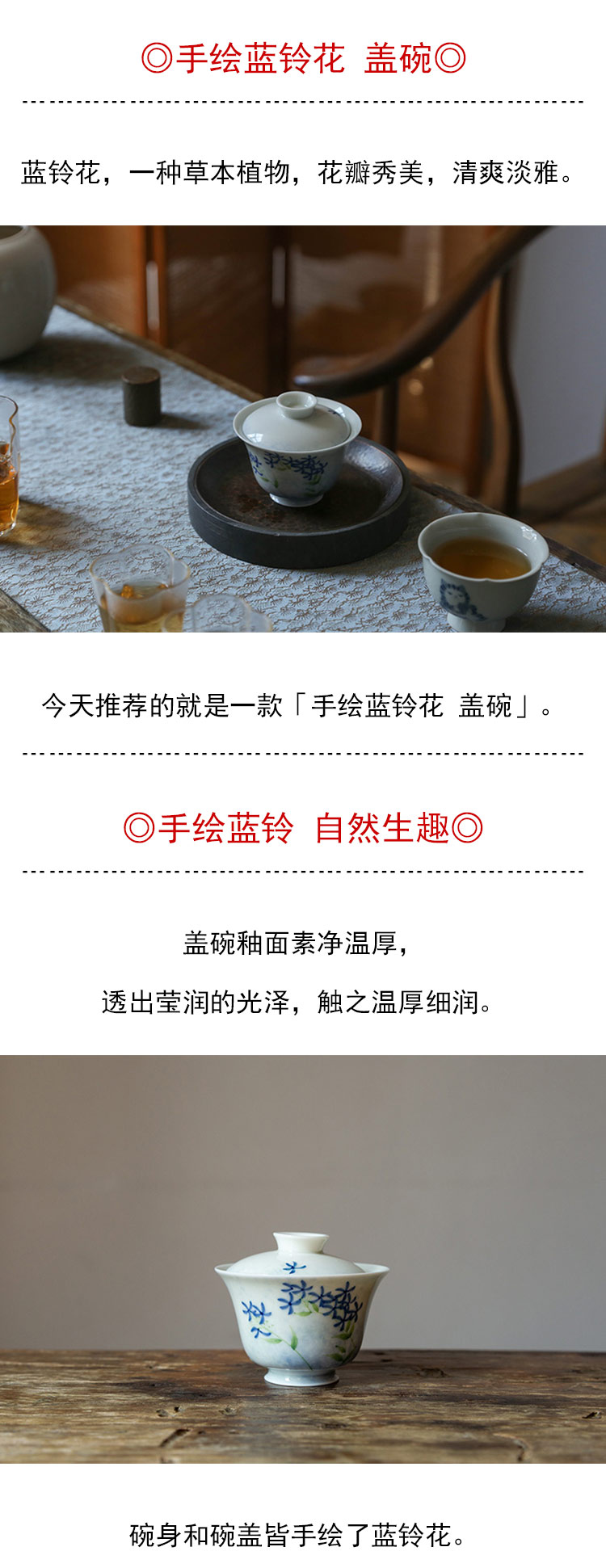 茶香记 手绘蓝铃花盖碗 自然生趣 圆融饱满 小巧实用 清新雅致