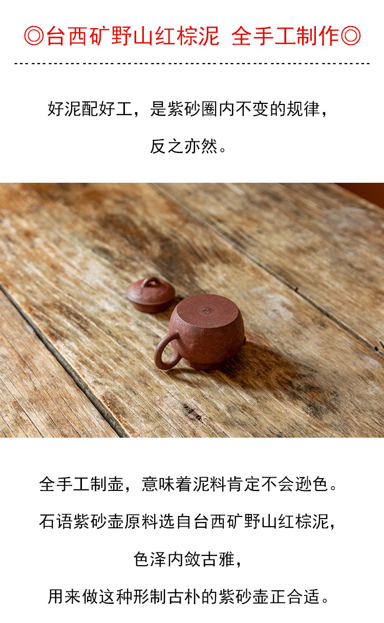 茶香记 润砂堂 台西矿野山红棕泥石语紫砂壶 经典耐用 宜品宜养