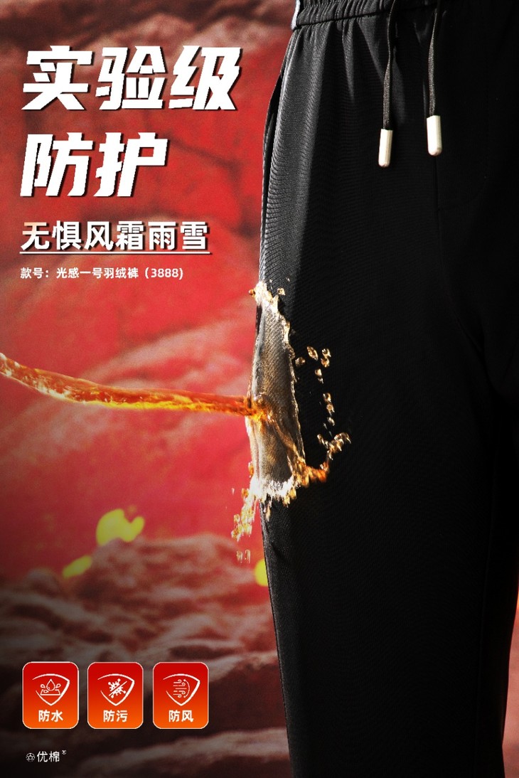 【火焰芯片速暖 三防锁温抗冻 一裤过冬不臃肿】众优棉 光感一号90羽绒裤/极地火神裤/ 火神雪地裤/暖甲工装裤