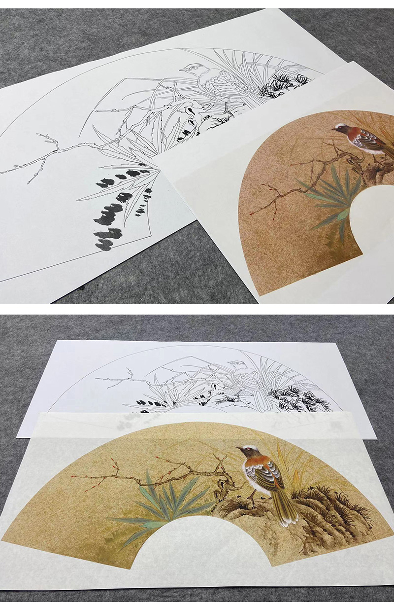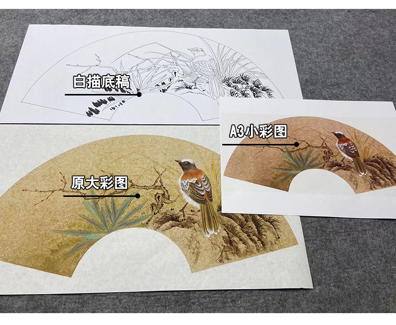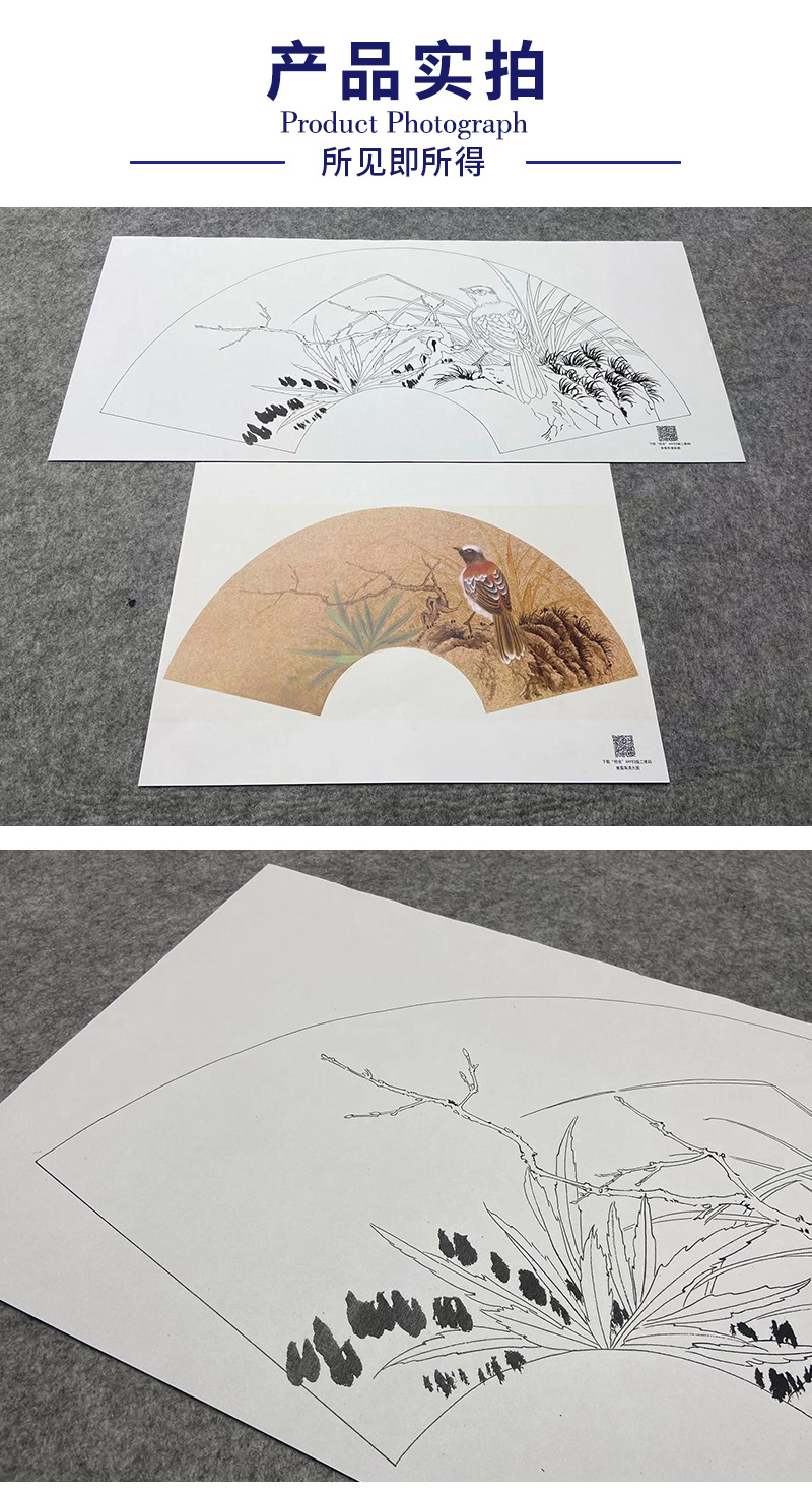 【大彩图】张建军工笔画白描底稿扇面小品临摹勾线花鸟线稿A350