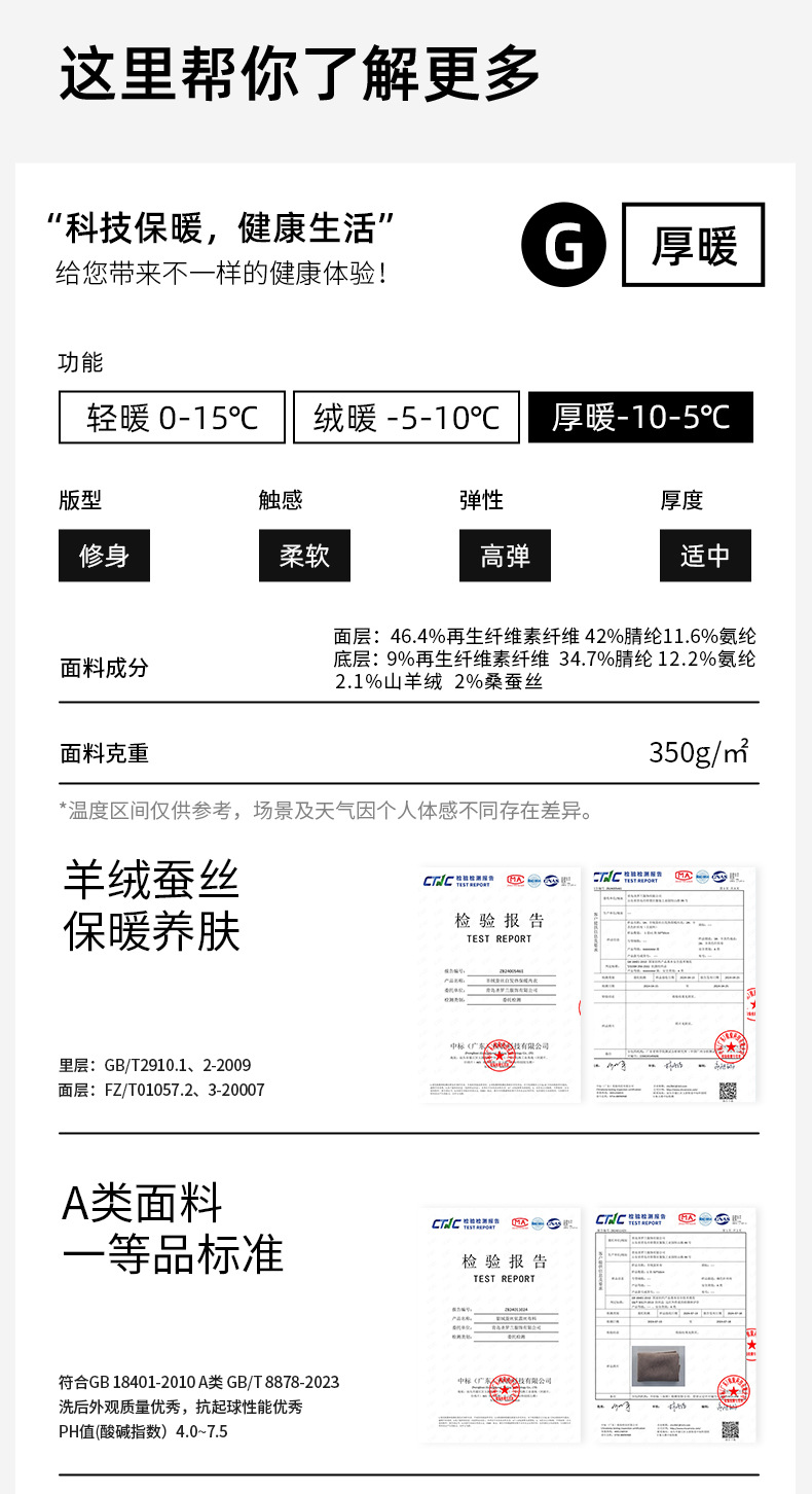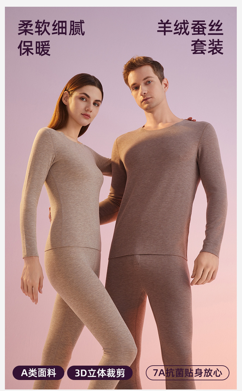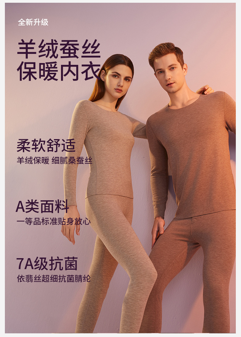 羊绒蚕丝德绒保暖内衣女士无痕7A抗菌男款保暖衣A类秋衣H244270658