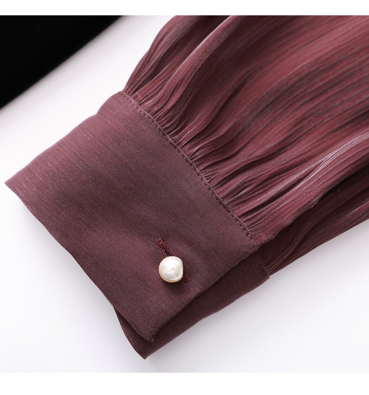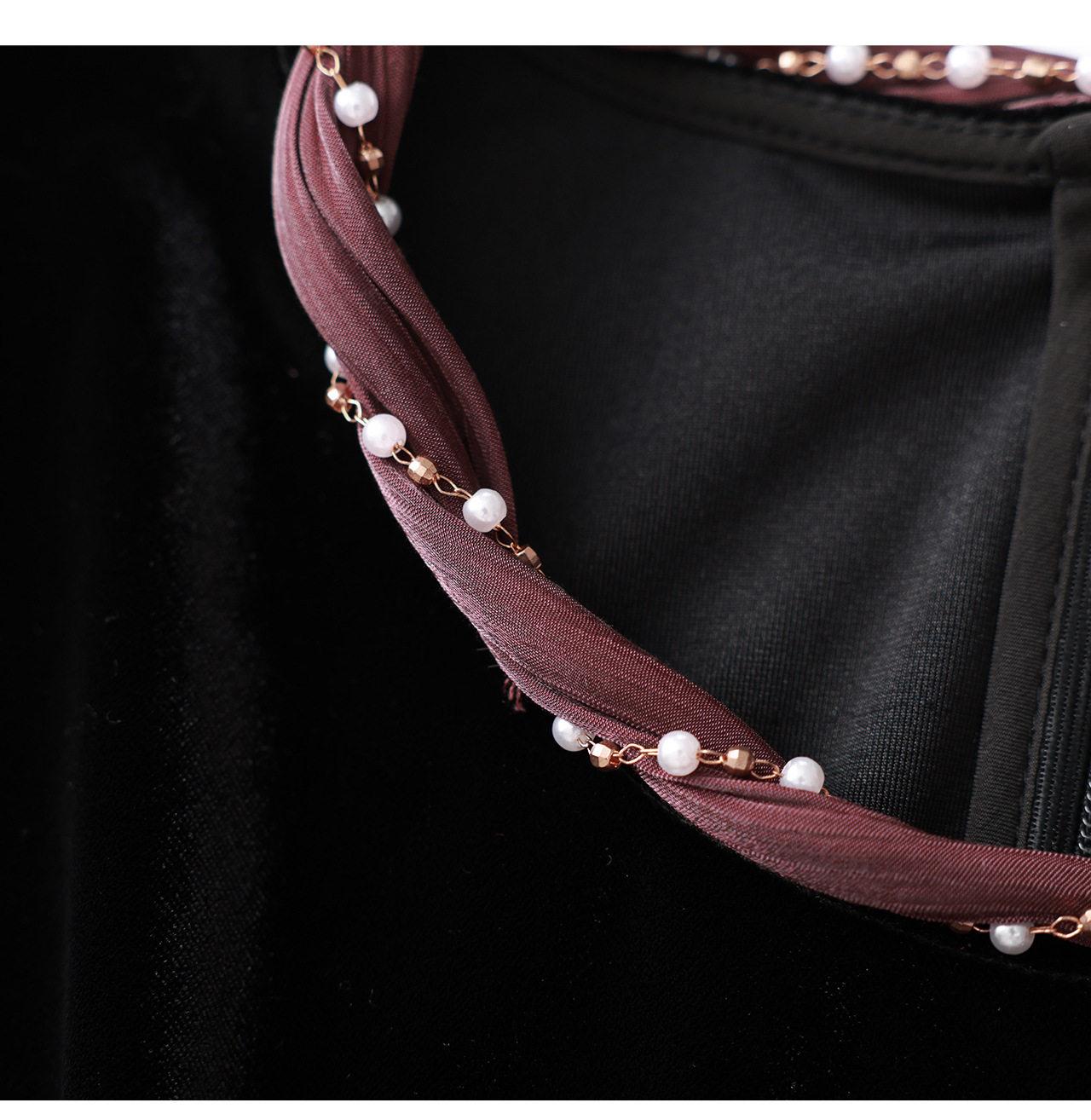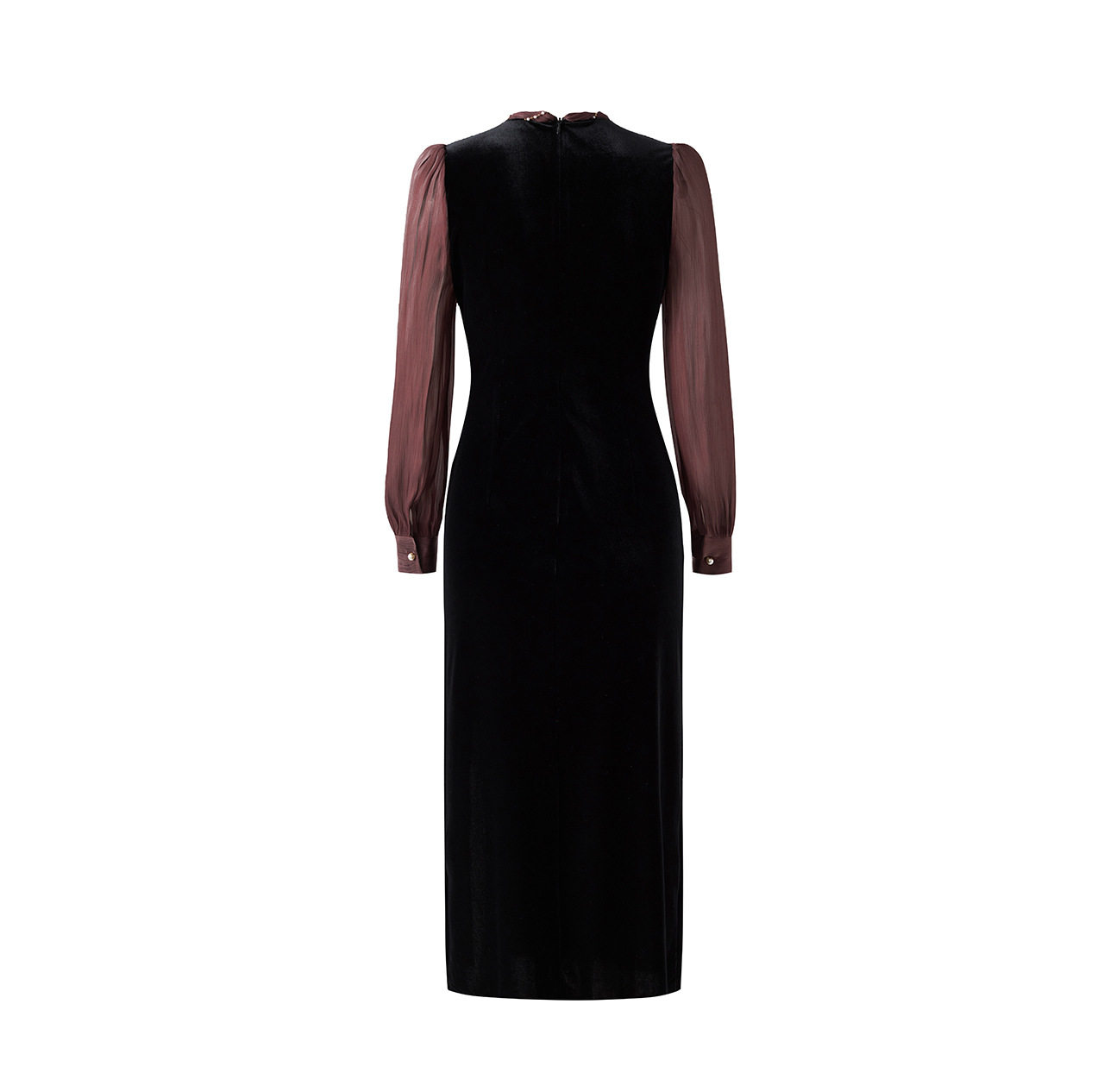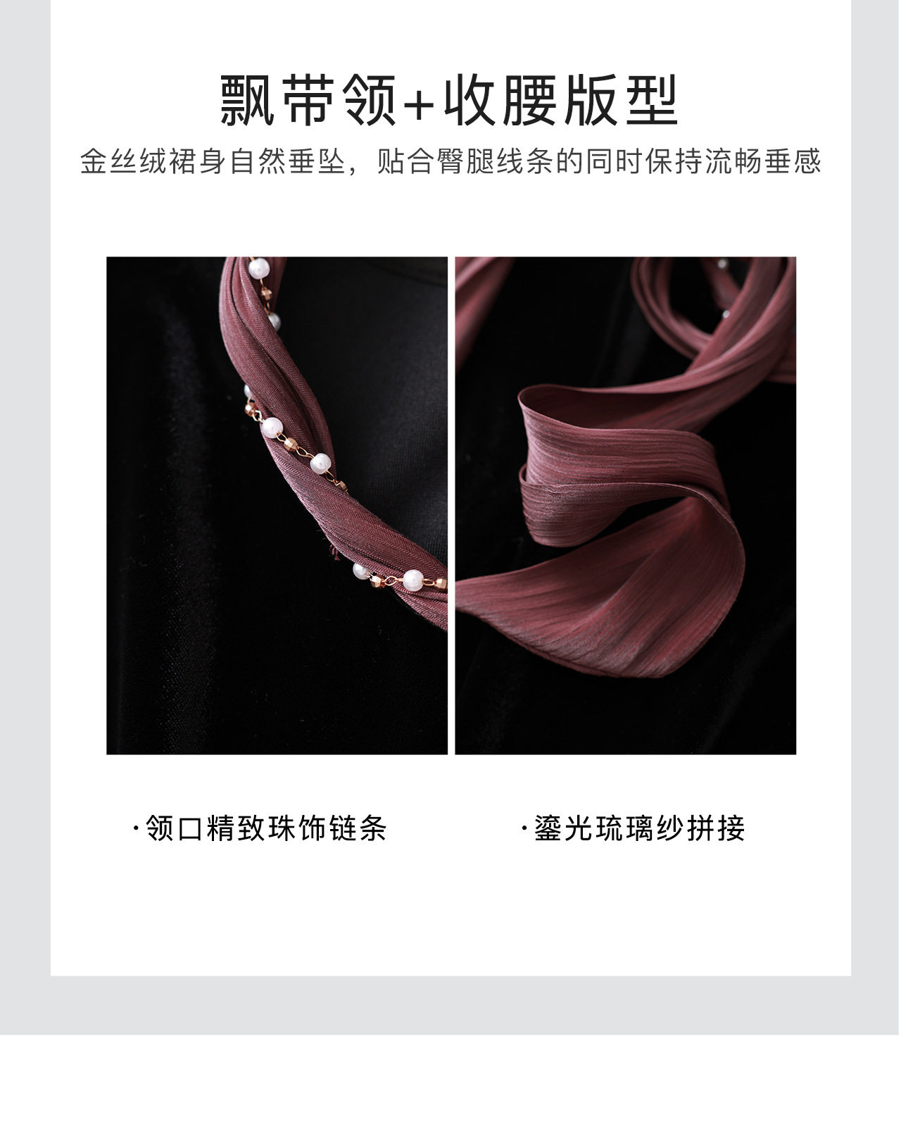 「高货wl」全新升级【铂金会员321/天猫429/差价108】(00425)洛诗琳2026春季法式蝴蝶结系带领丝绒拼琉璃纱开衩连衣裙