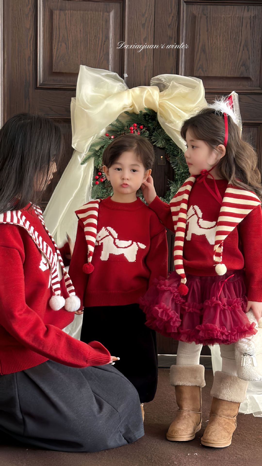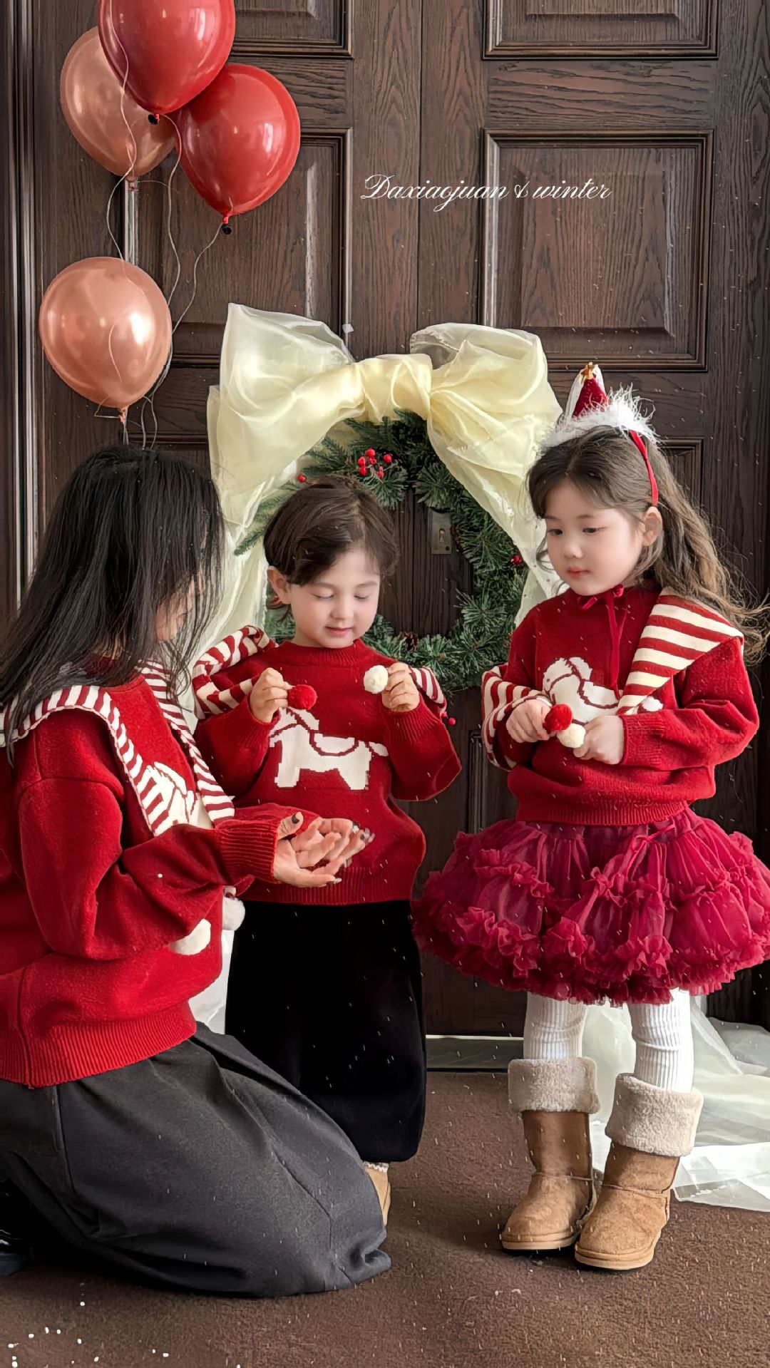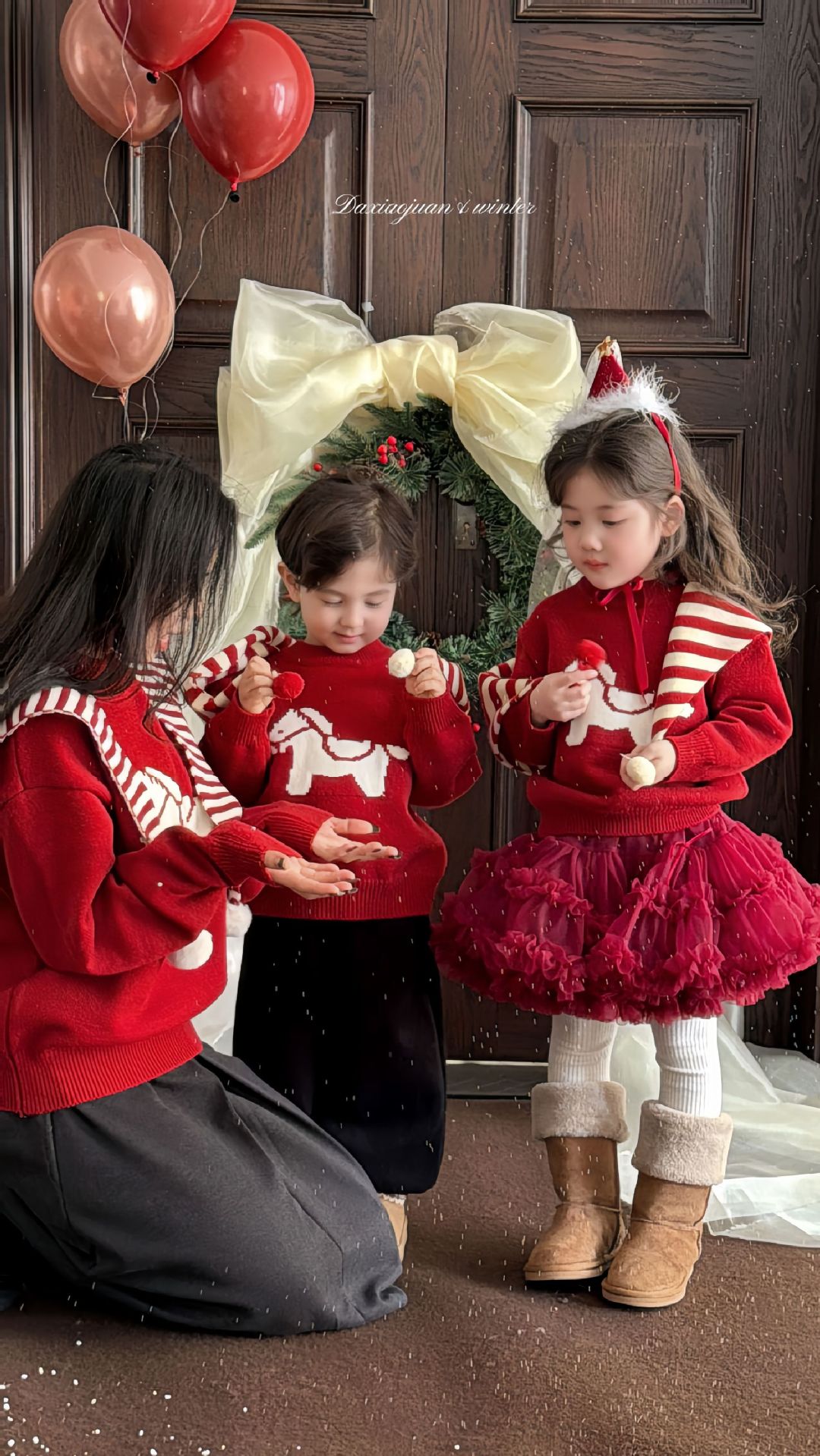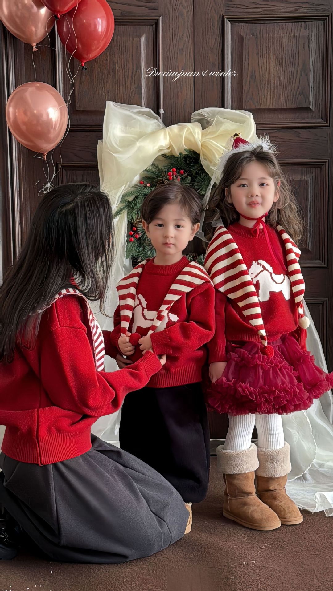 儿童毛衣两件套兄妹马上有钱冬季新款针织衫圣诞百搭新年姐弟上衣