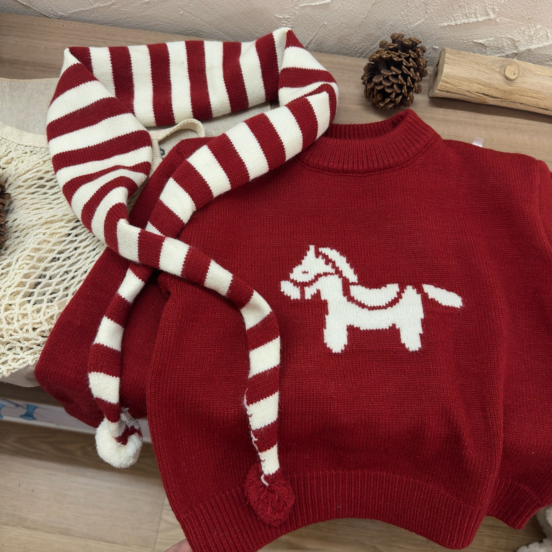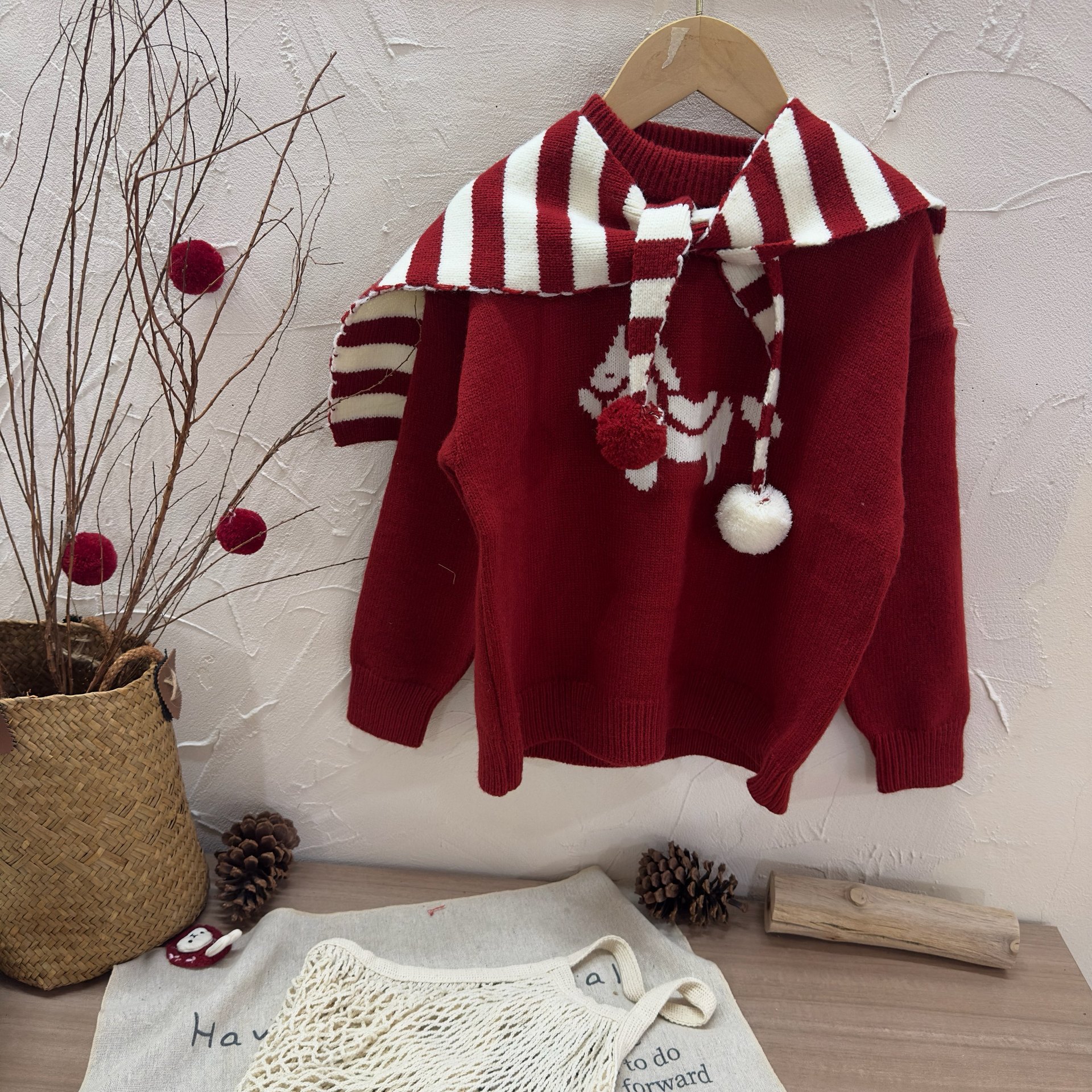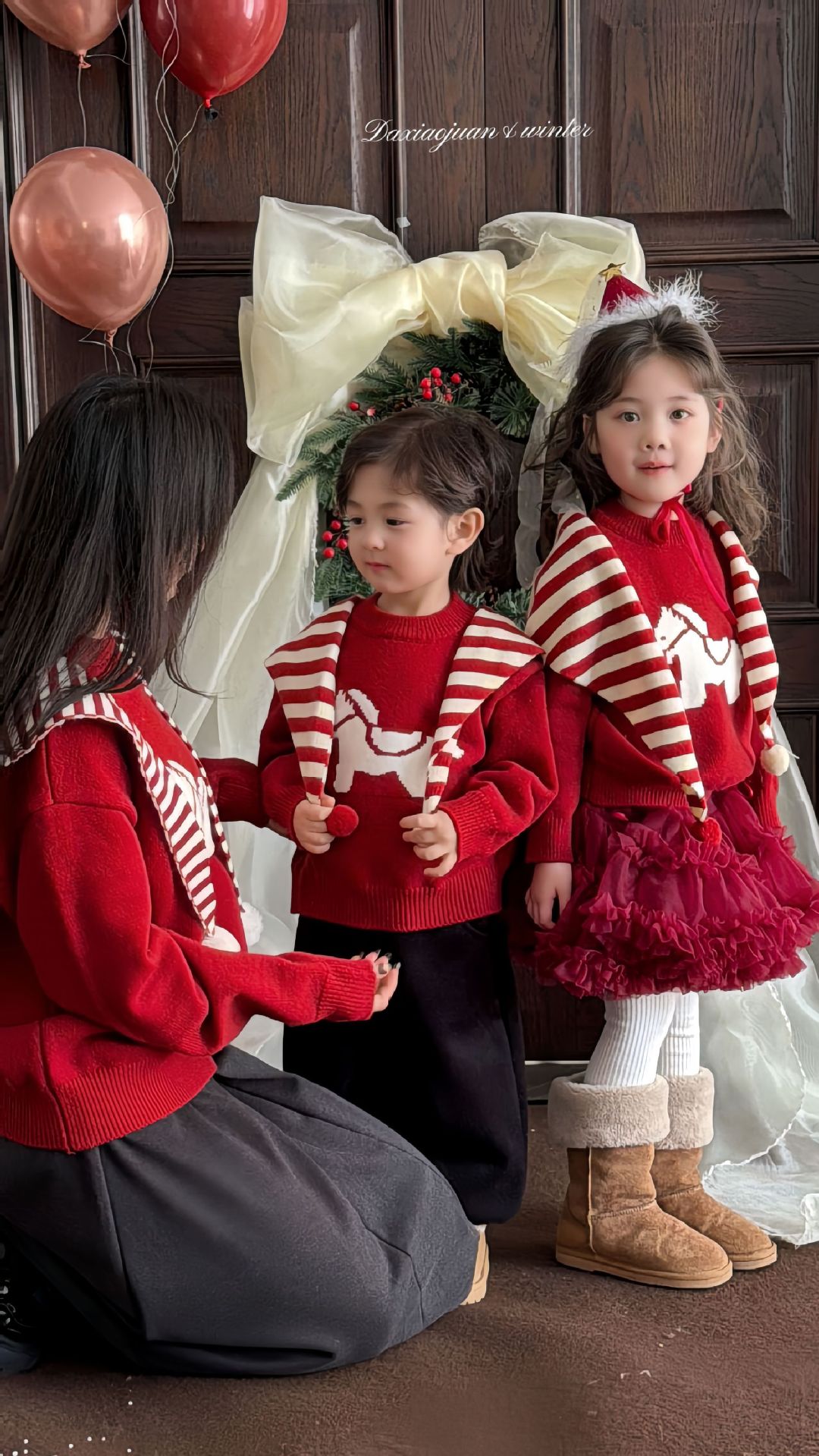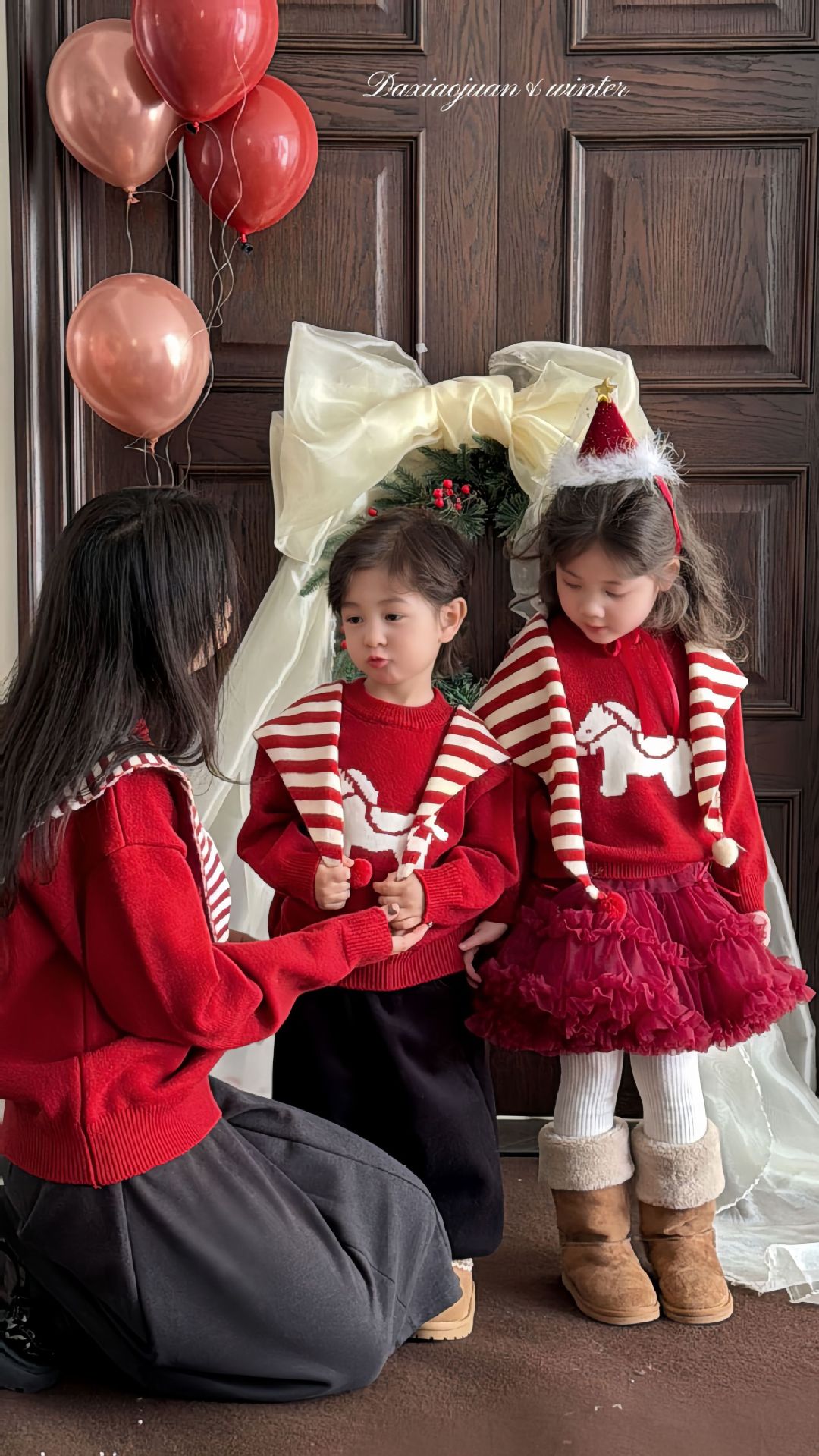 儿童毛衣两件套兄妹马上有钱冬季新款针织衫圣诞百搭新年姐弟上衣