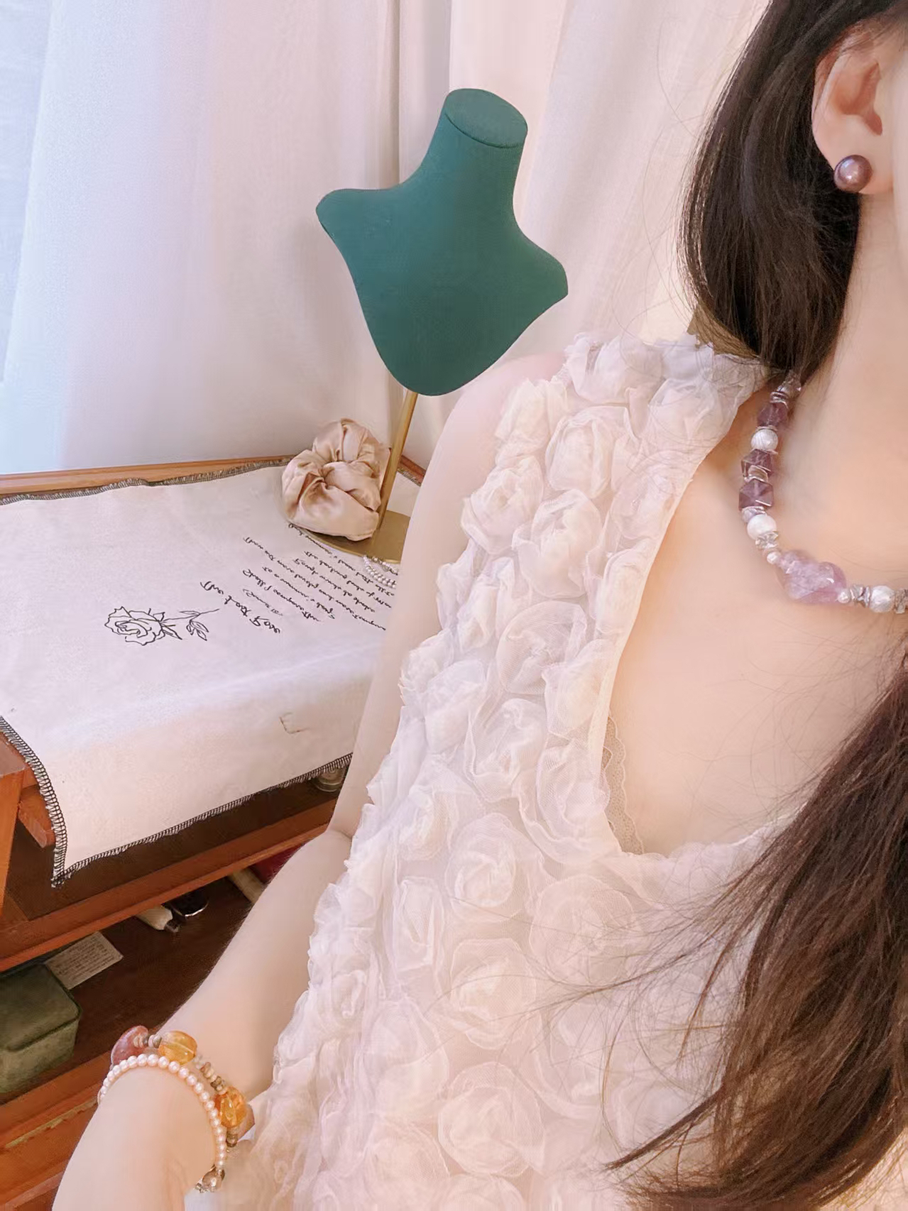 【à perles】浪漫风中领短袖丝绒T浪漫四色小豹纹、优雅紫,雾霾蓝,樱花粉【清仓,不退不换】
