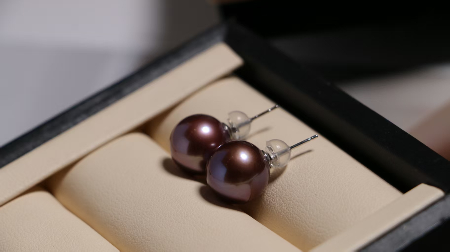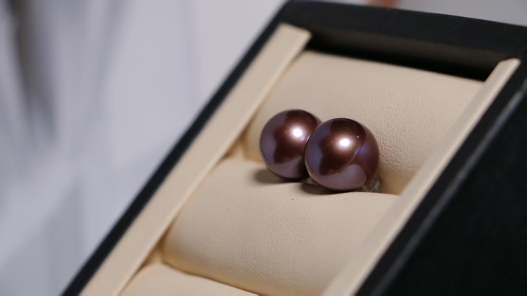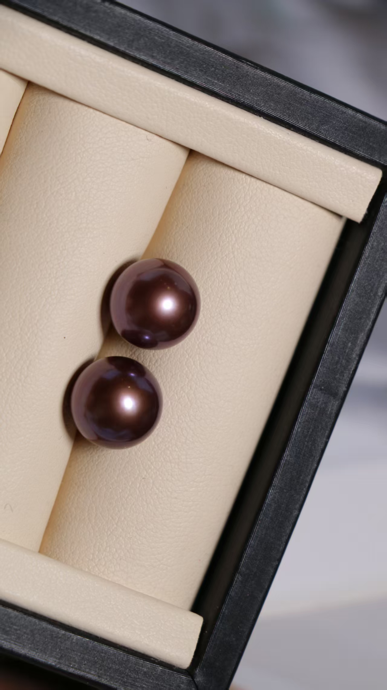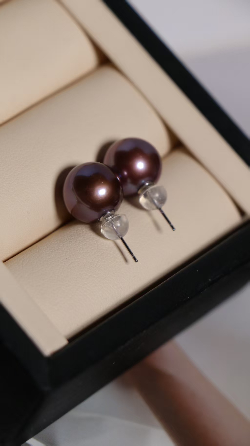 九紫离火,一对颜色很正的浓紫耳钉,高品质,11-12mm,正圆无瑕ji强光,925纯银针,上耳超级大气。