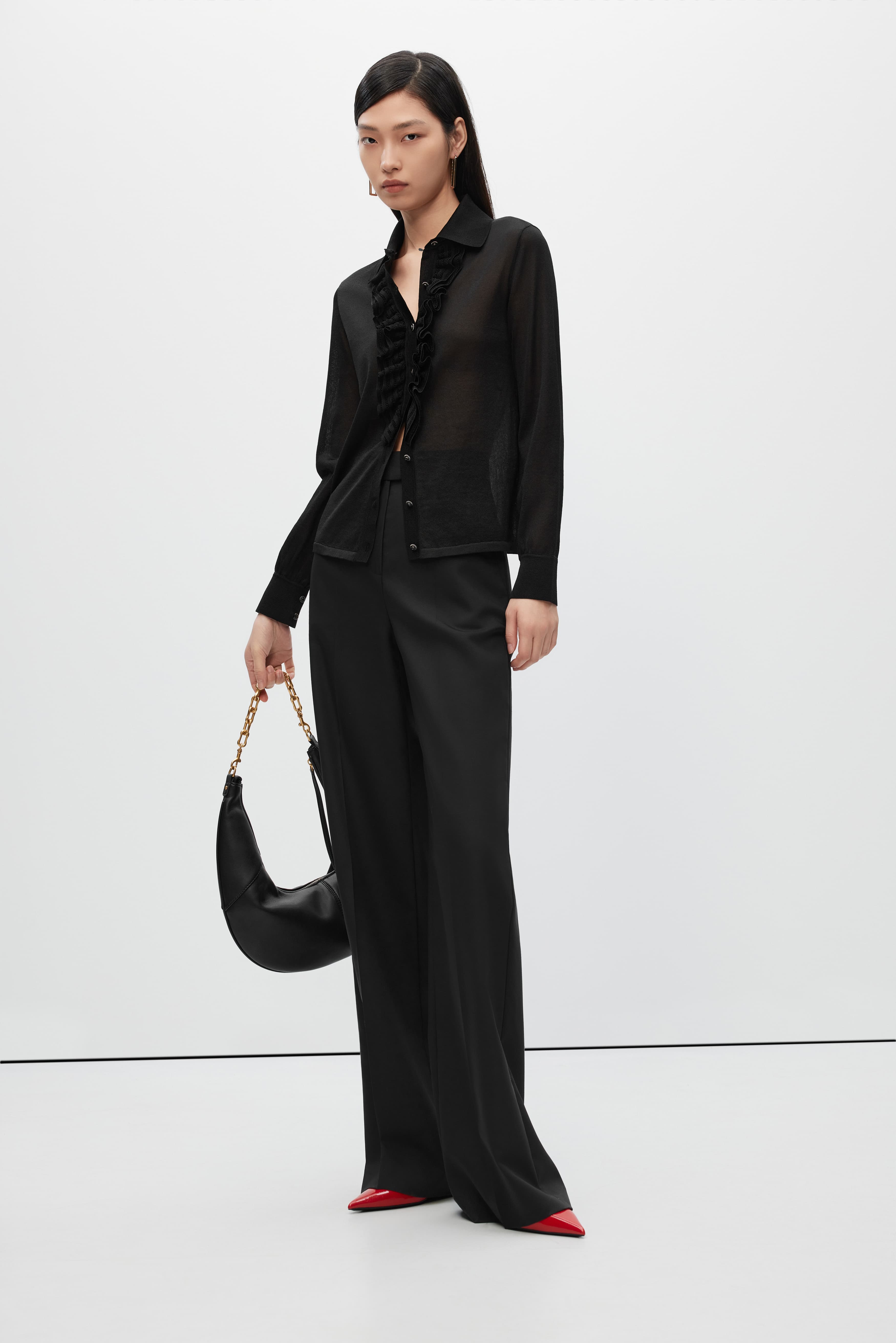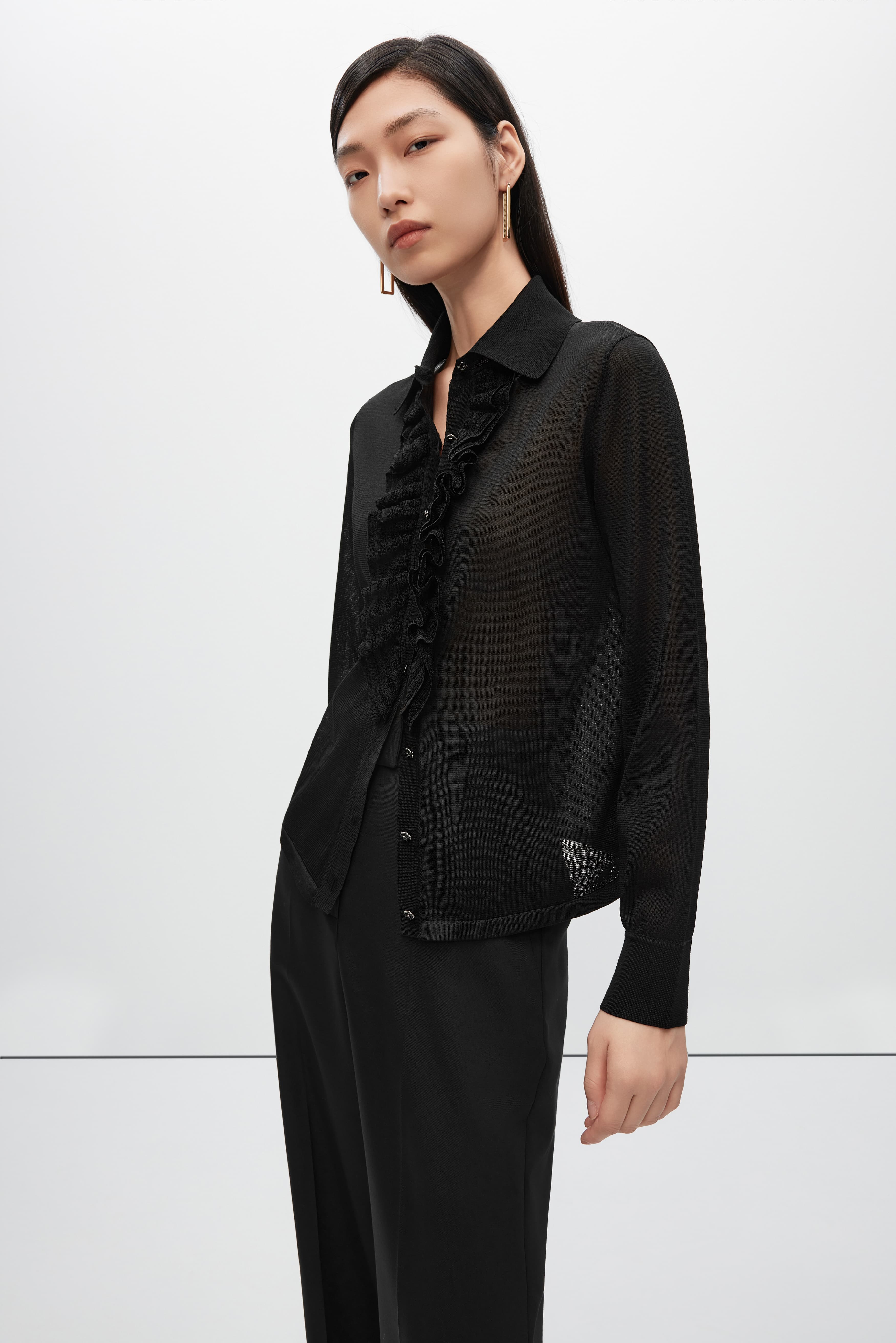 朗姿针织针织开衫夜幕黑色LSJK01KCD419B01