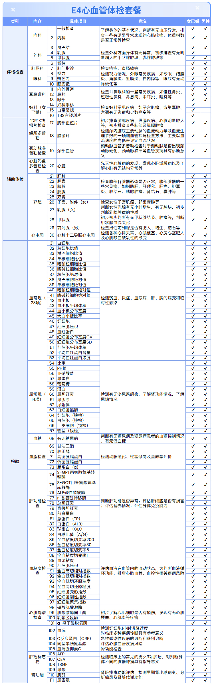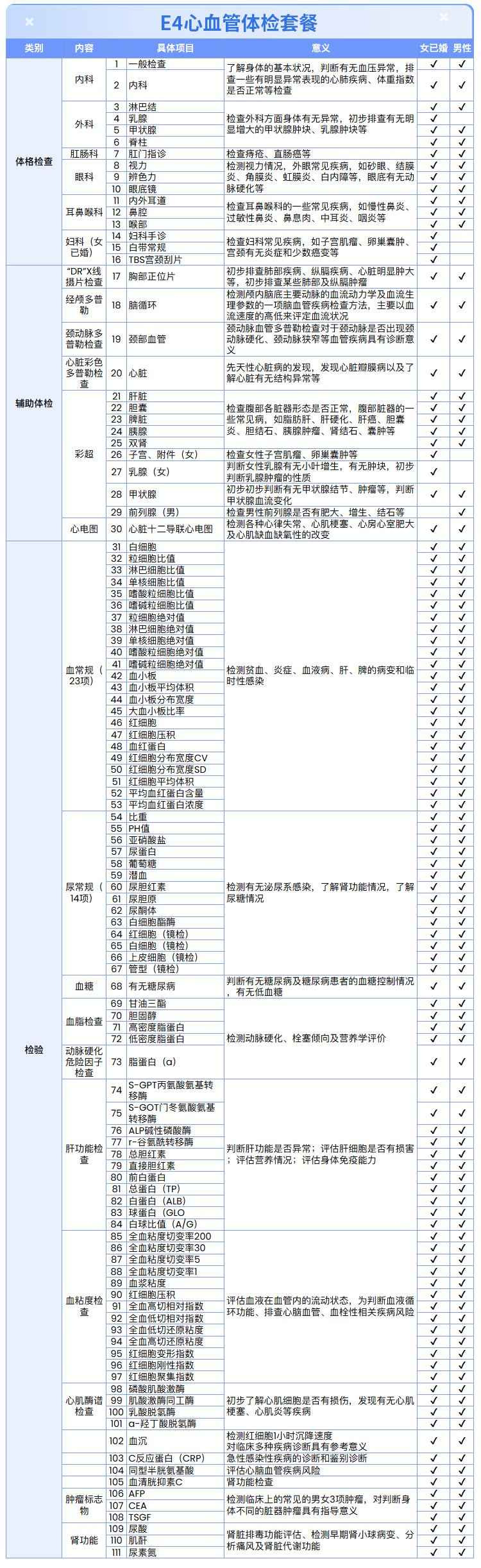 【男女通用|心脑血管专项深检】含颈动脉/心脏/经颅多普勒+心肌酶谱+七彩超+肿瘤三项 E4