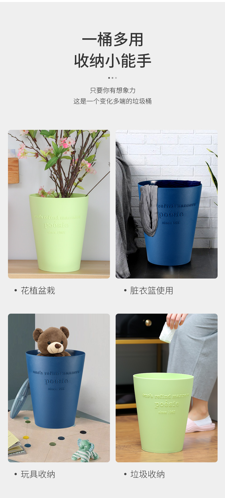 时尚锥形垃圾桶 10L 灰色