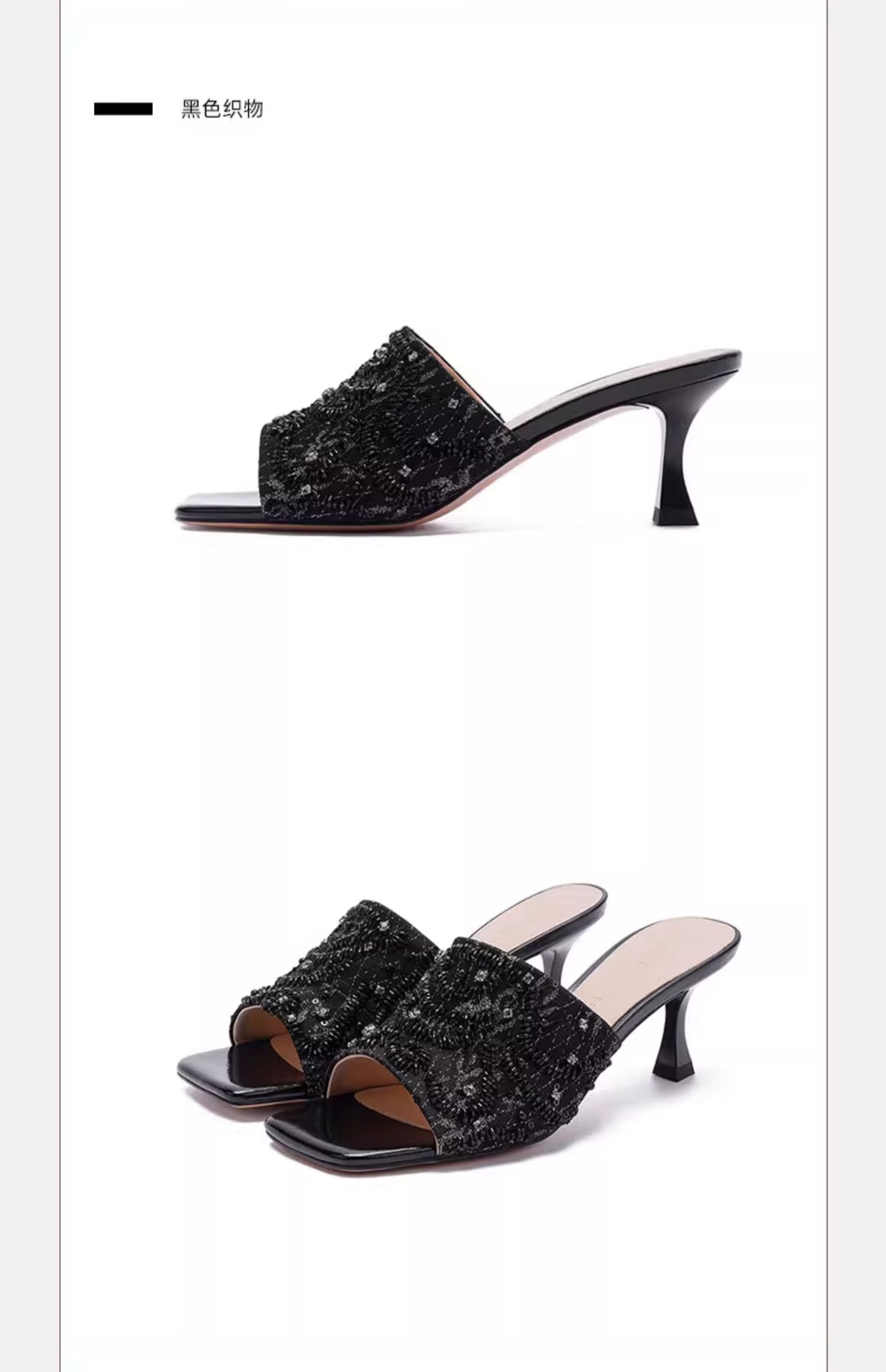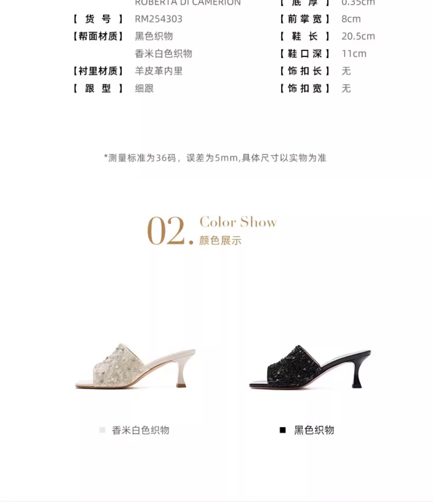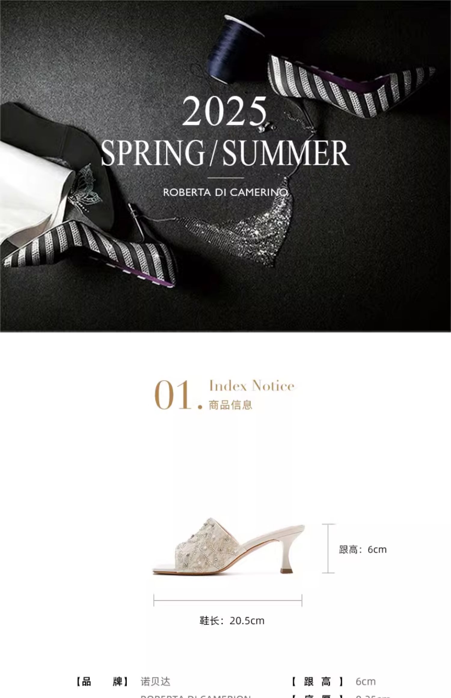 Roberta诺贝达 2025春夏季新款细跟女士时尚舒适方头凉拖鞋一字拖RM254303