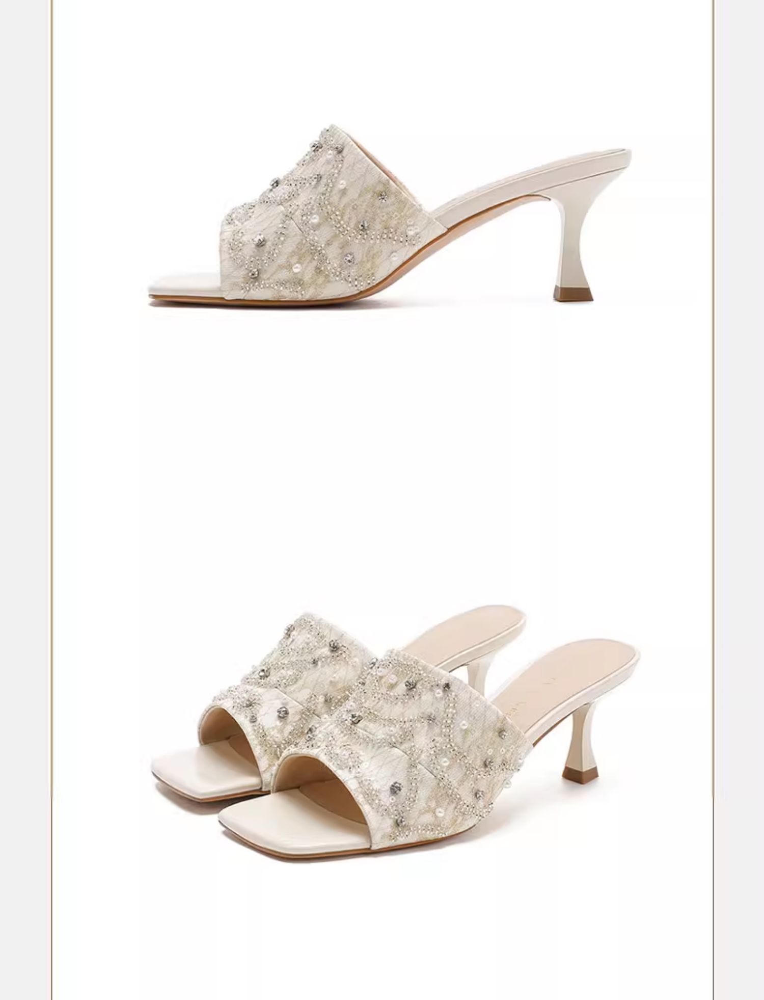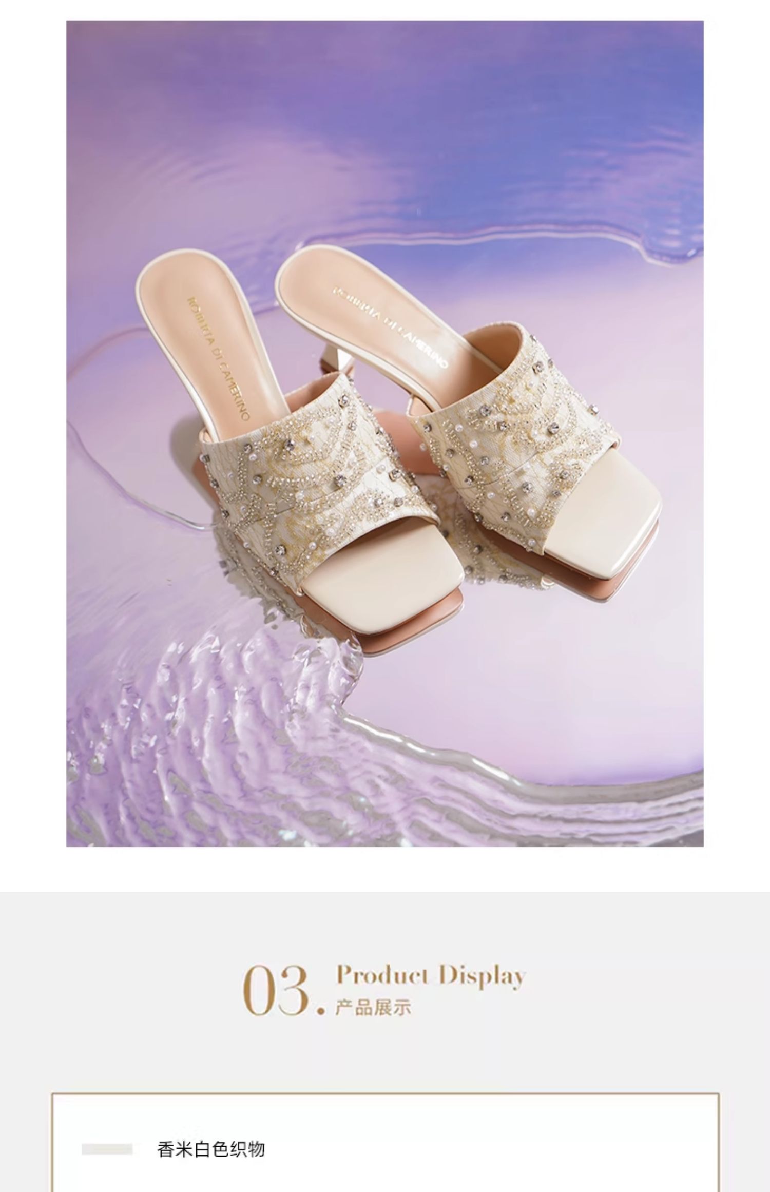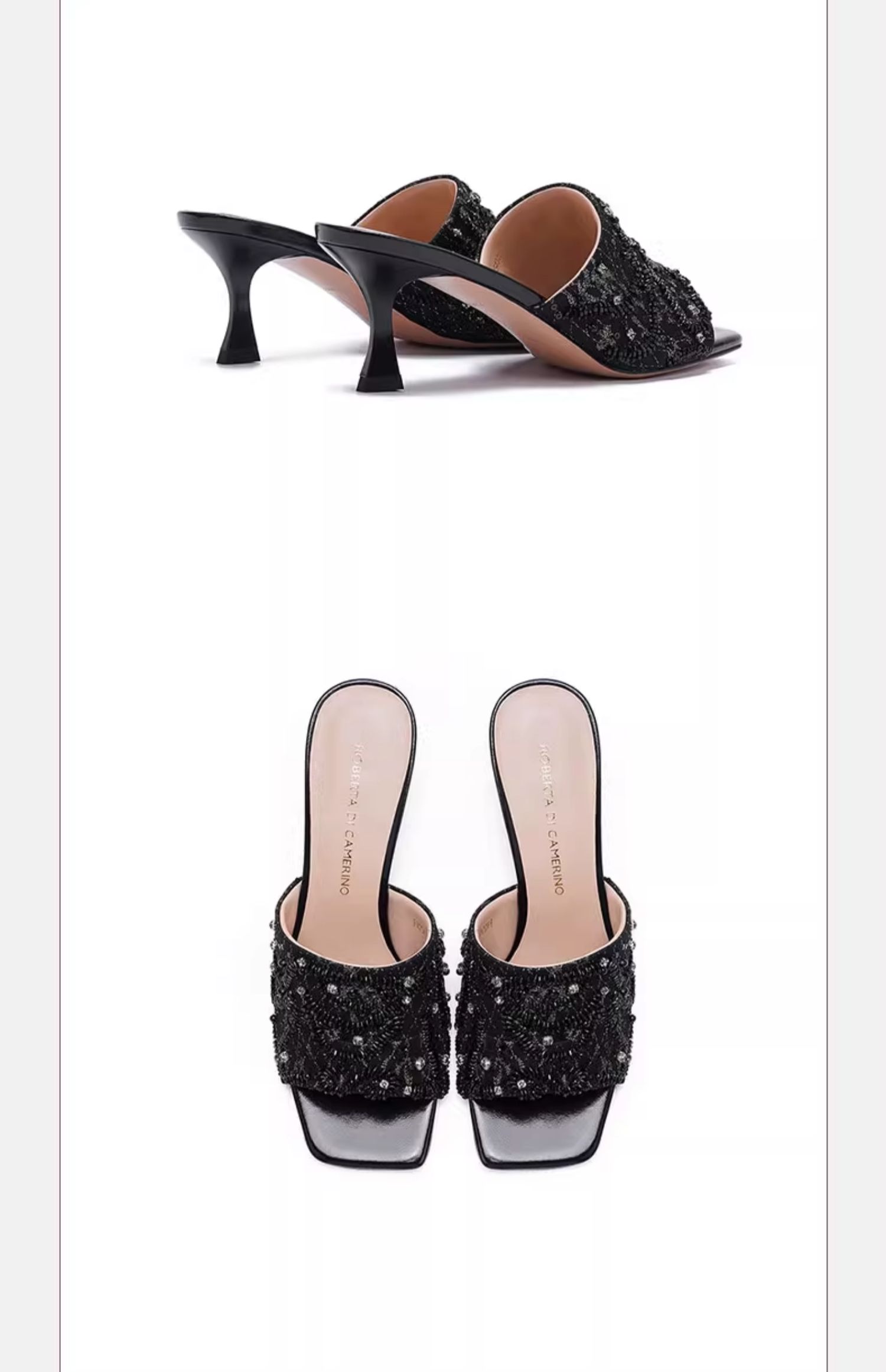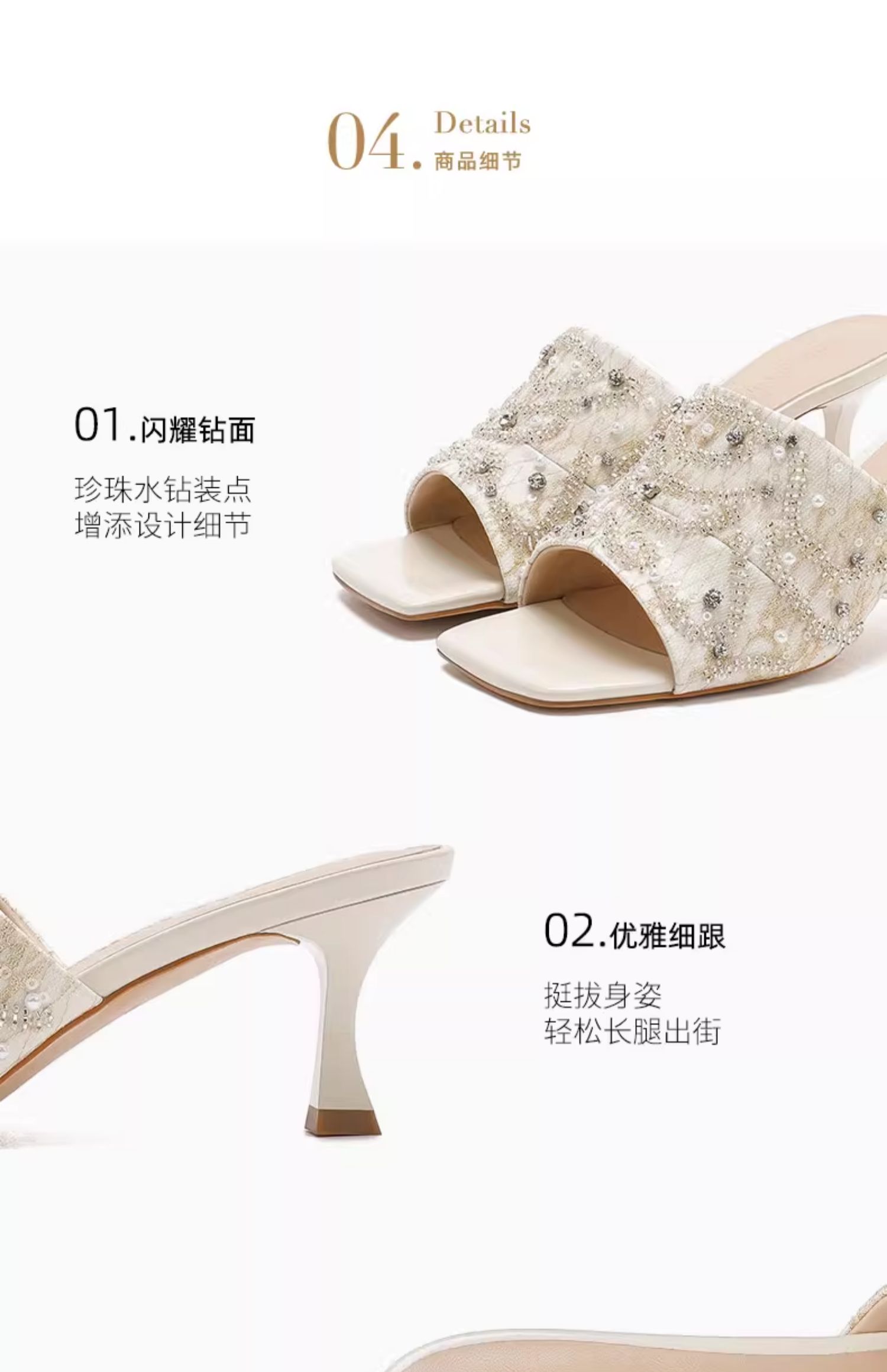 Roberta诺贝达 2025春夏季新款细跟女士时尚舒适方头凉拖鞋一字拖RM254303