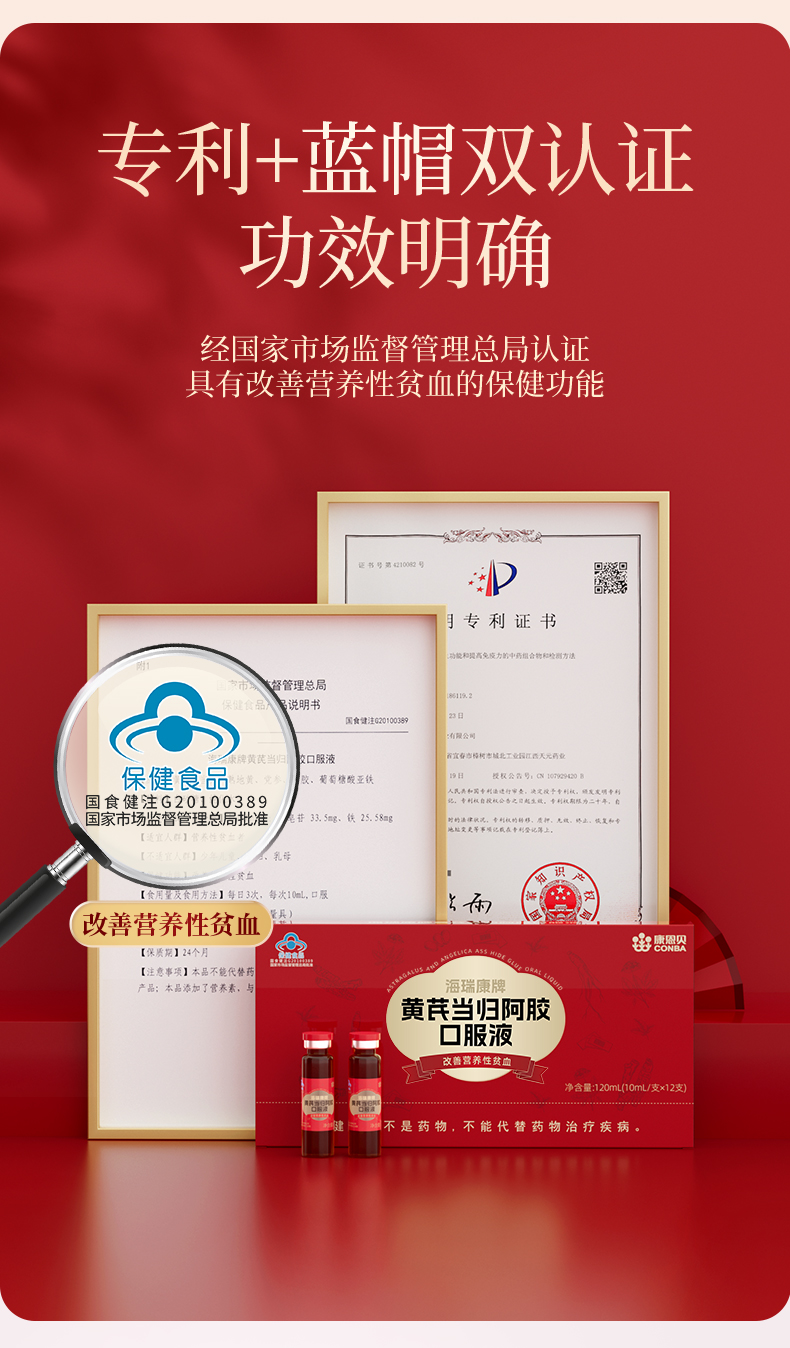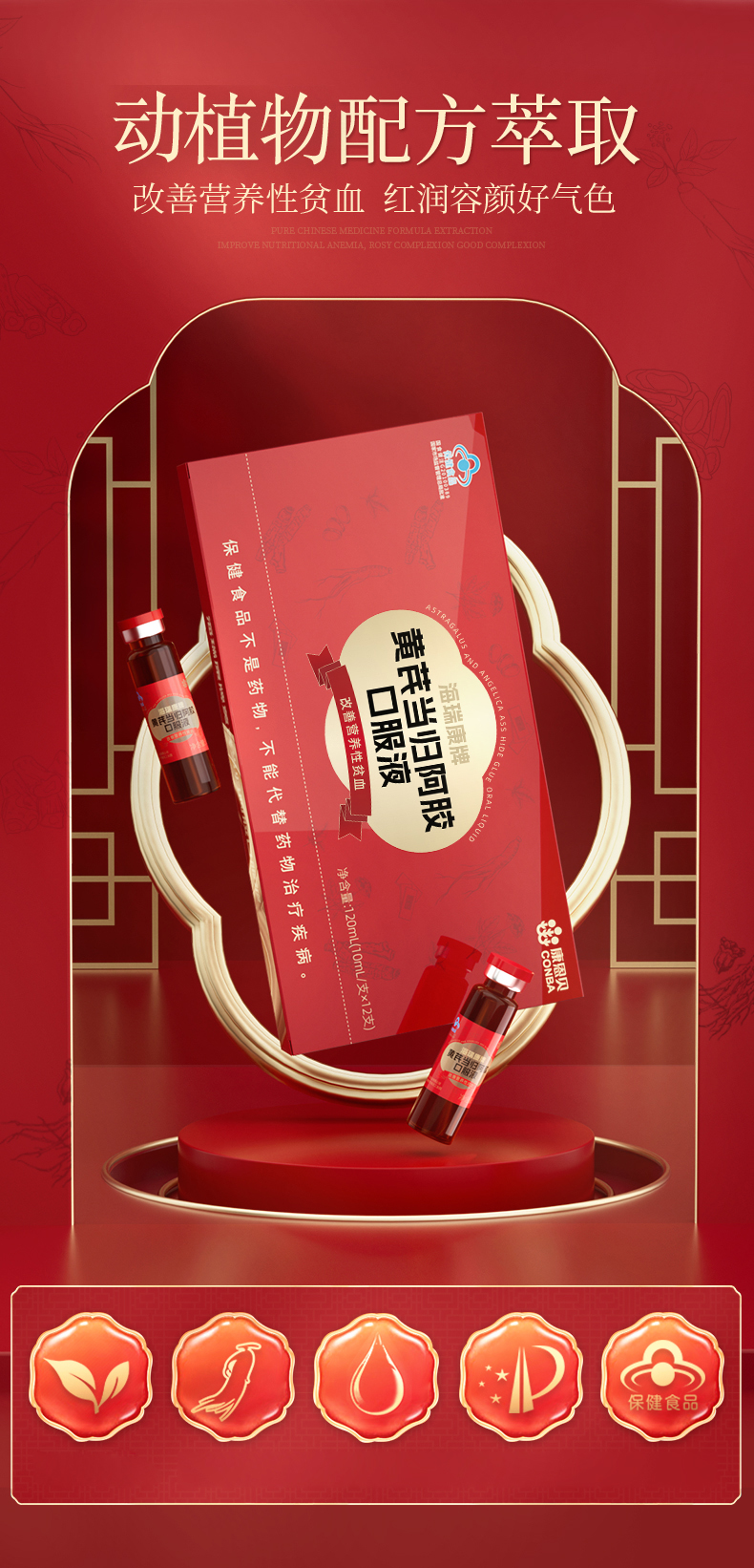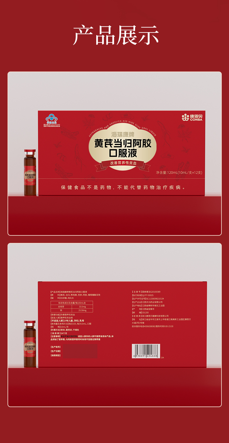 【粉丝特惠】喝出红润好气色 康恩贝黄芪当归阿胶口服液 改善营养性贫血 蓝帽认证 滋补保健品 12瓶/盒