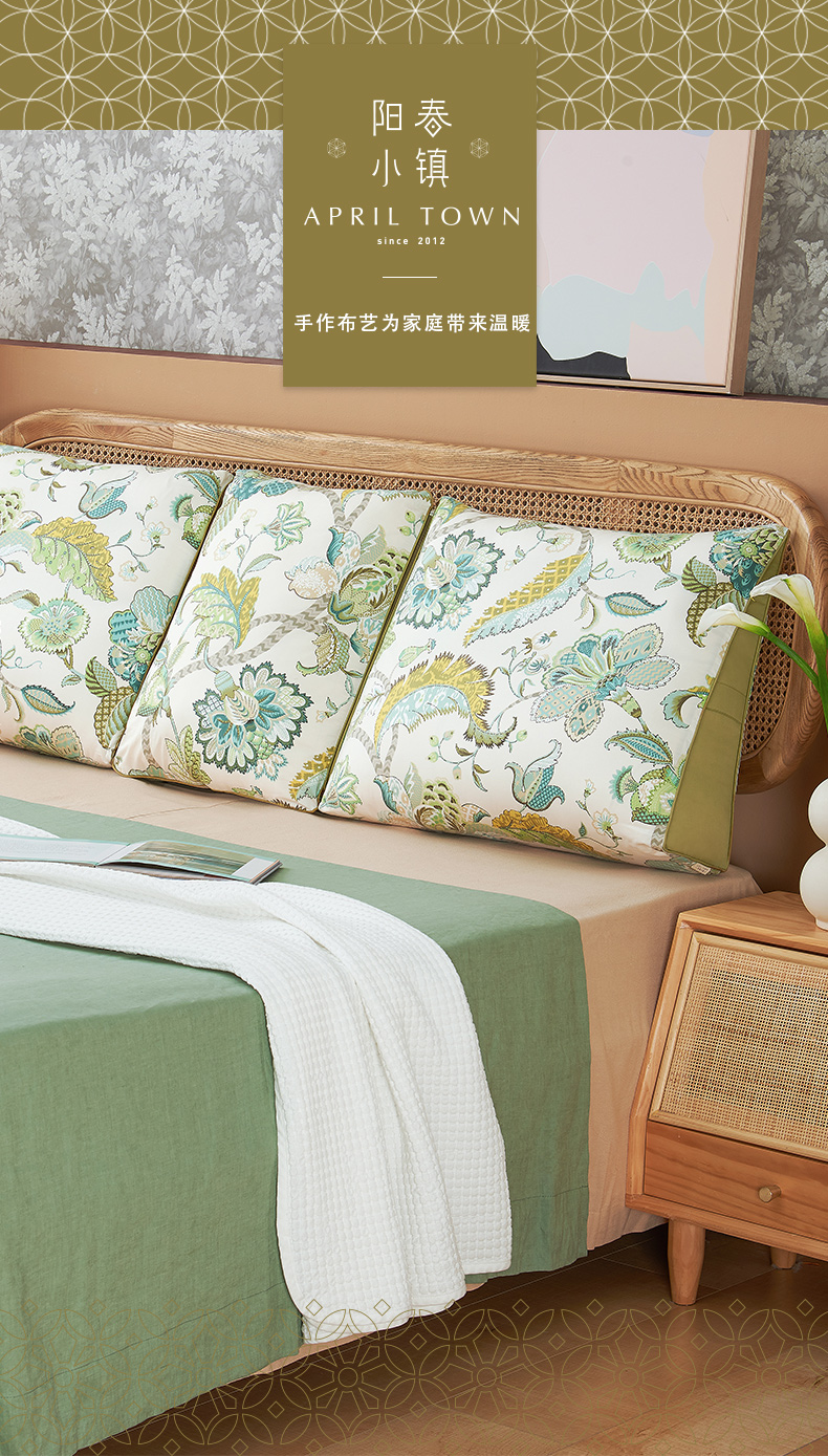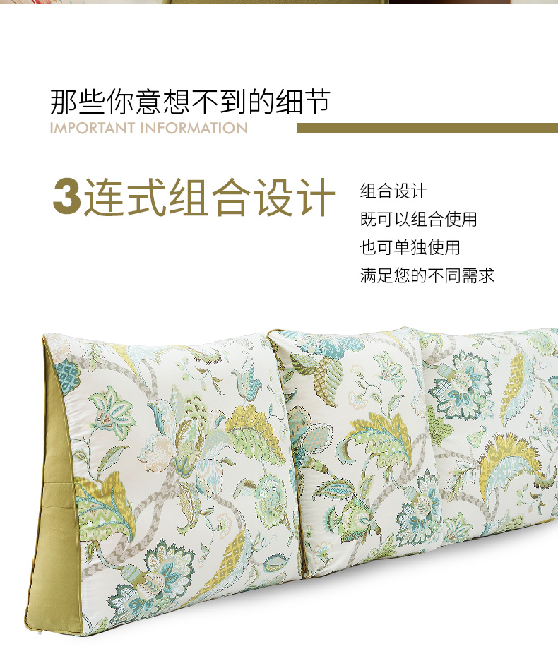 蔓花系列三联式床头软包靠枕沙发大靠背