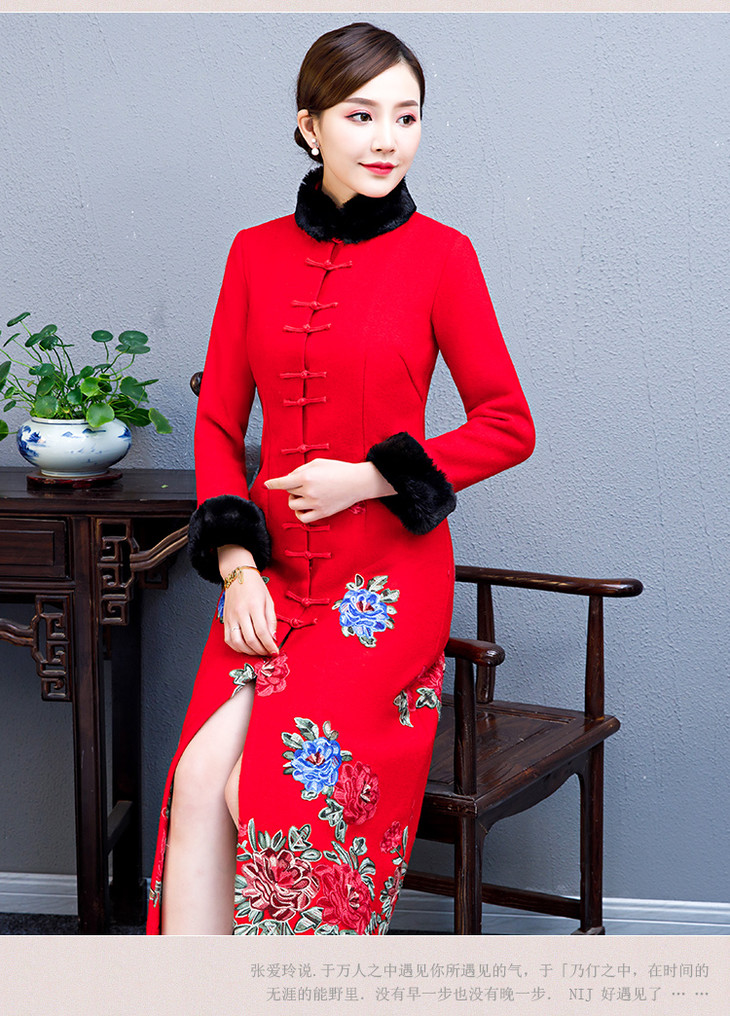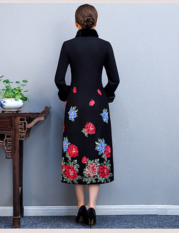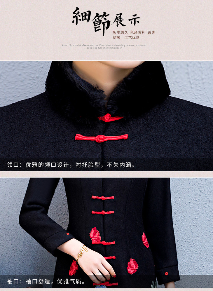 BJ-180235中国风羊毛呢加绒刺绣旗袍外套
