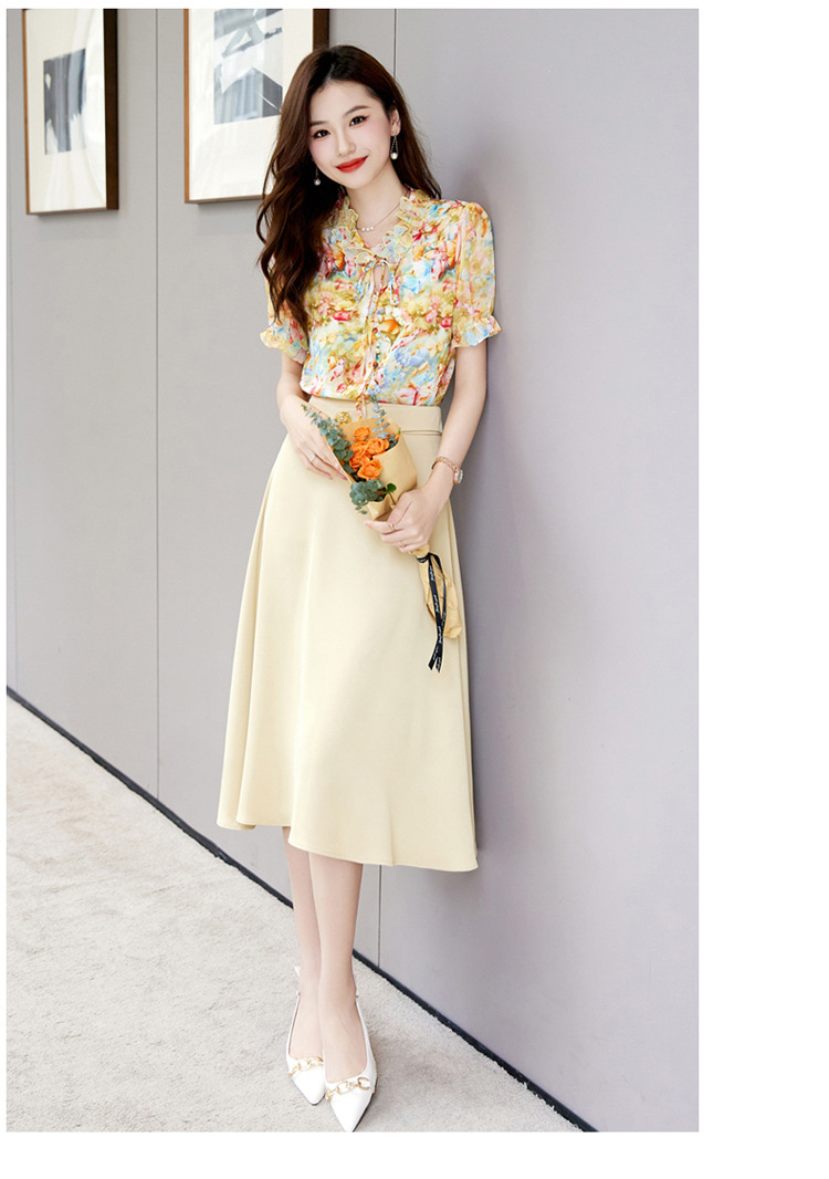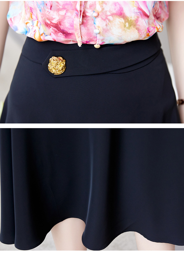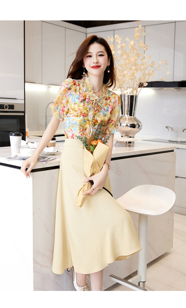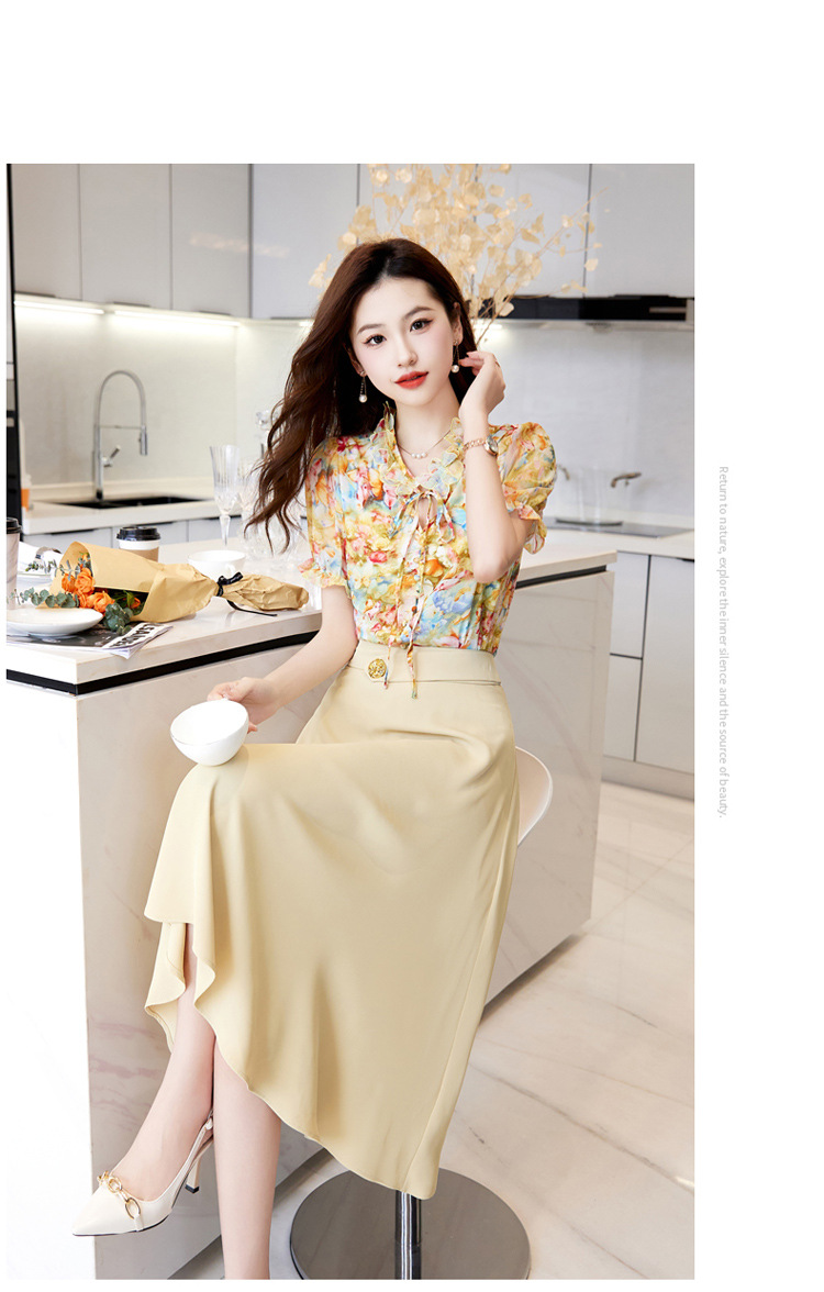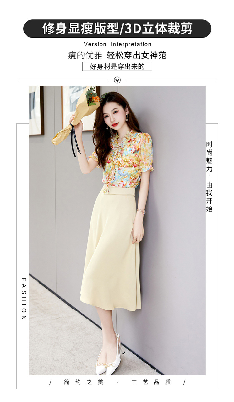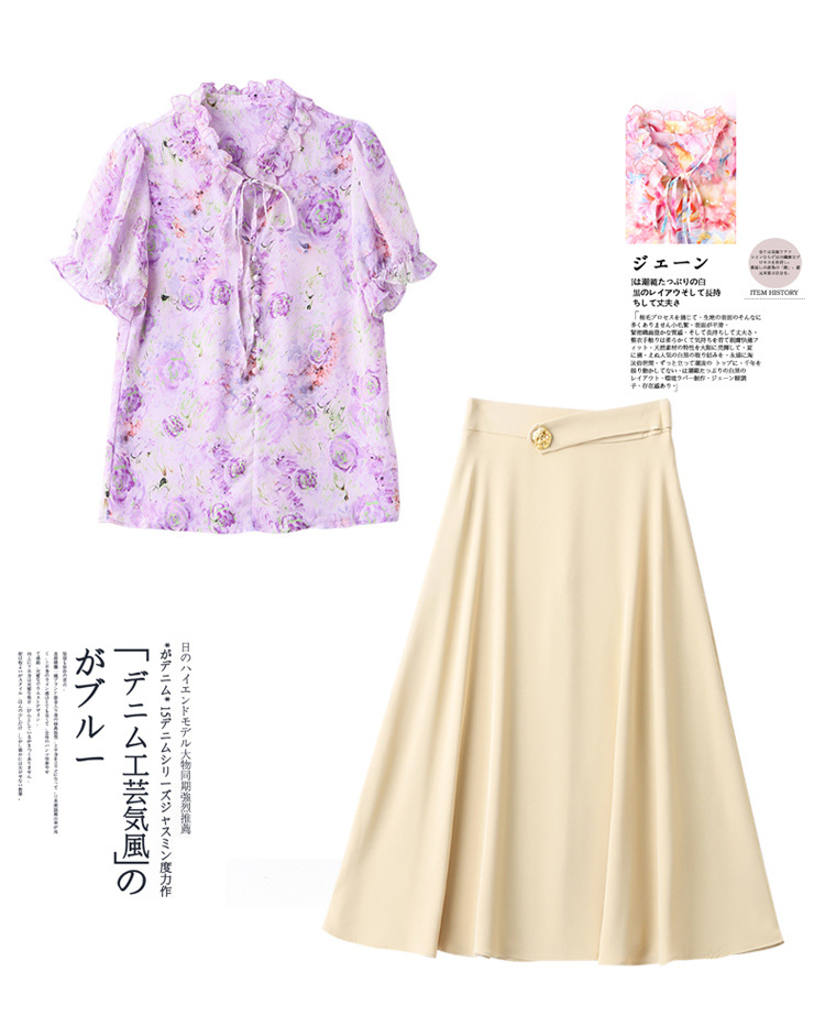 新中式花边领印花立体衬衣搭配高腰显瘦A字半身裙套装HR-WHA628-69