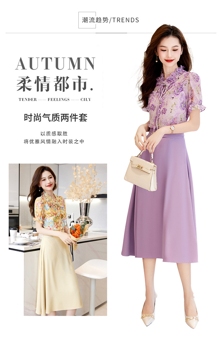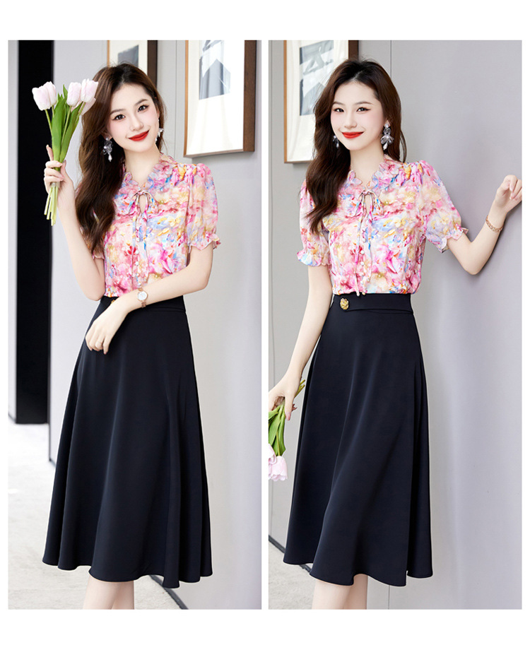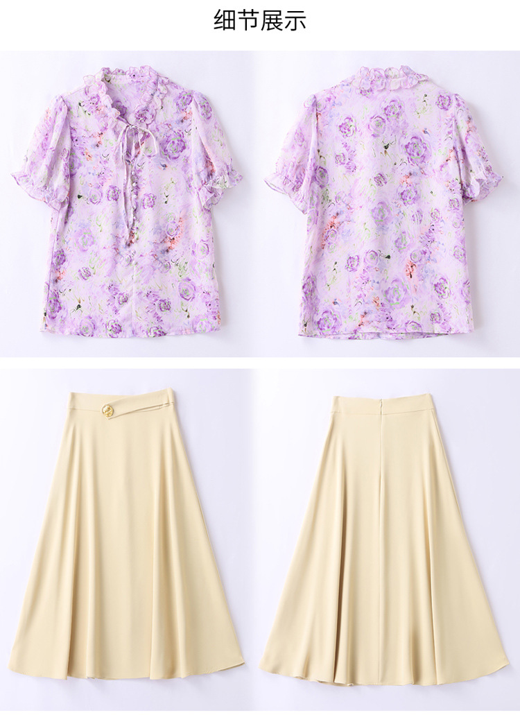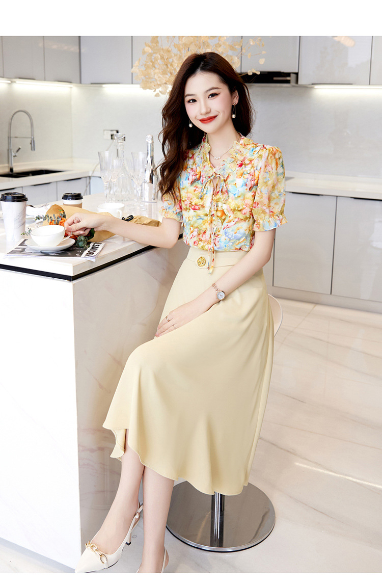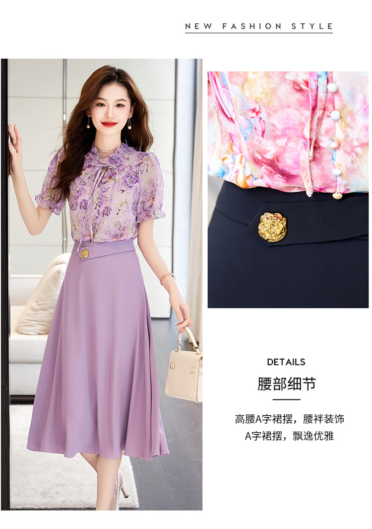 新中式花边领印花立体衬衣搭配高腰显瘦A字半身裙套装HR-WHA628-69