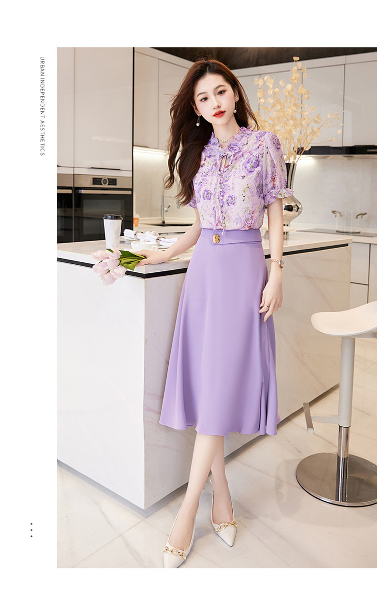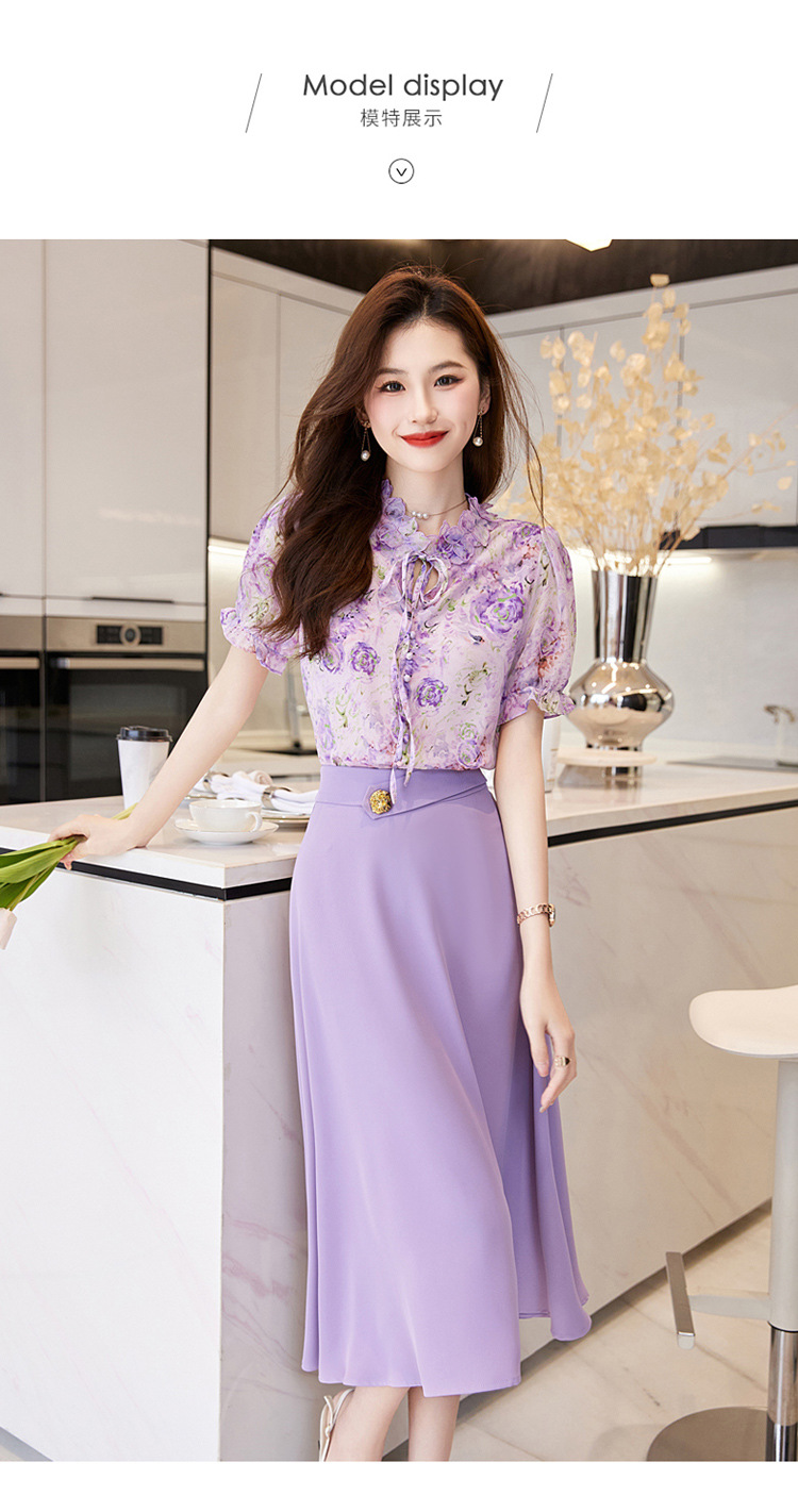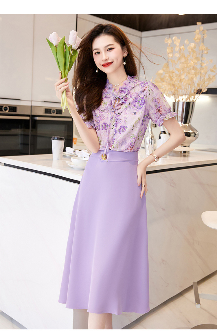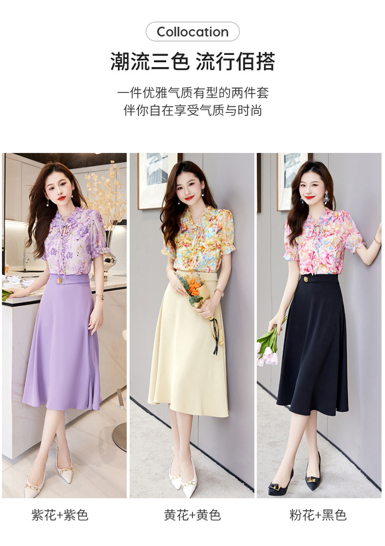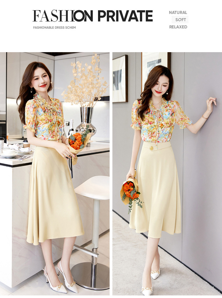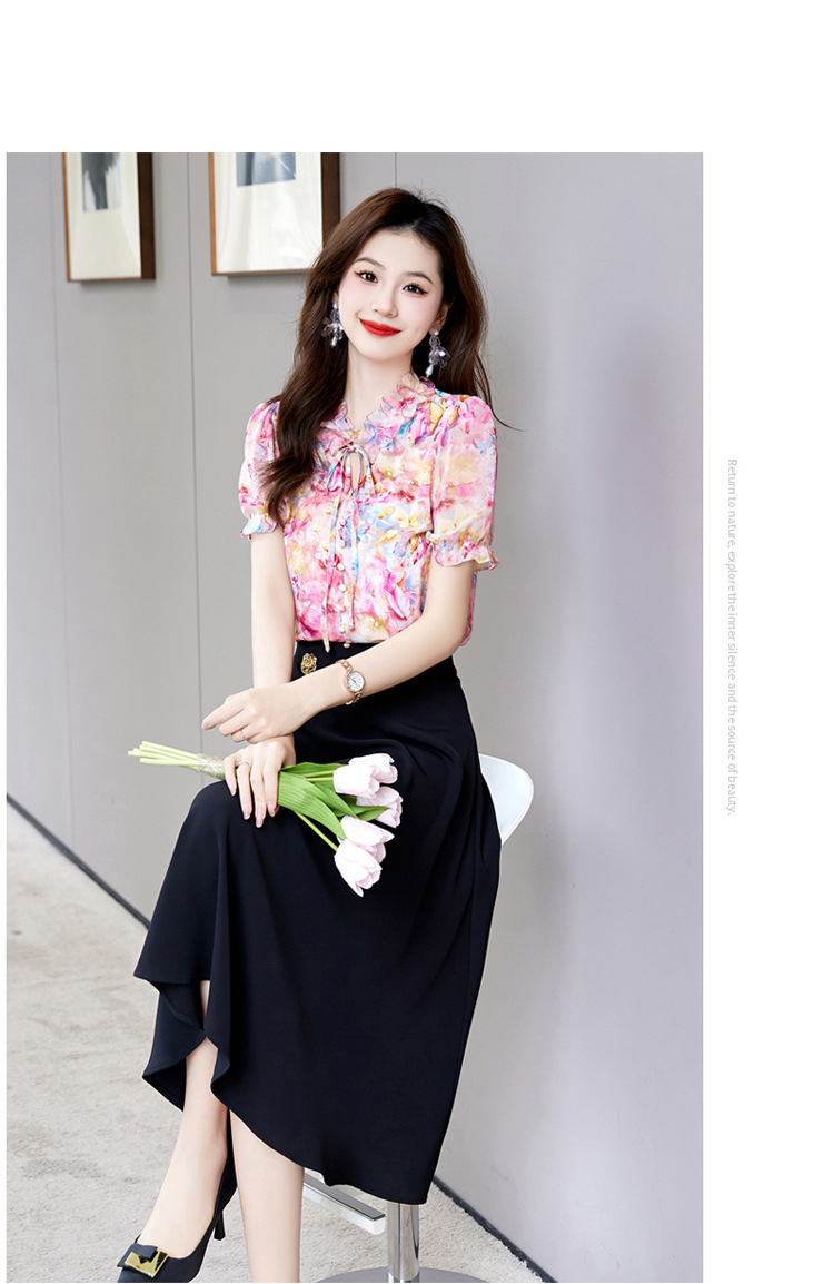 新中式花边领印花立体衬衣搭配高腰显瘦A字半身裙套装HR-WHA628-69