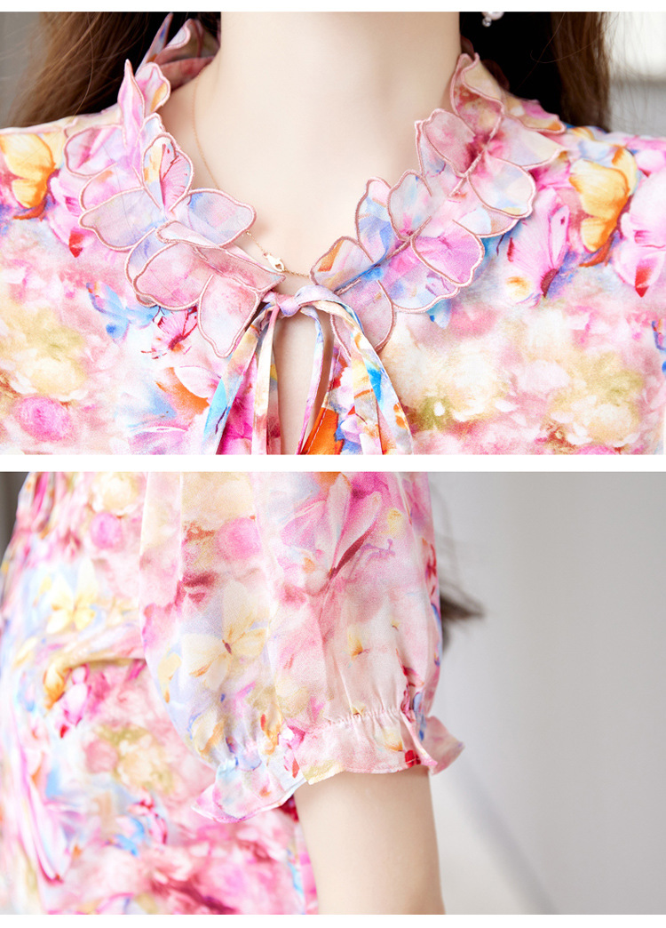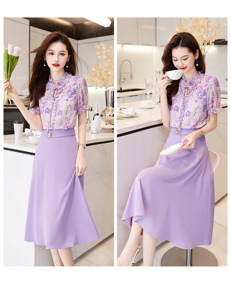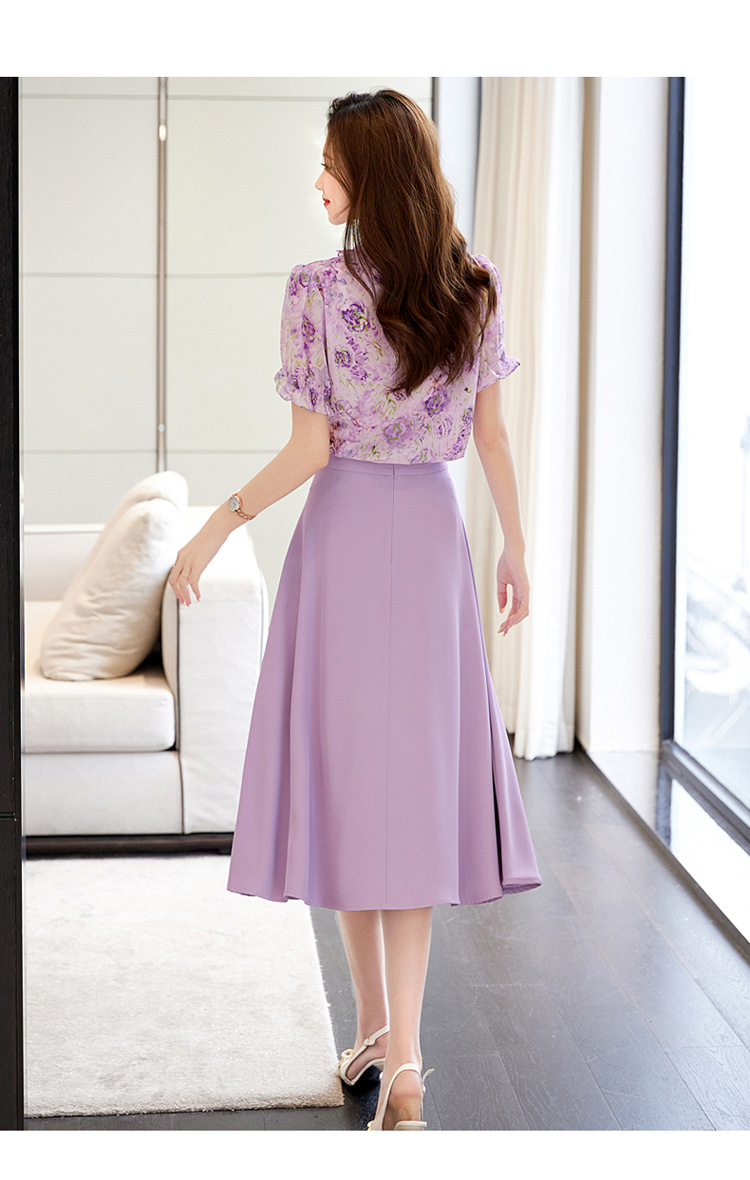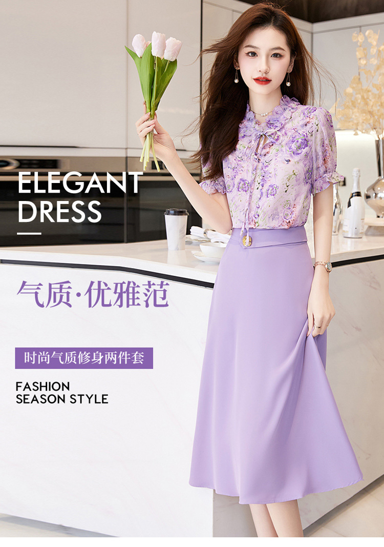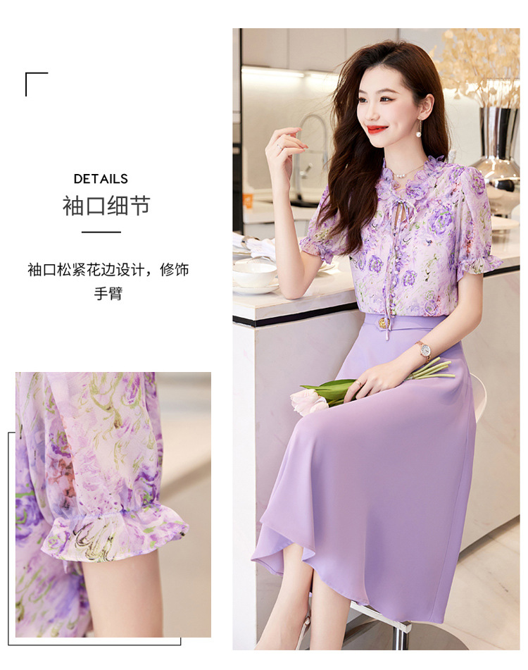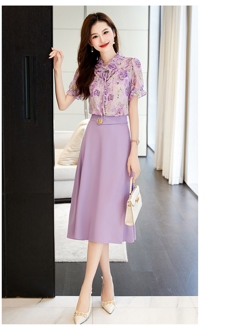 新中式花边领印花立体衬衣搭配高腰显瘦A字半身裙套装HR-WHA628-69