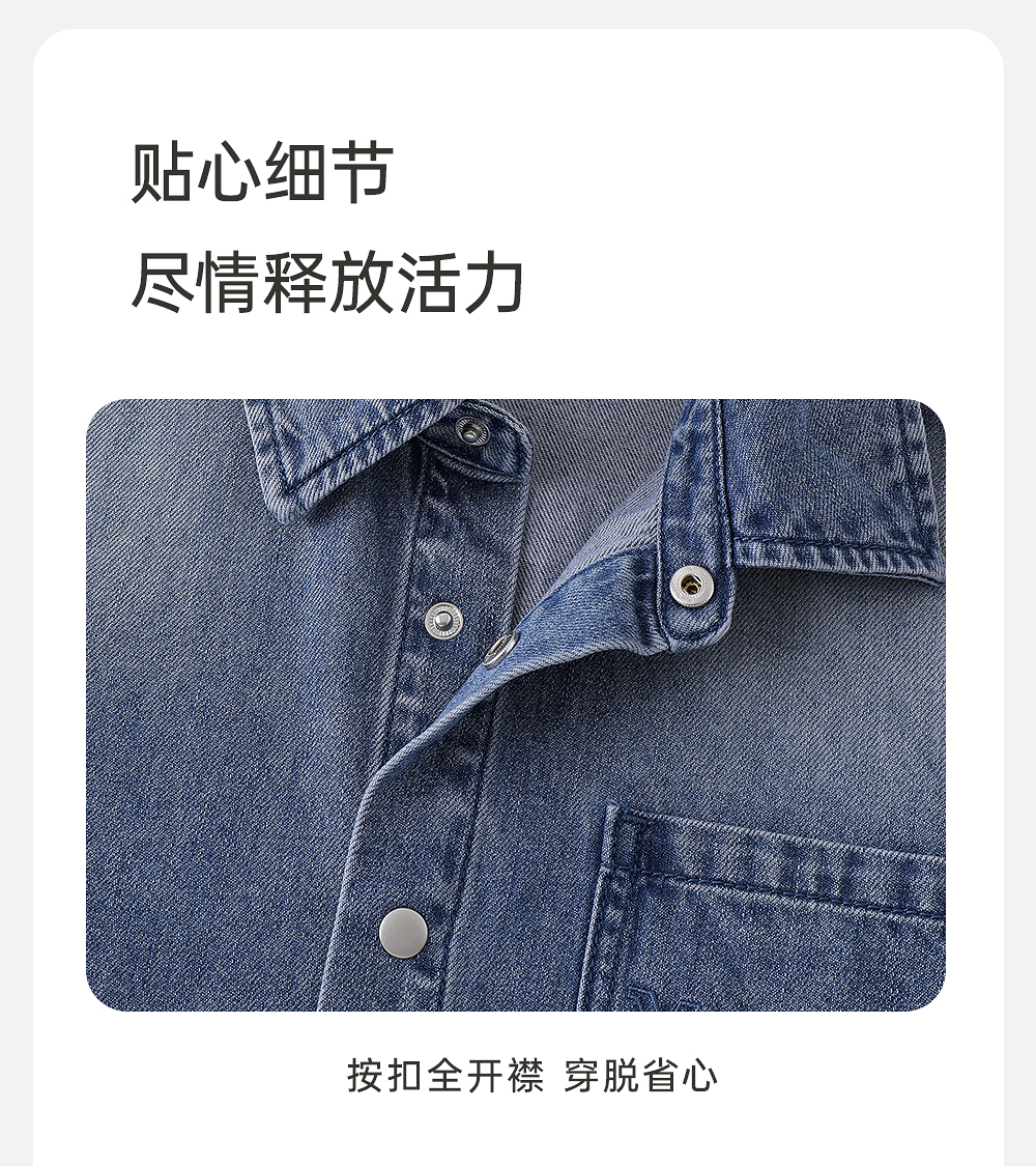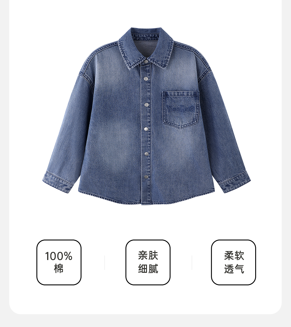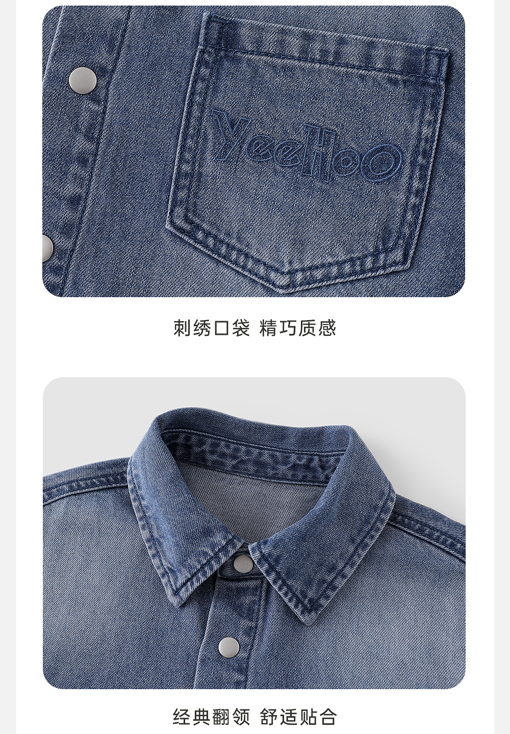 【商场同款】英氏儿童衬衫春夏纯棉长袖男童牛仔衬衫休闲2025新款