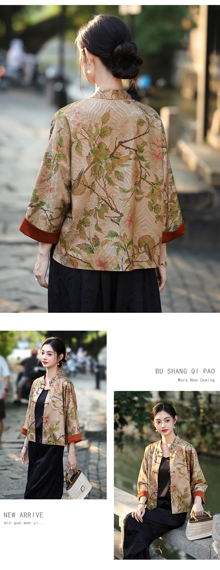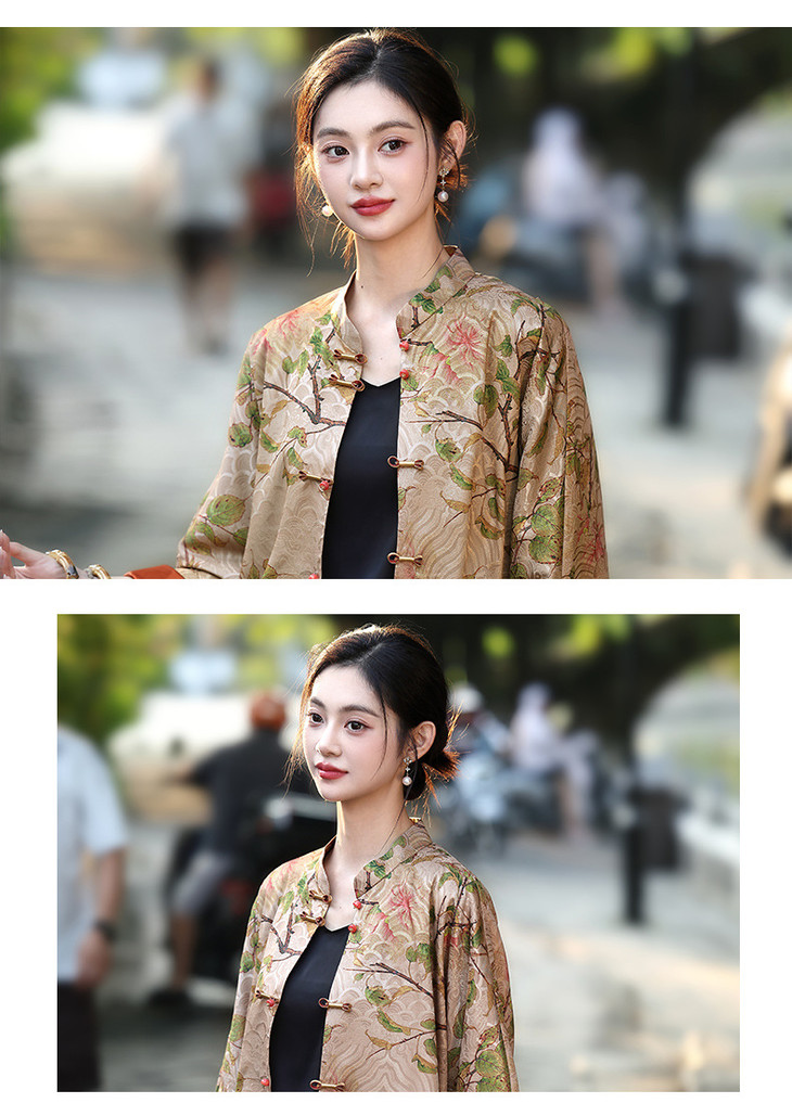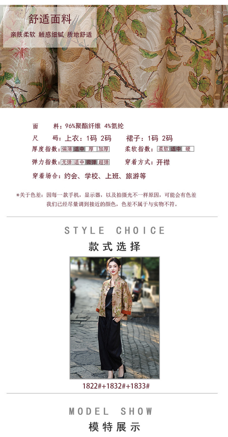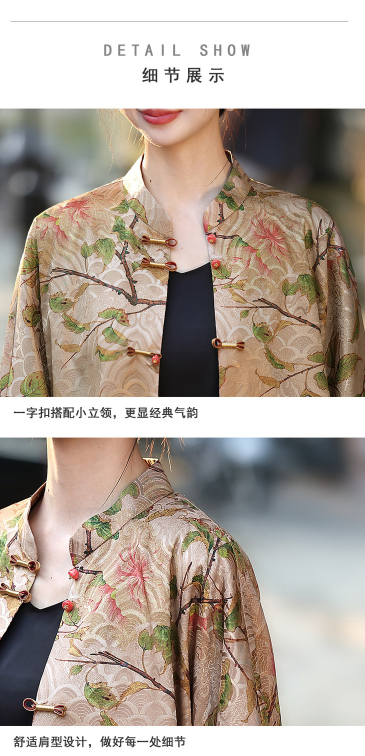 新中式国风立领印花旗袍,盘扣外套内搭裤子三件套MYJ-260