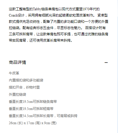 COACH蔻驰 CHAIN TABBY链带单肩包 商品图2