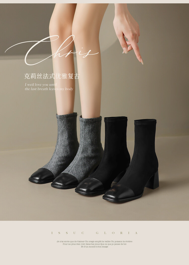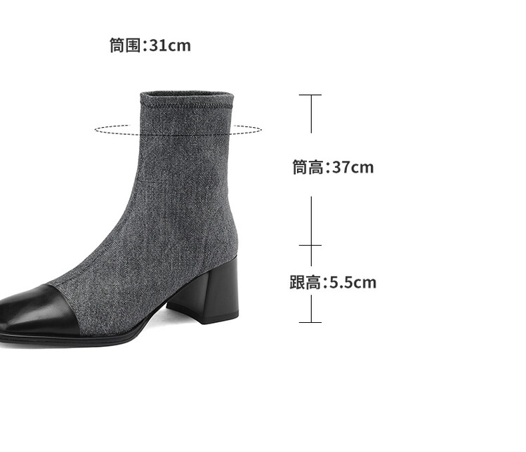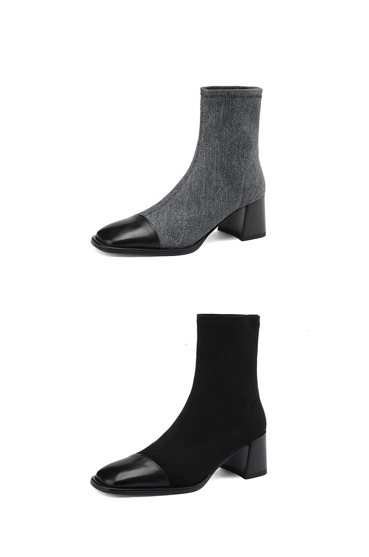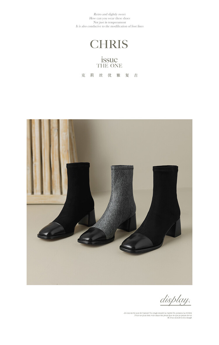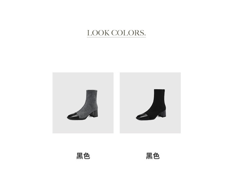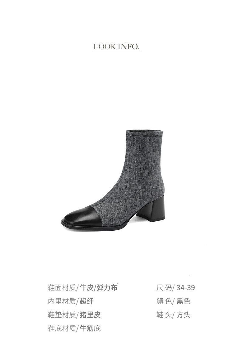 【预售5天】秋冬新款拼接方头粗跟短靴女高跟弹力瘦瘦靴YS&5955