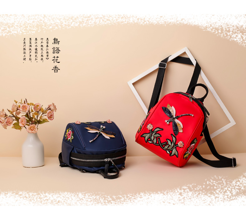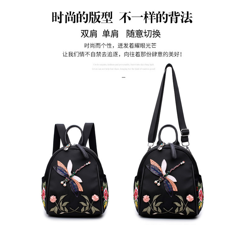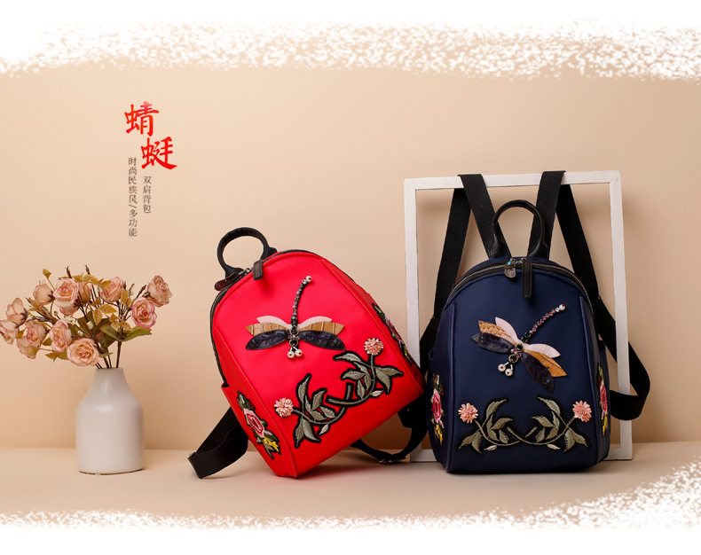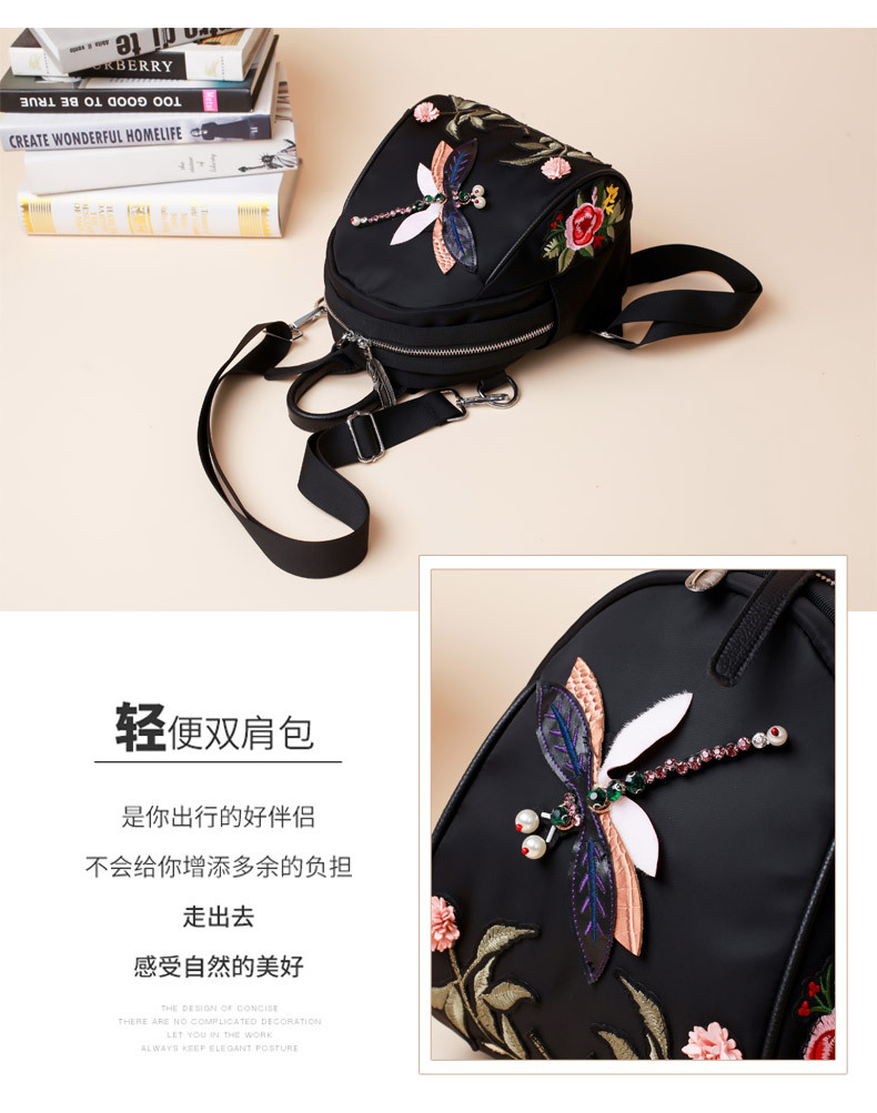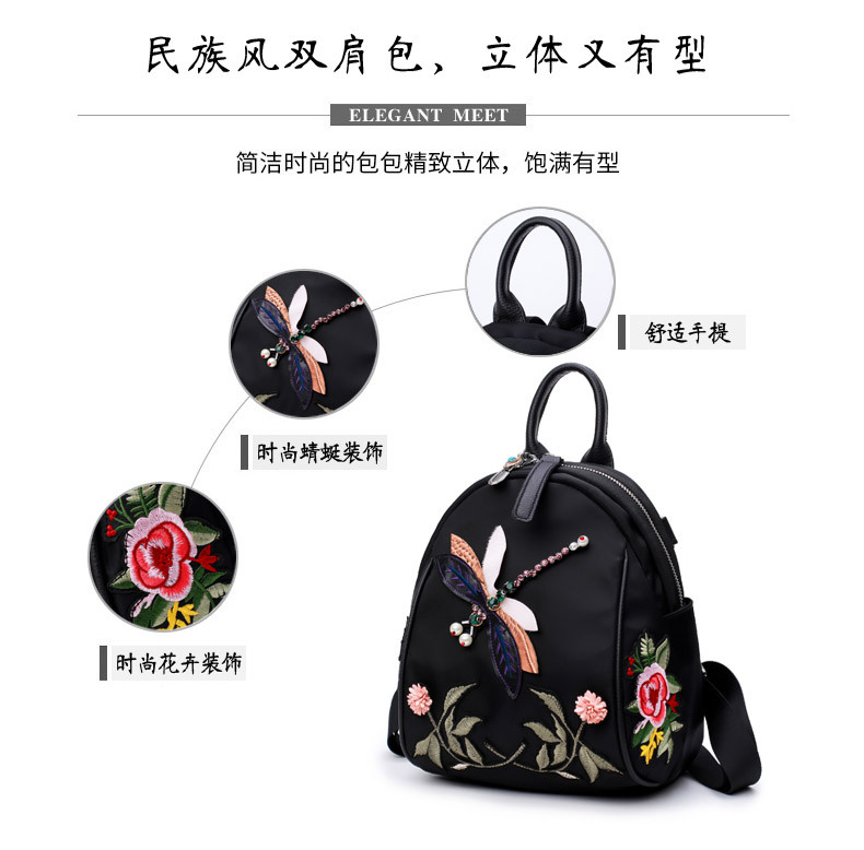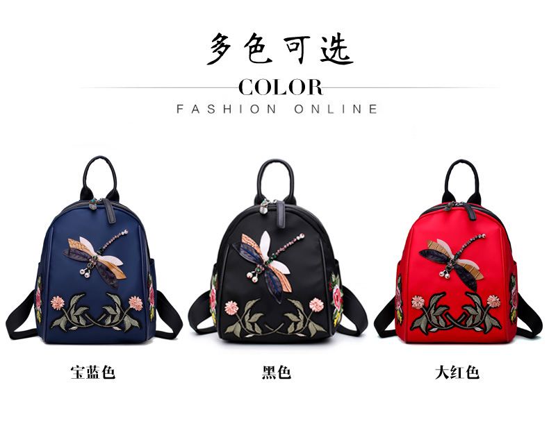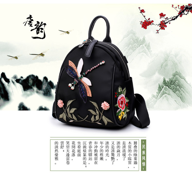 QS-x9新品民族风蜻蜓绣花牛津布双肩包 TZW
