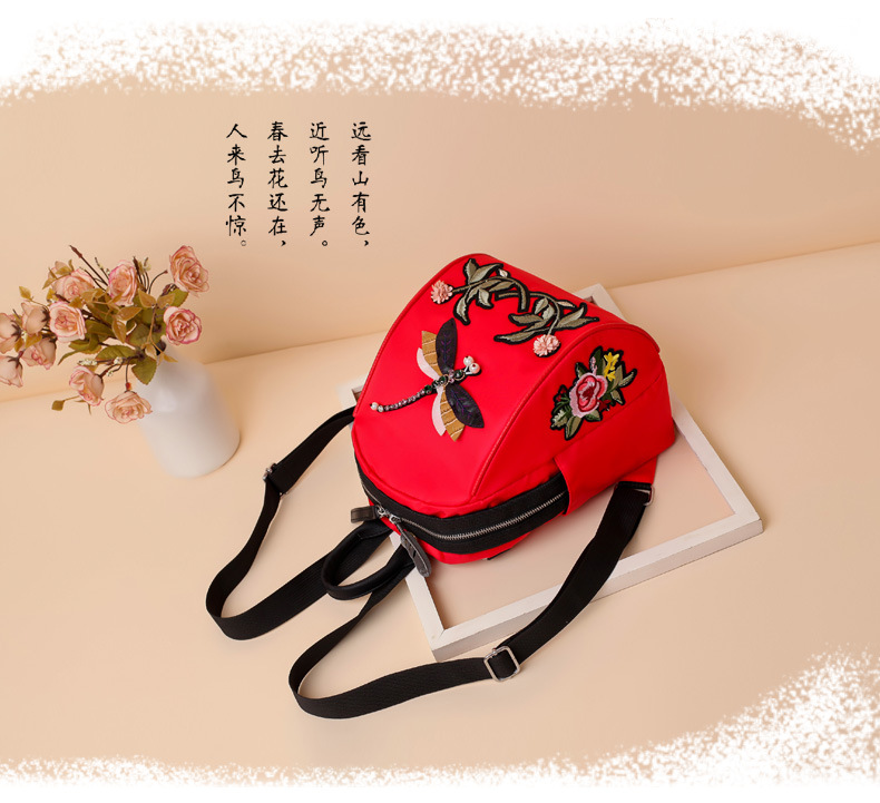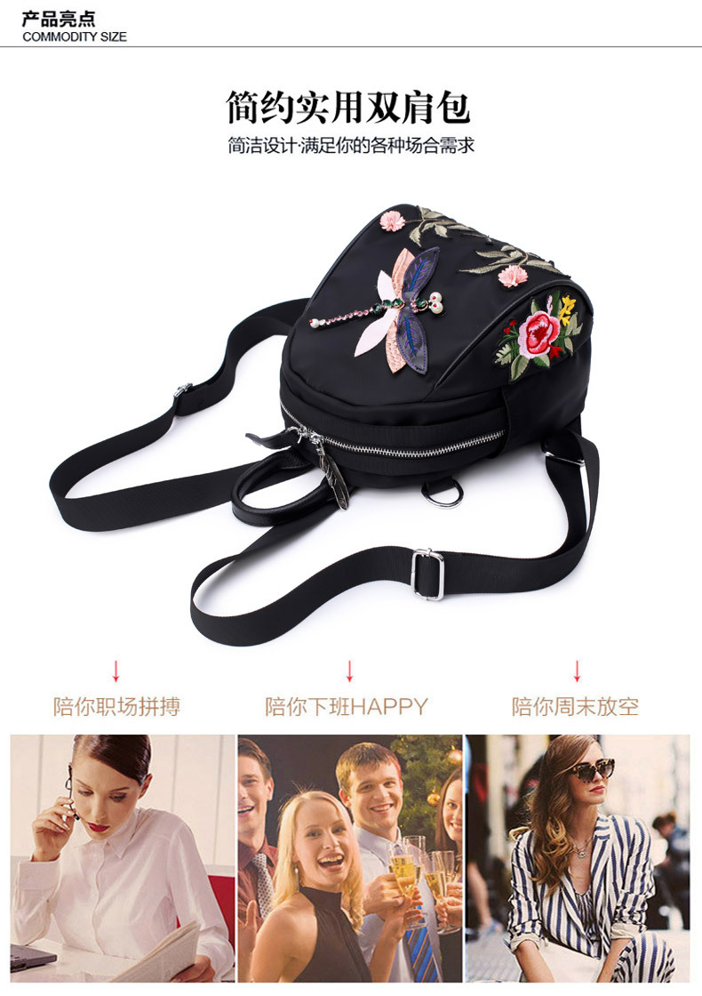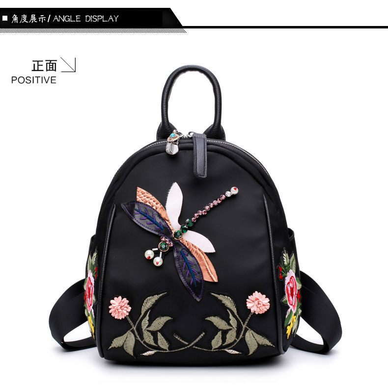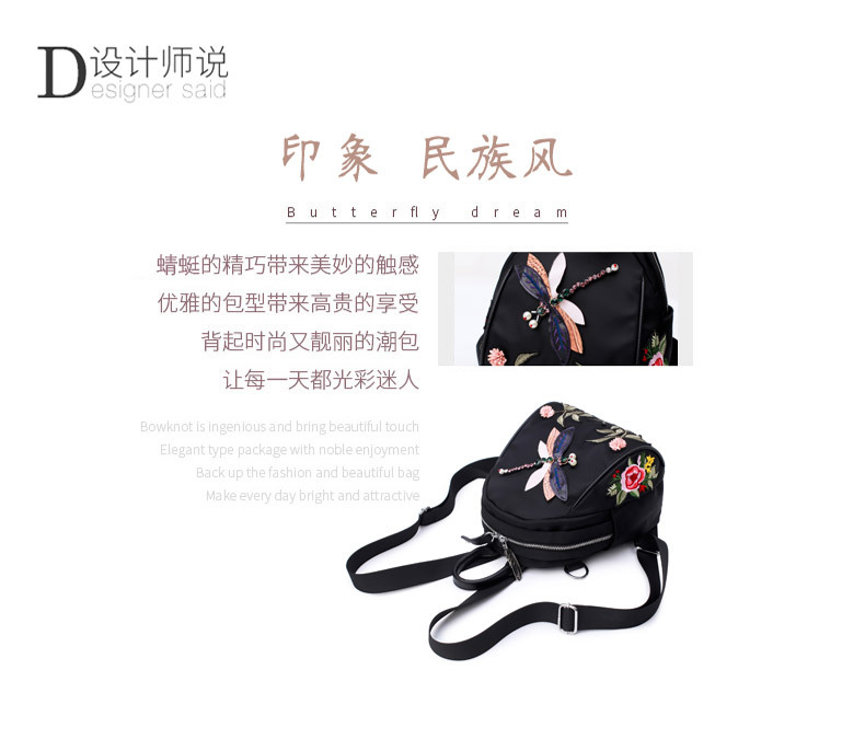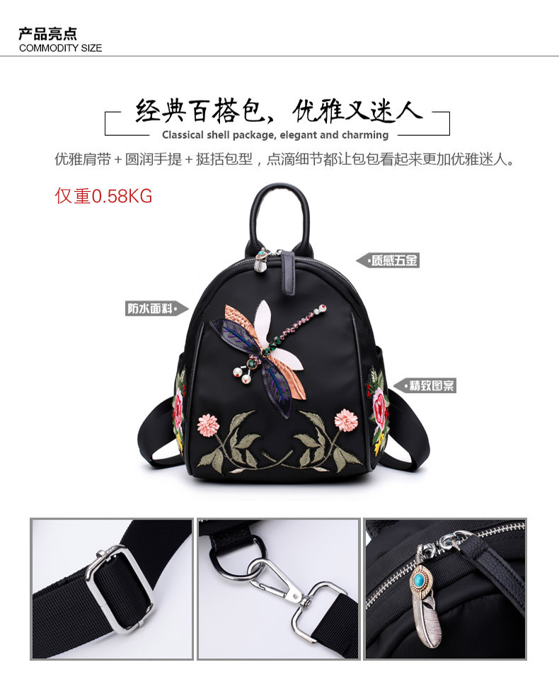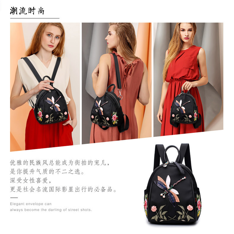 QS-x9新品民族风蜻蜓绣花牛津布双肩包 TZW