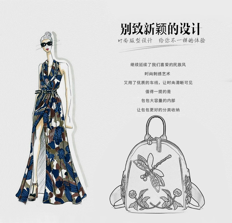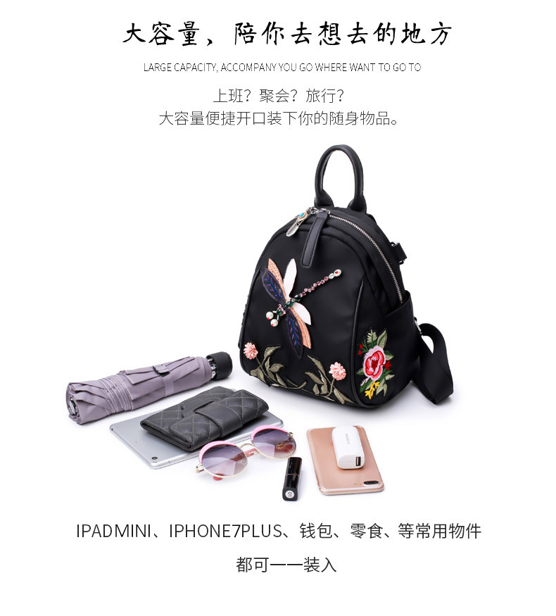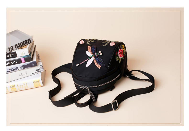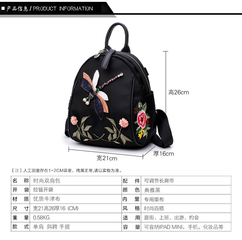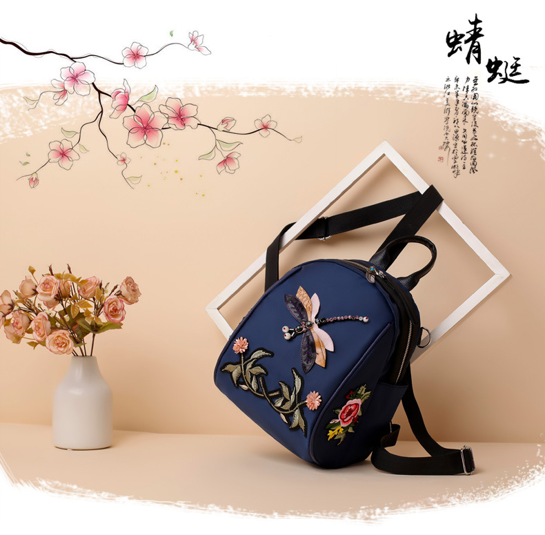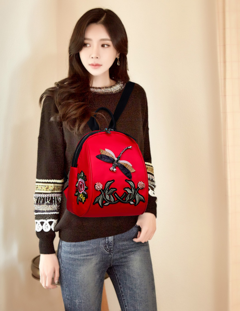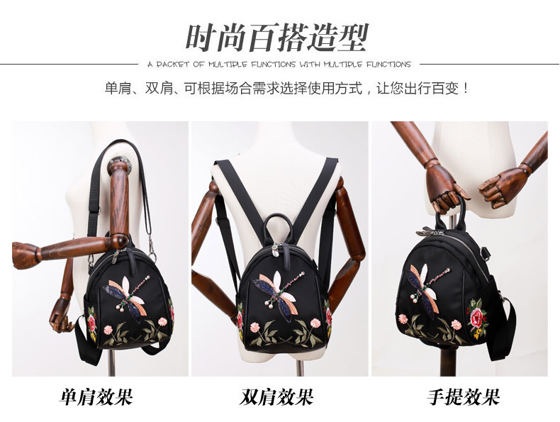 QS-x9新品民族风蜻蜓绣花牛津布双肩包 TZW