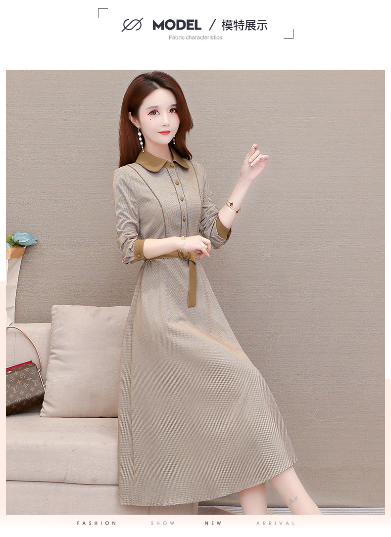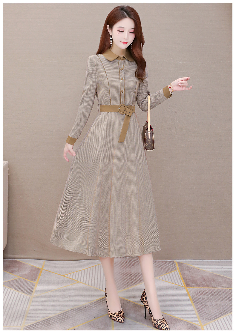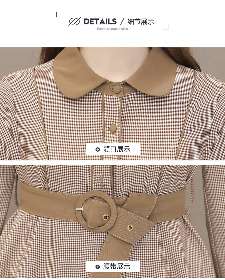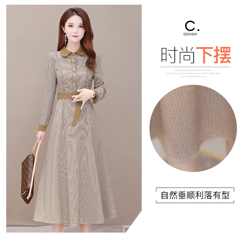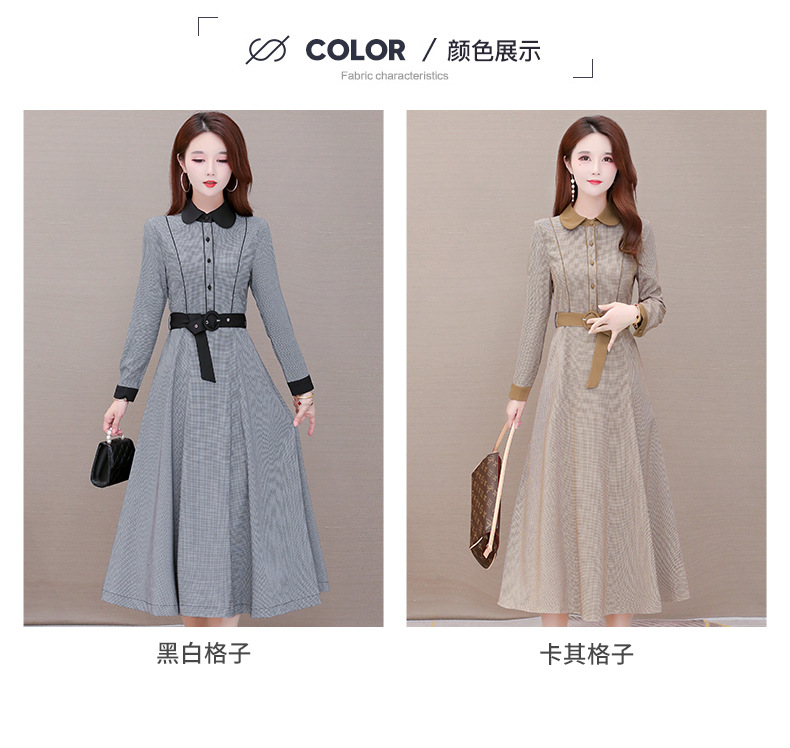 YX-YJ-ZN15时尚显瘦格纹连衣裙女2020年秋季新款气质高端轻熟风洋气A字裙