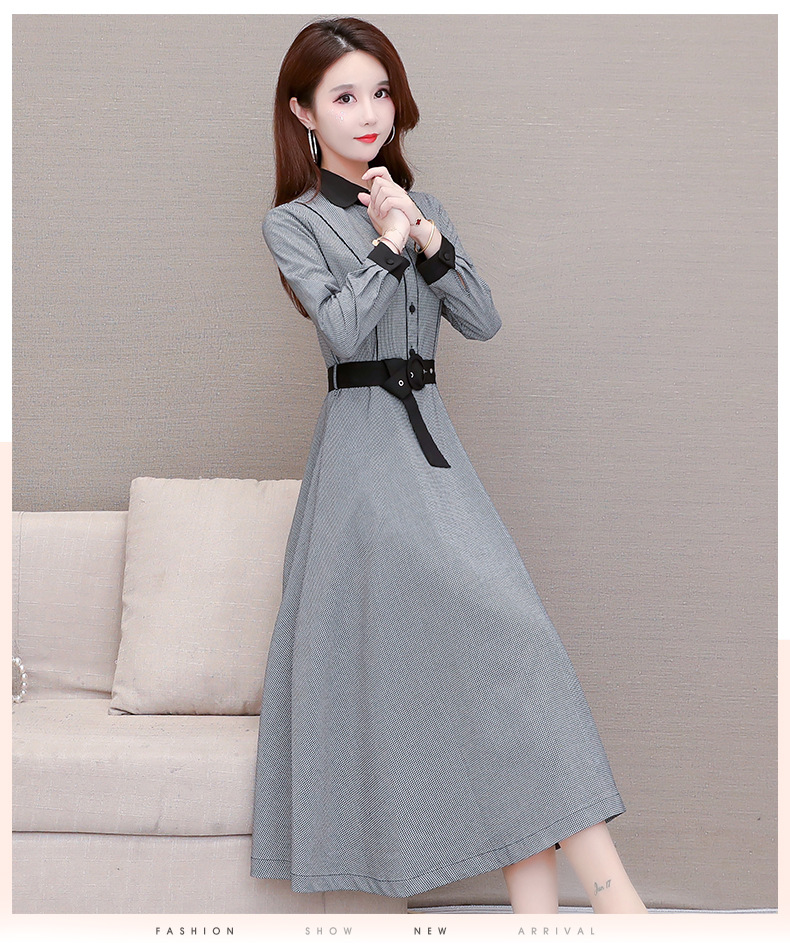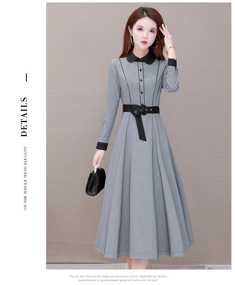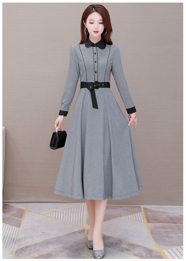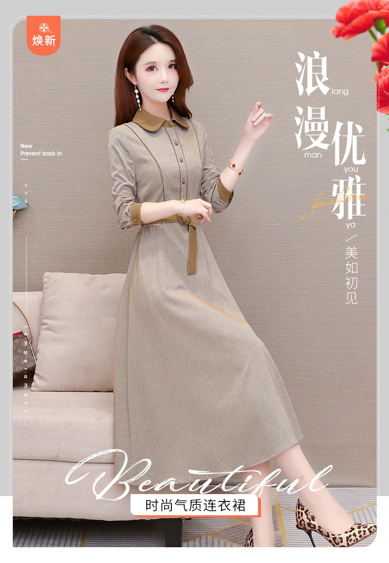YX-YJ-ZN15时尚显瘦格纹连衣裙女2020年秋季新款气质高端轻熟风洋气A字裙