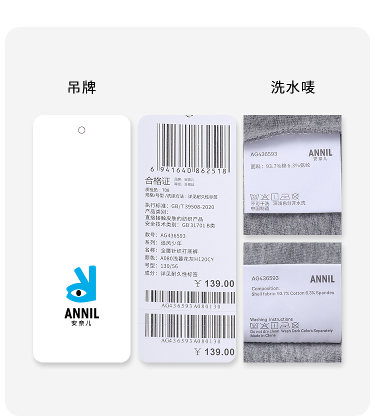 女童弹力修身打底裤新款安奈儿童装实体店同款AG436593