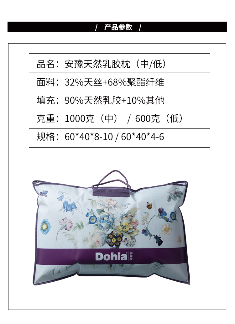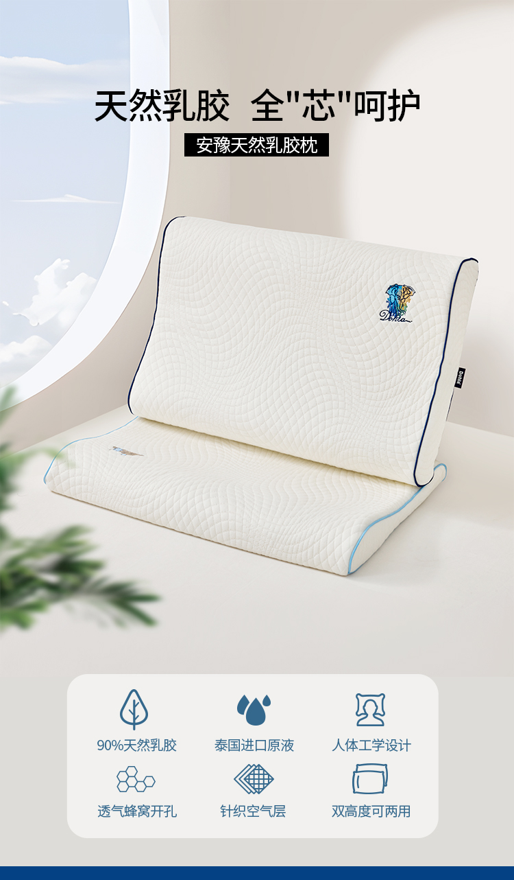 多喜爱 安豫天然乳胶枕(中枕/低枕)【进口原液乳胶】【针织面料】【人体工学】两款高度可选 柔弹支撑