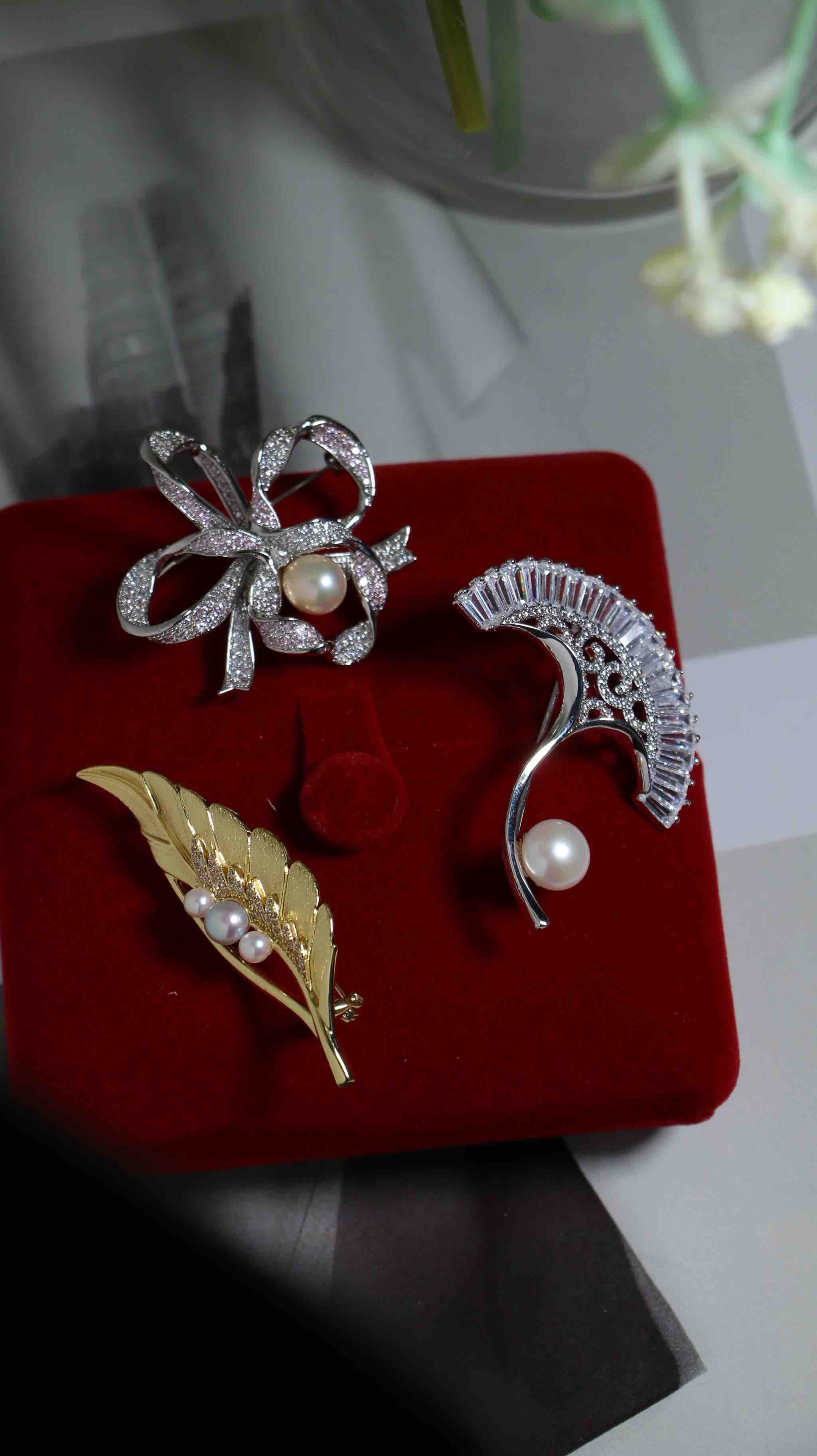 新年福利组合 羽毛叶子蝴蝶结胸针三件套