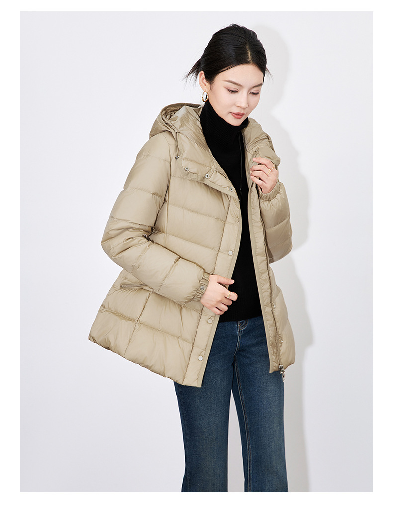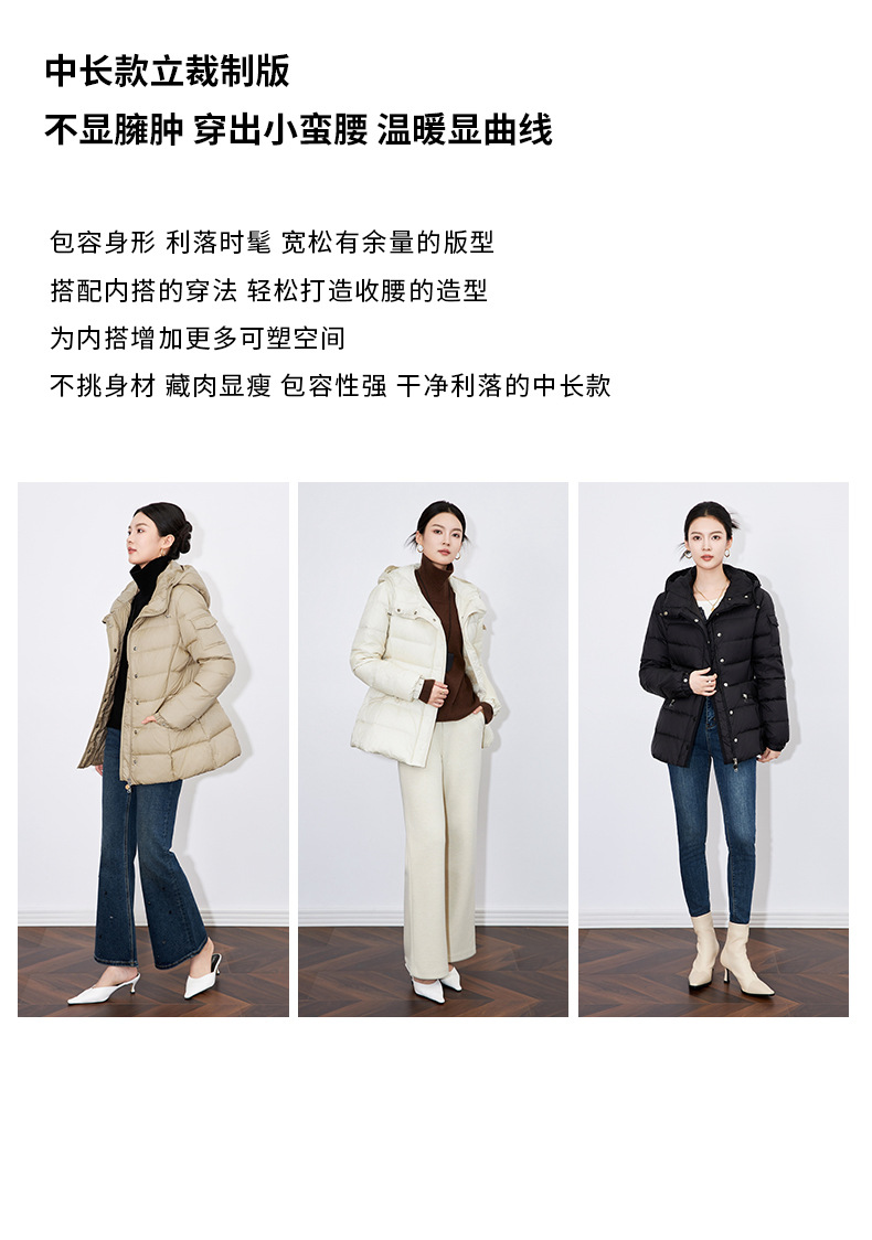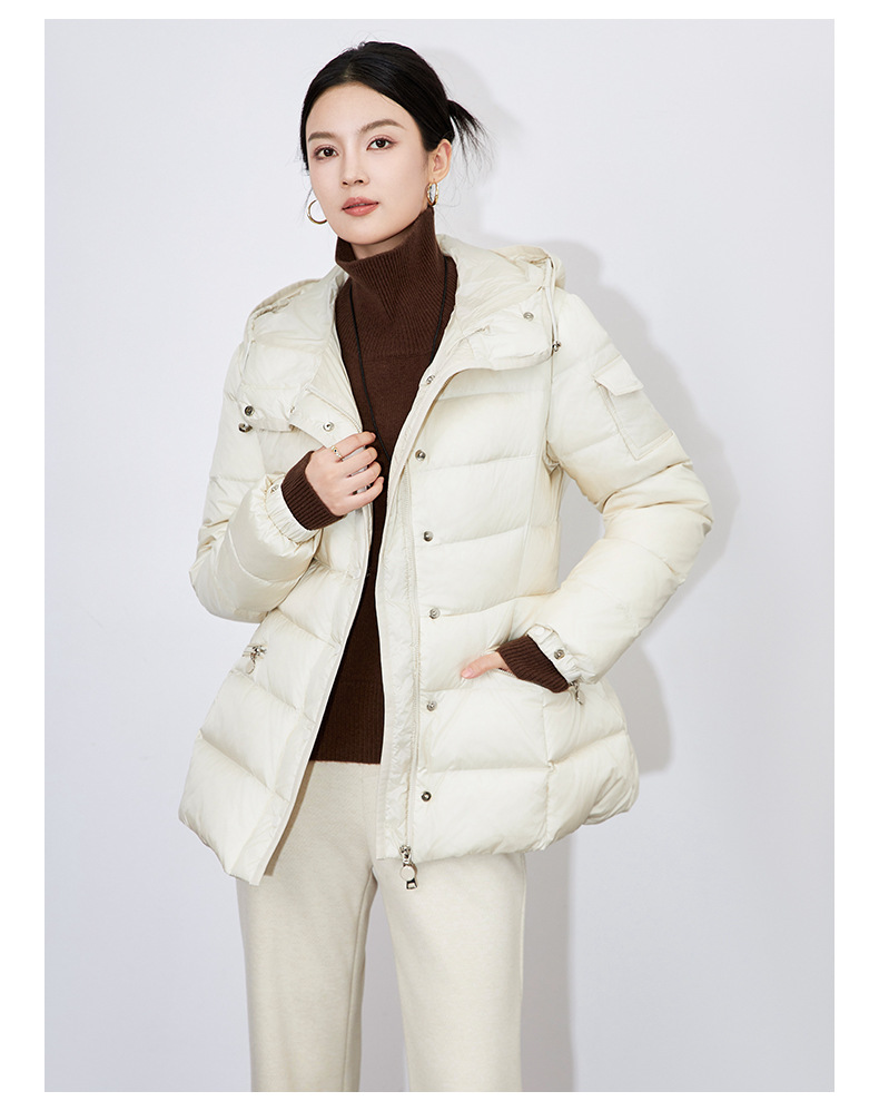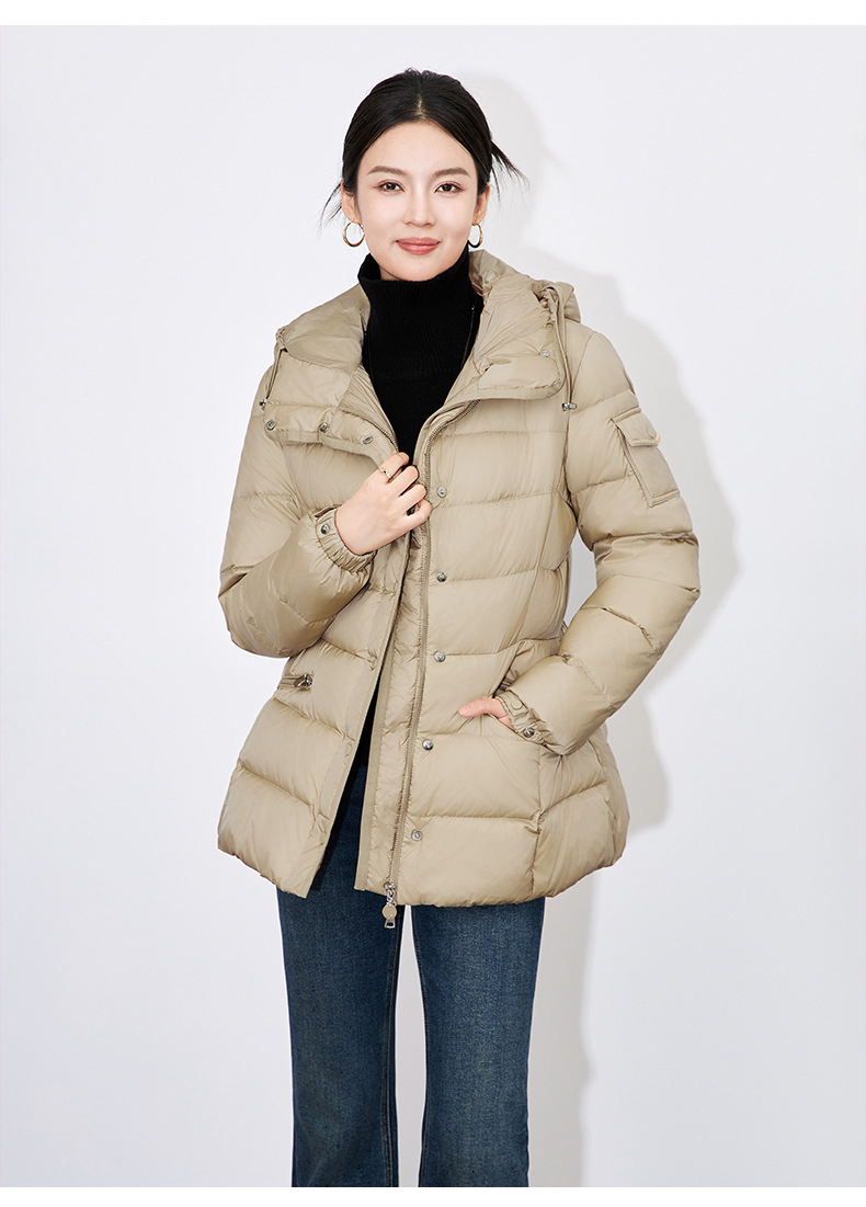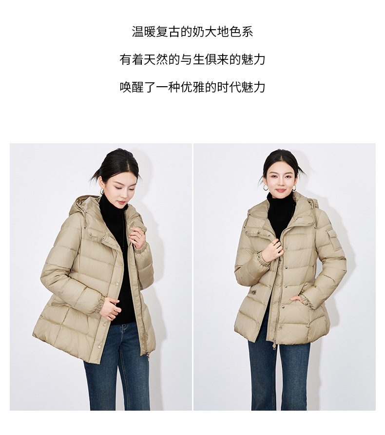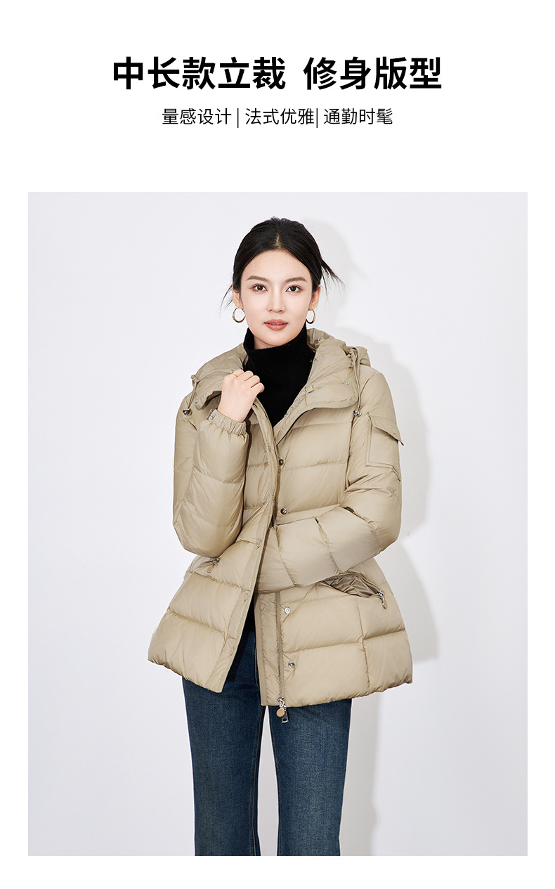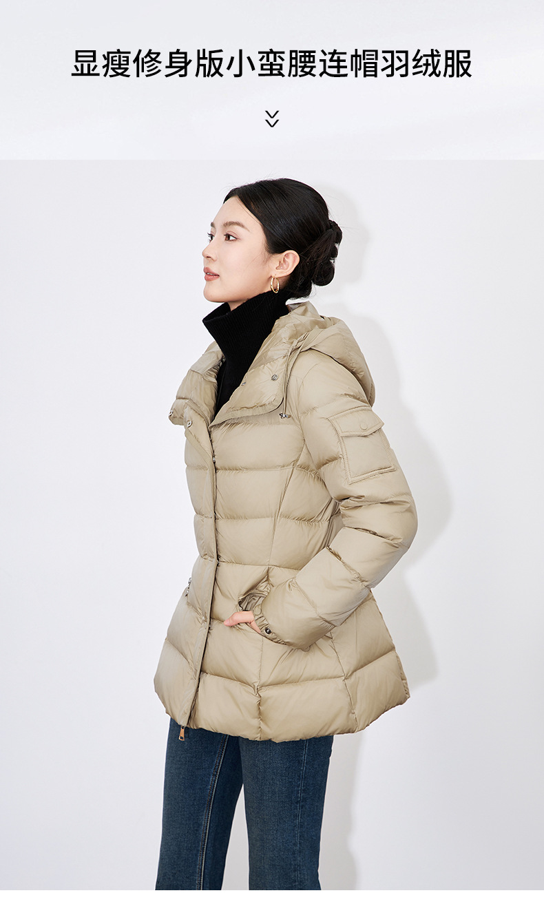 【高货wl】全新升级【铂金会员441/天猫589/差价148】(05557) 洛诗琳轻奢减龄90白鸭绒修身显瘦长袖连帽收腰短款羽绒服