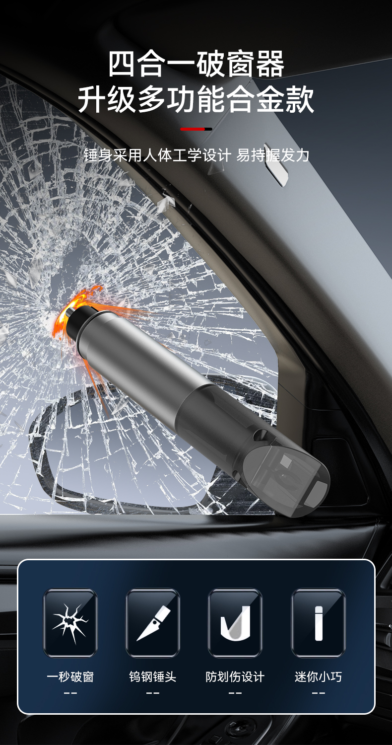 多功能安全锤破窗逃生神器 安全锤割刀口哨照明灯四合一