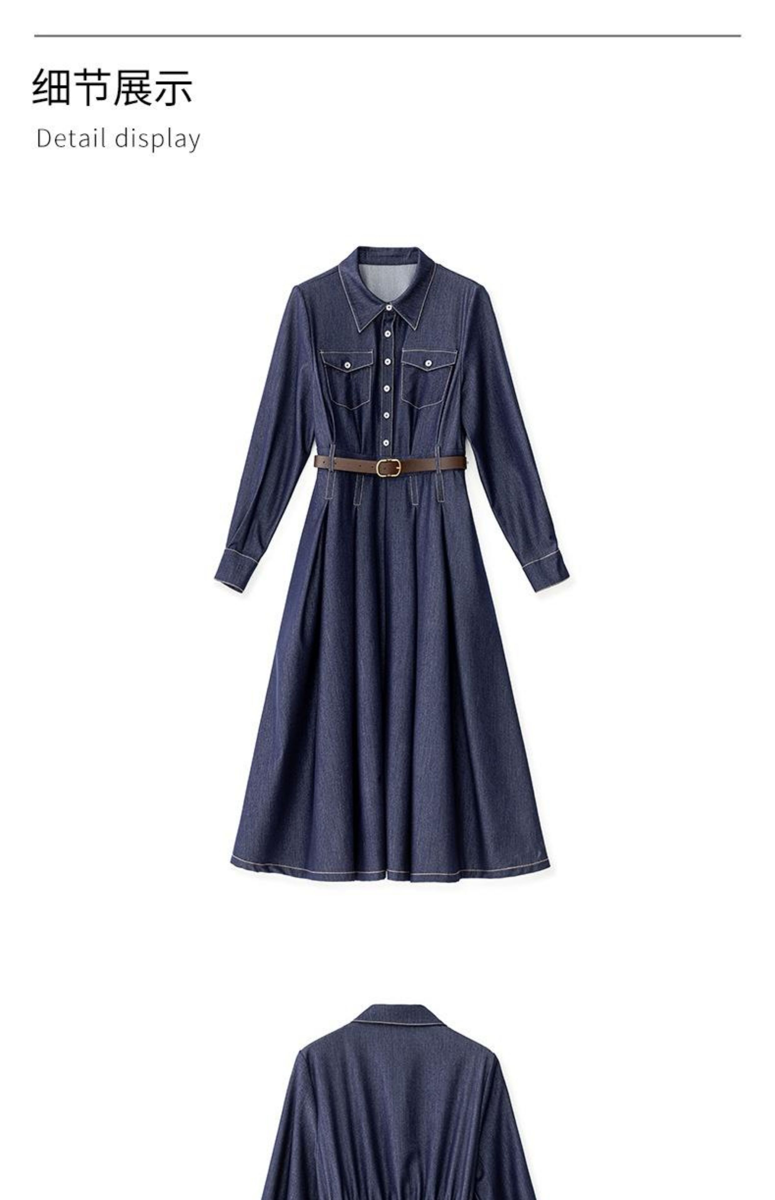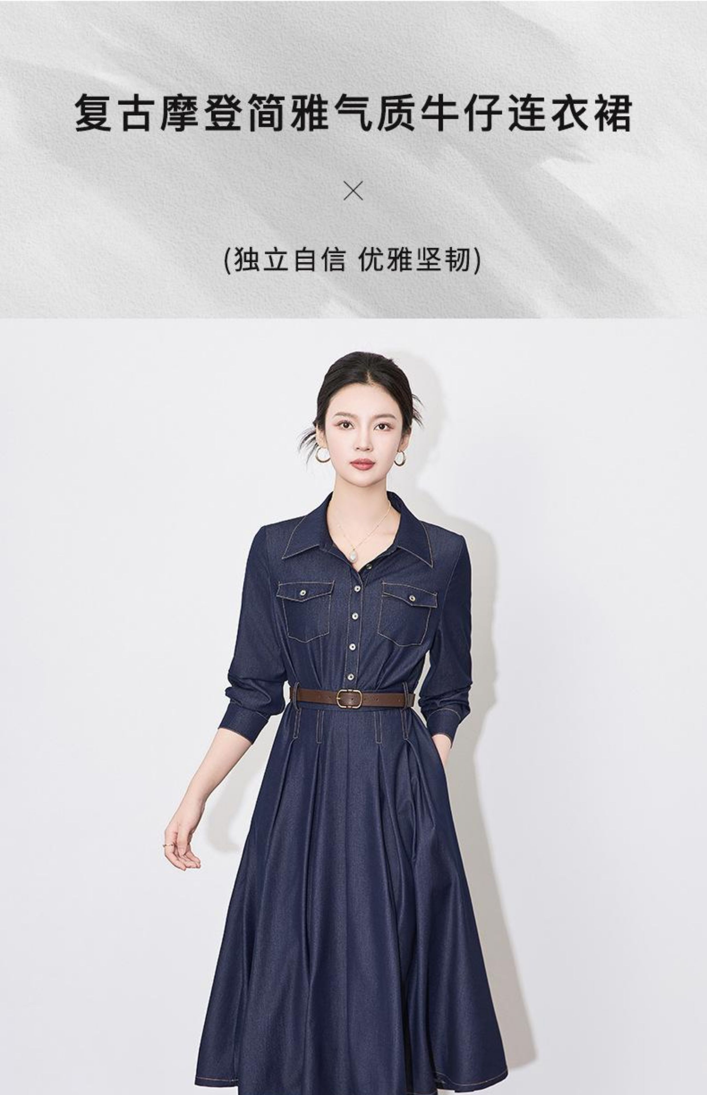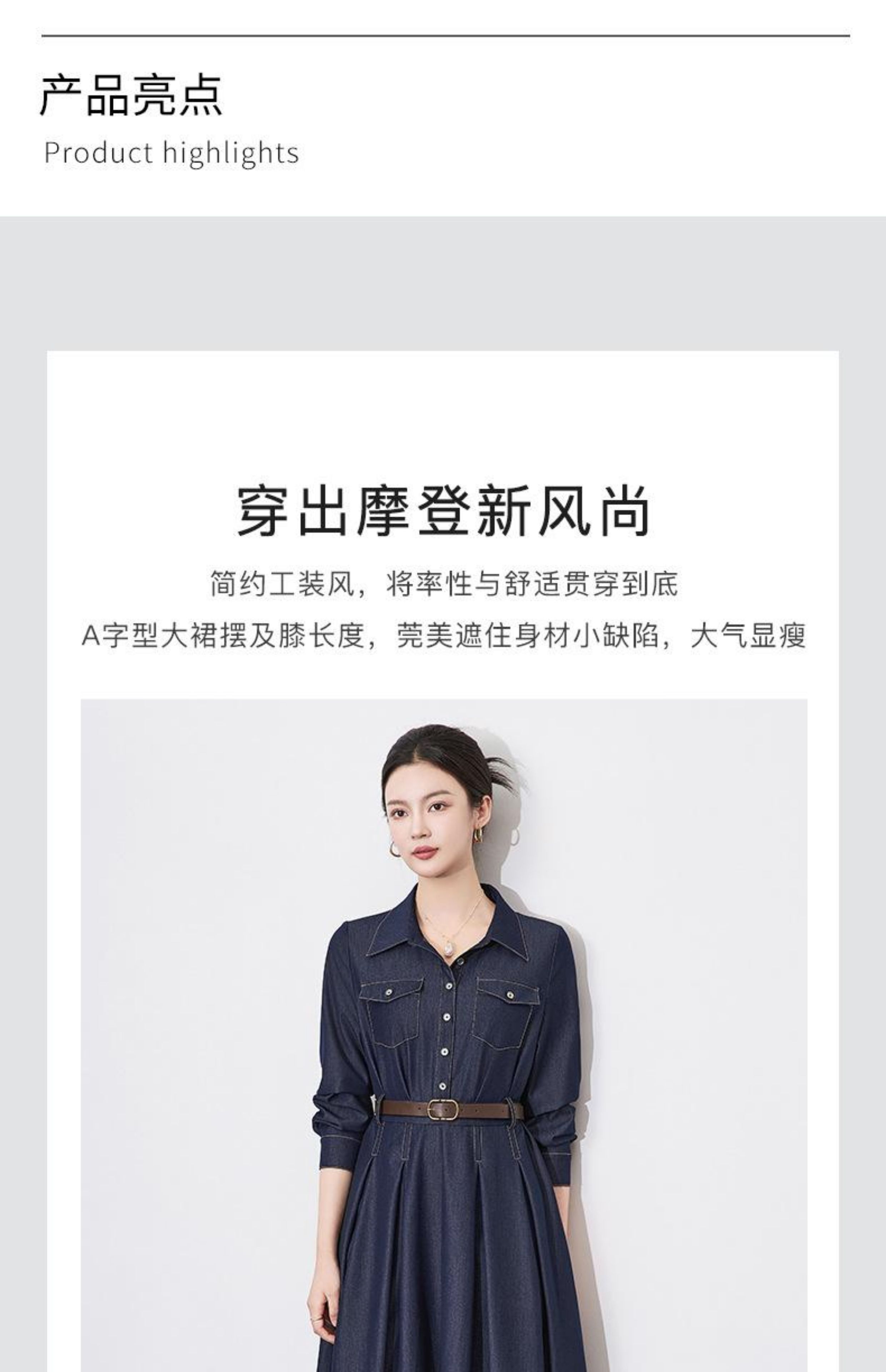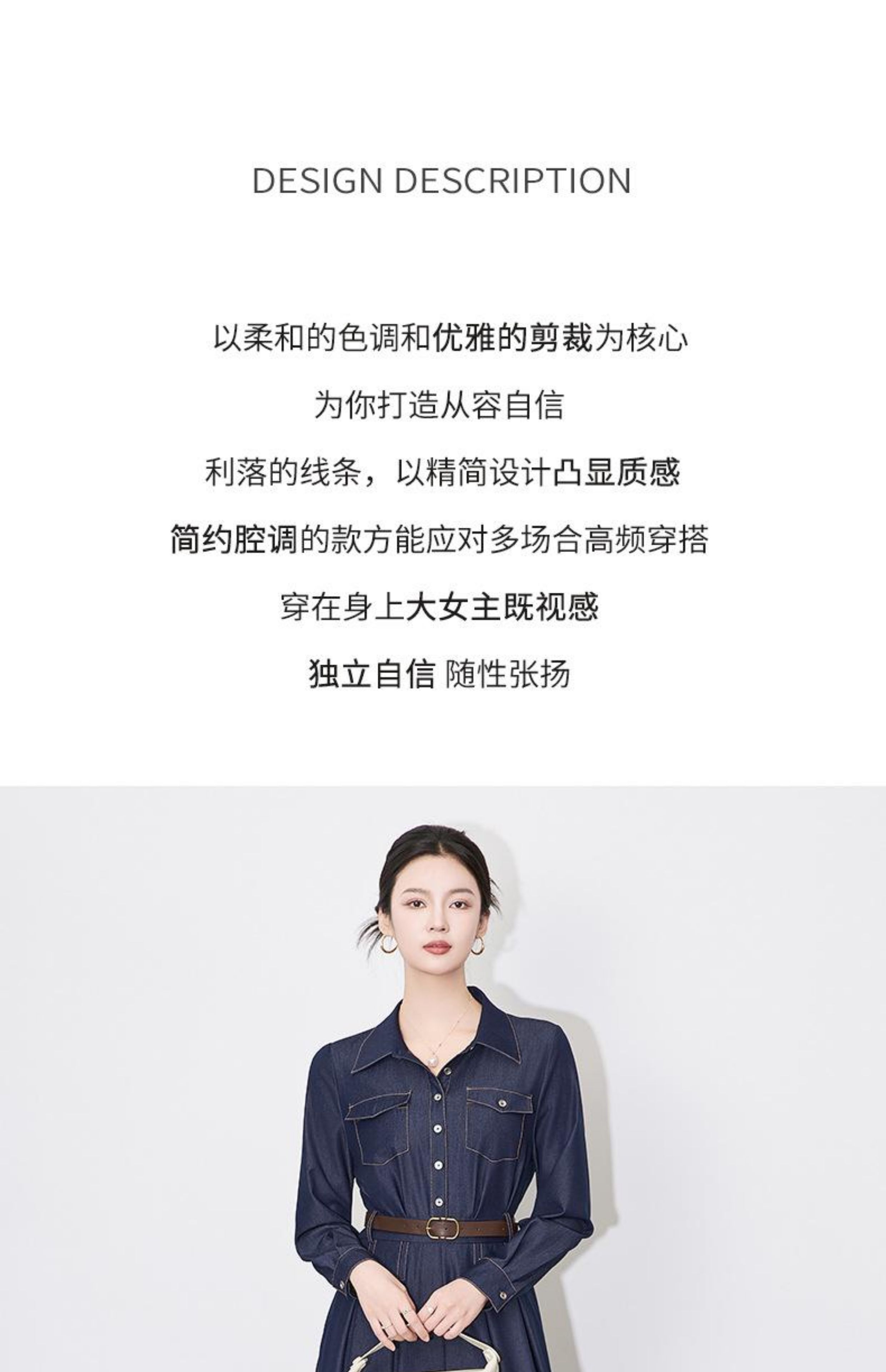 【高货wl】全新升级【铂金会员321/天猫429/差价108】(00911) 洛诗琳新款翻领蓝色工装衬衫裙时尚气质通勤收腰牛仔裙