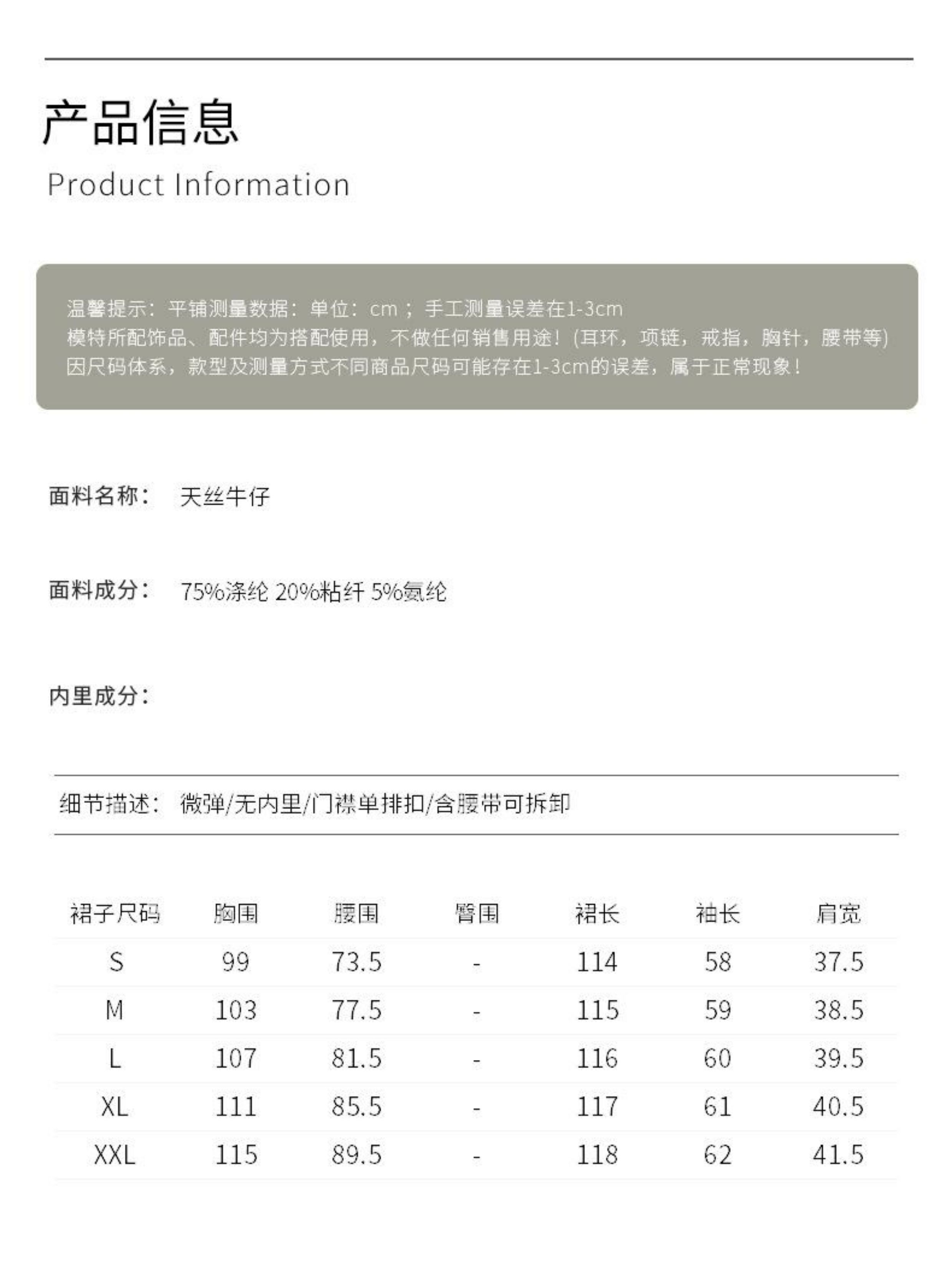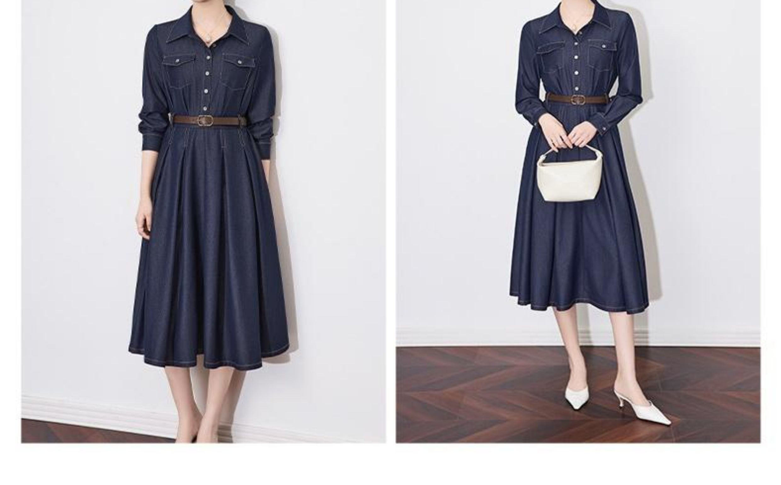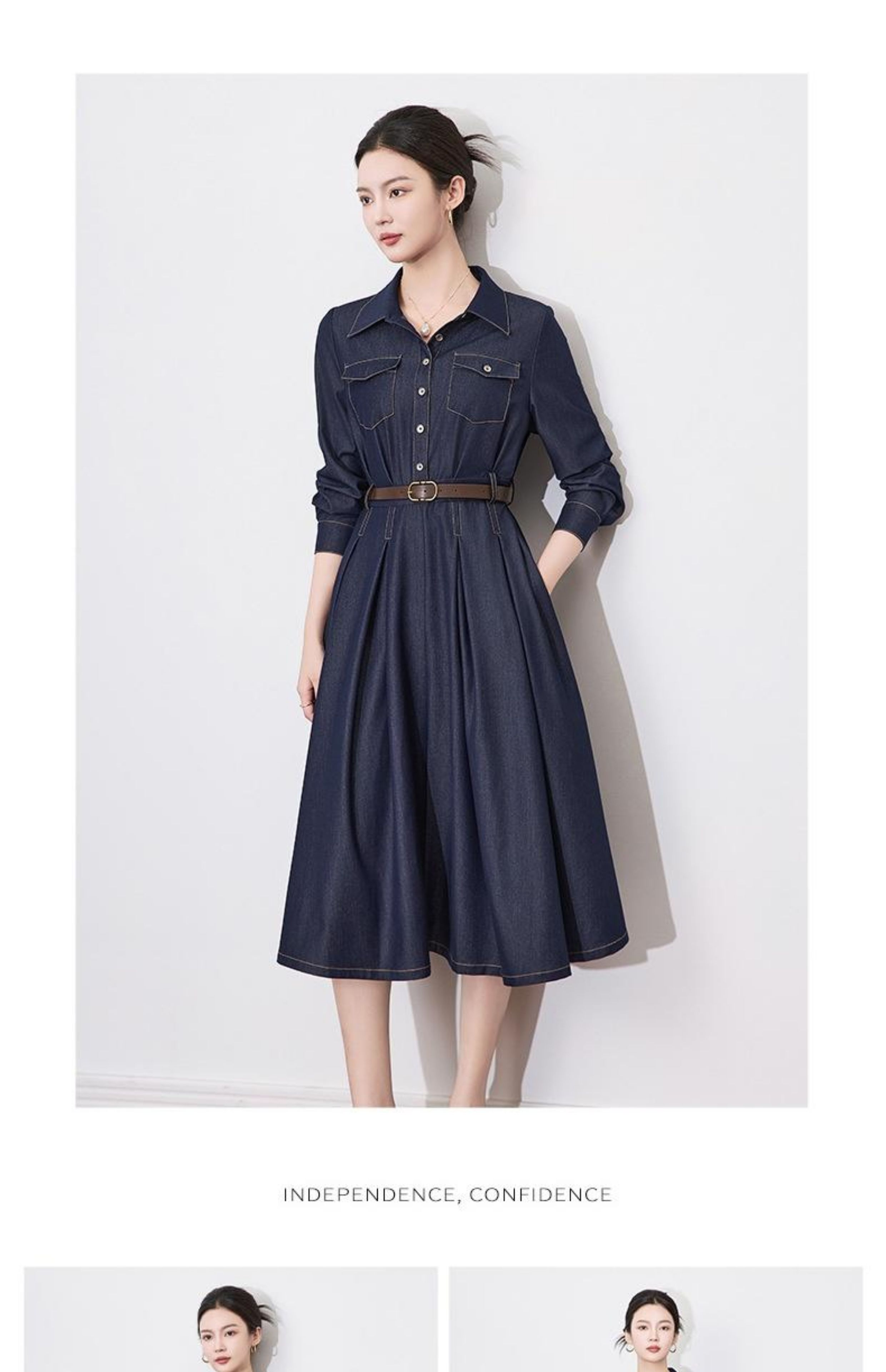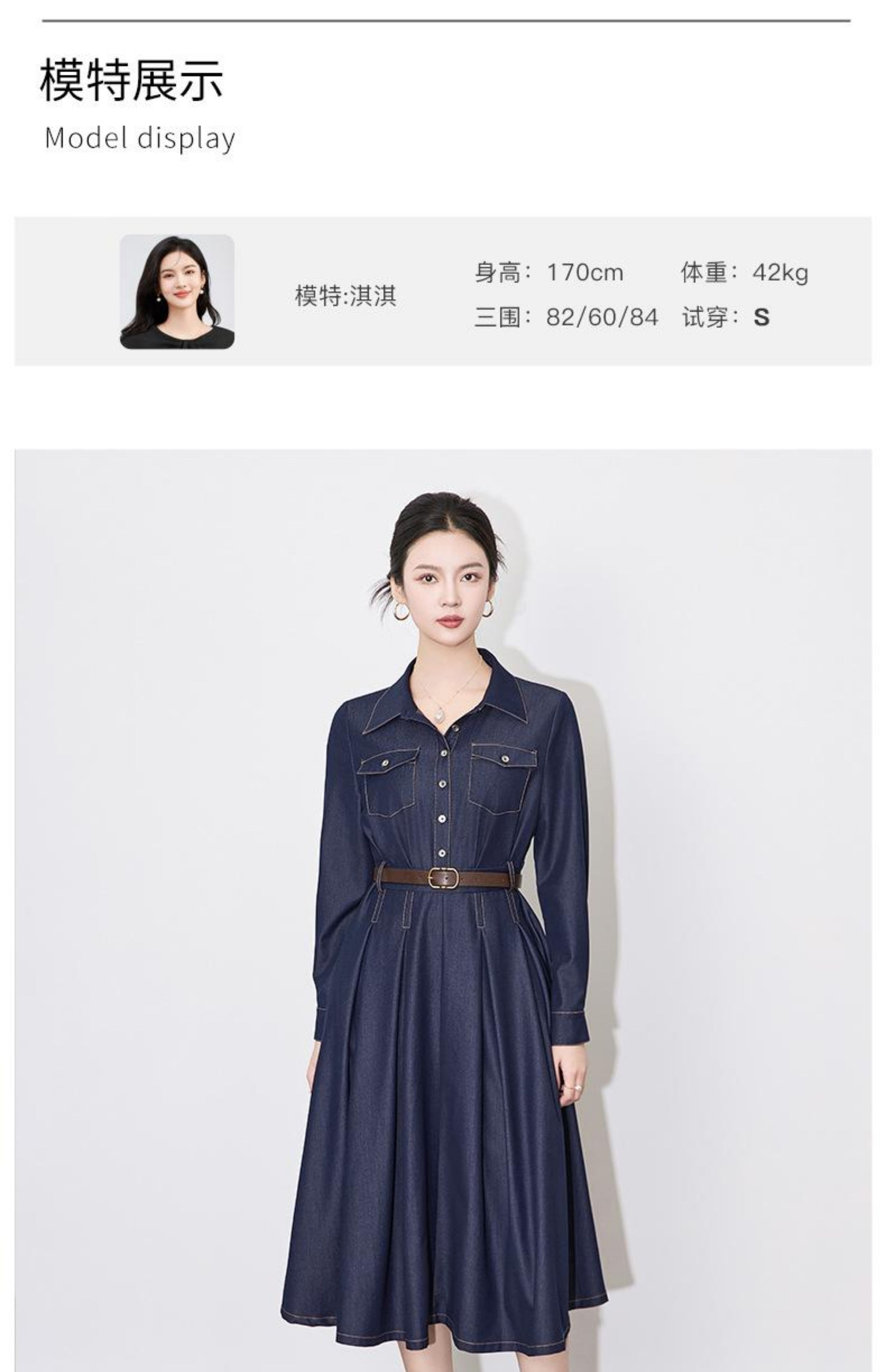 【高货wl】全新升级【铂金会员321/天猫429/差价108】(00911) 洛诗琳新款翻领蓝色工装衬衫裙时尚气质通勤收腰牛仔裙