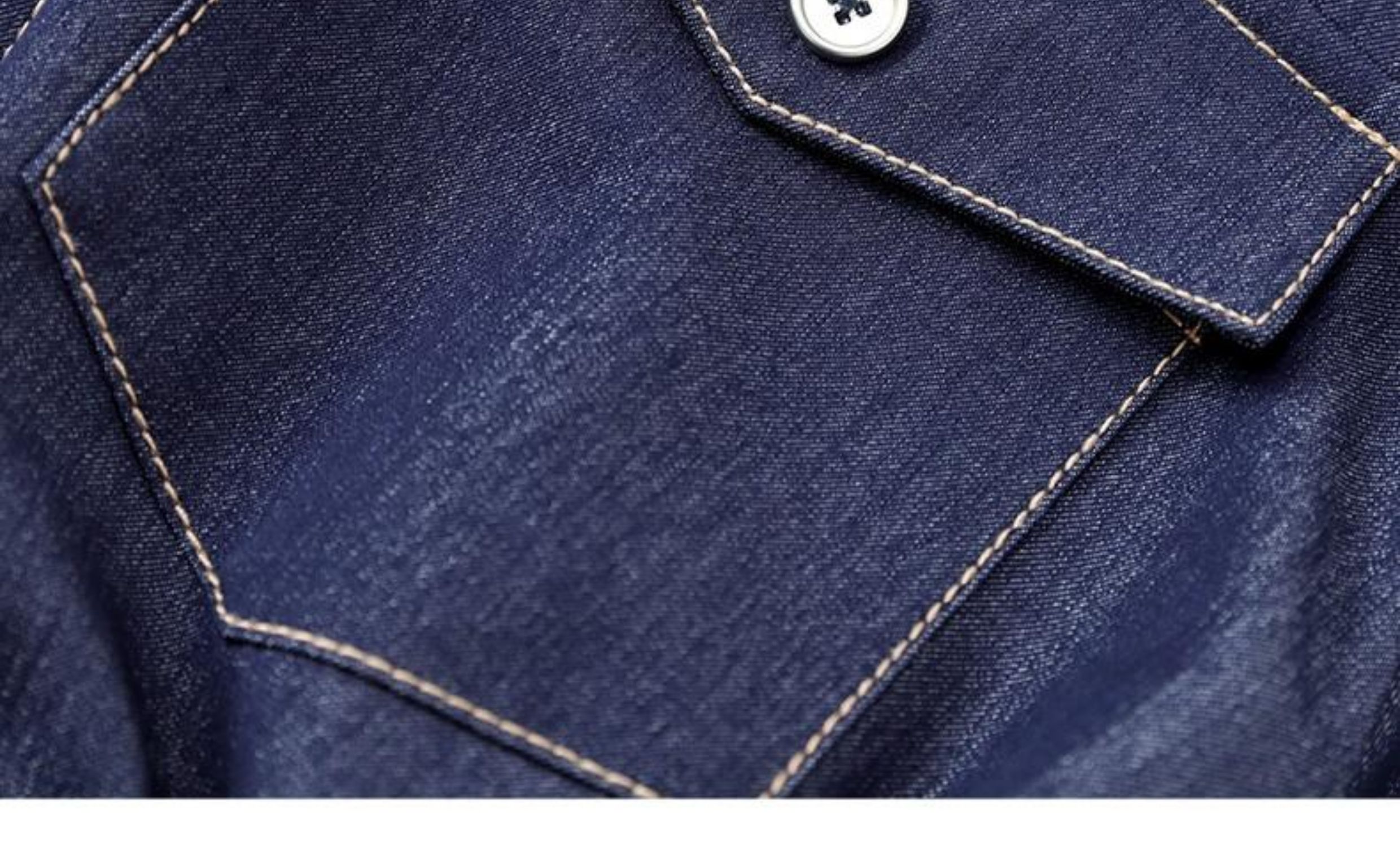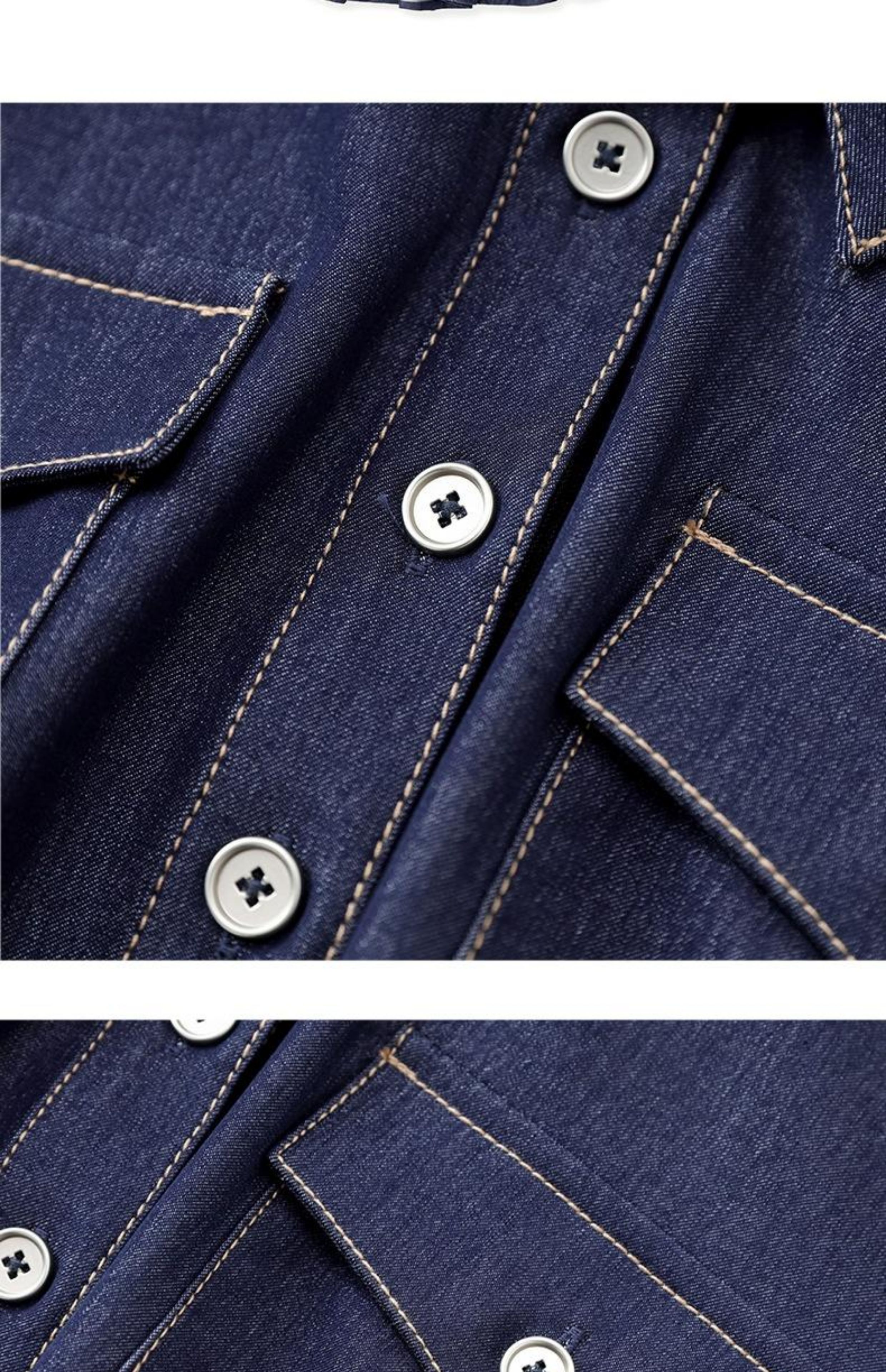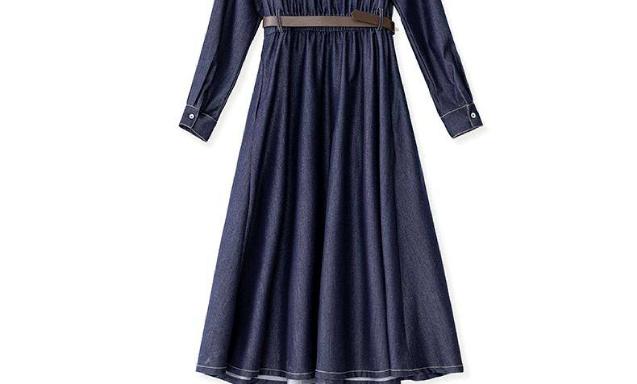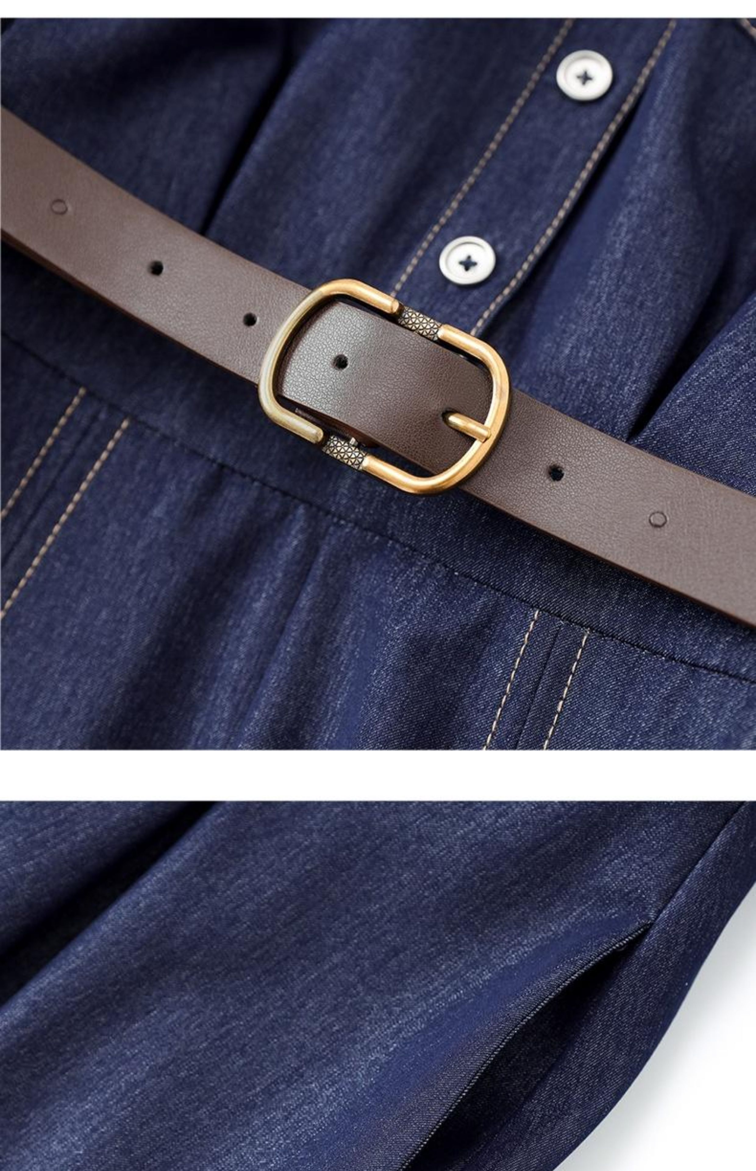 【高货wl】全新升级【铂金会员321/天猫429/差价108】(00911) 洛诗琳新款翻领蓝色工装衬衫裙时尚气质通勤收腰牛仔裙