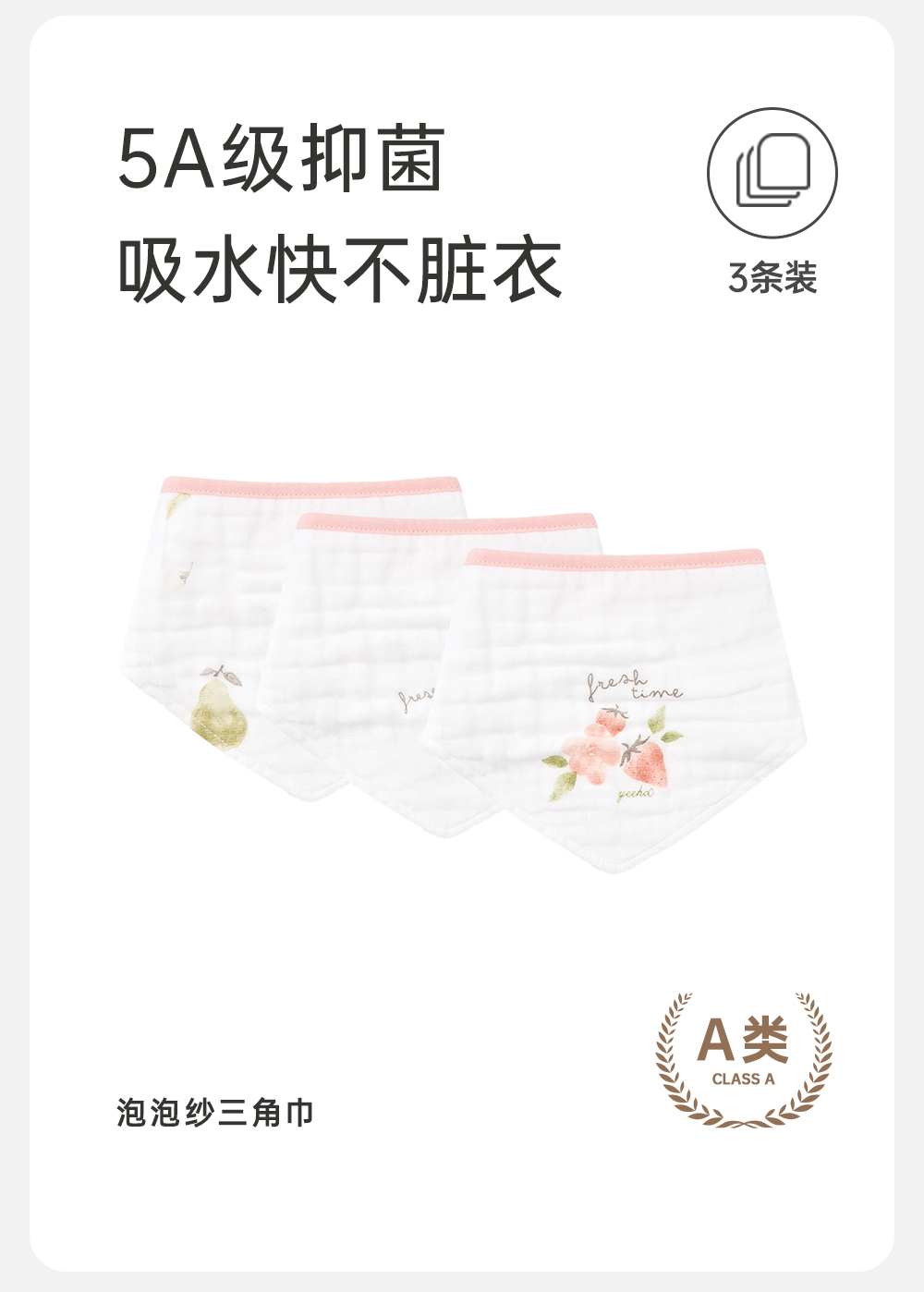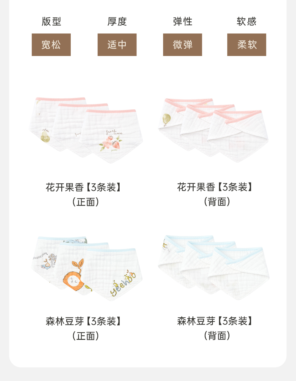 【商场同款】英氏婴幼儿毛巾三角巾口水巾抑菌纯棉三条装饭兜