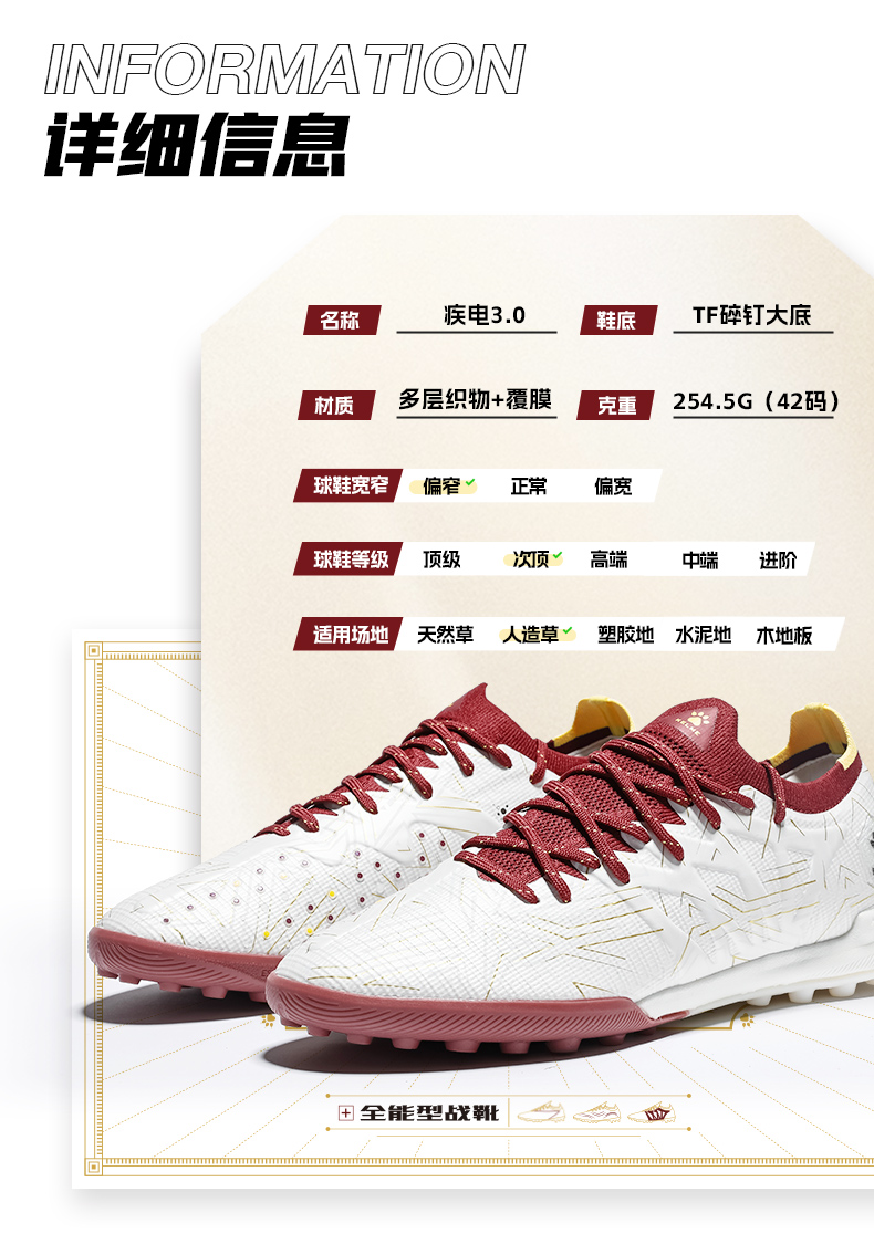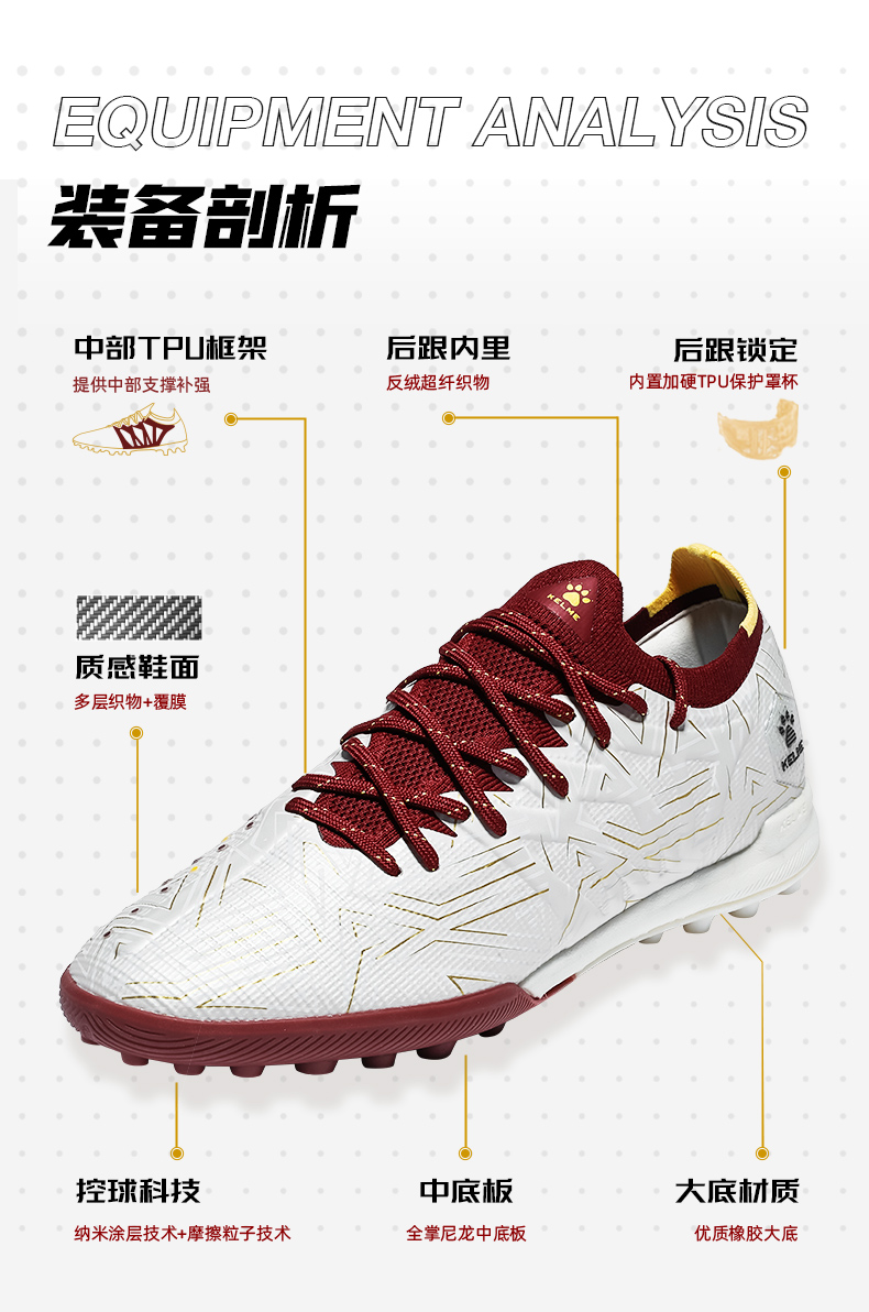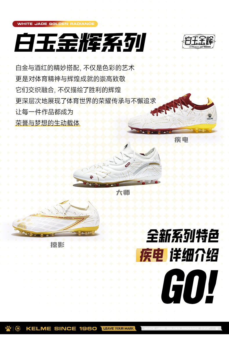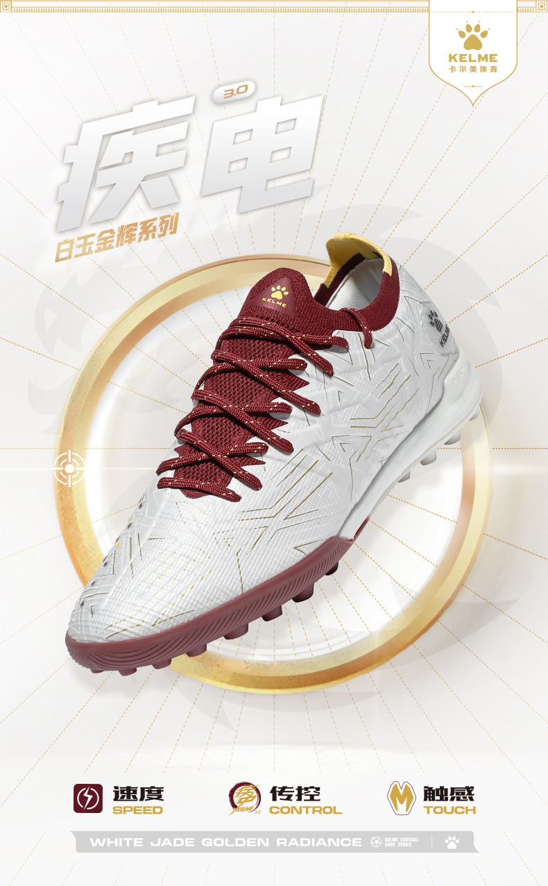 卡尔美白玉金辉系列疾电3.0TF碎钉大底成人足球鞋