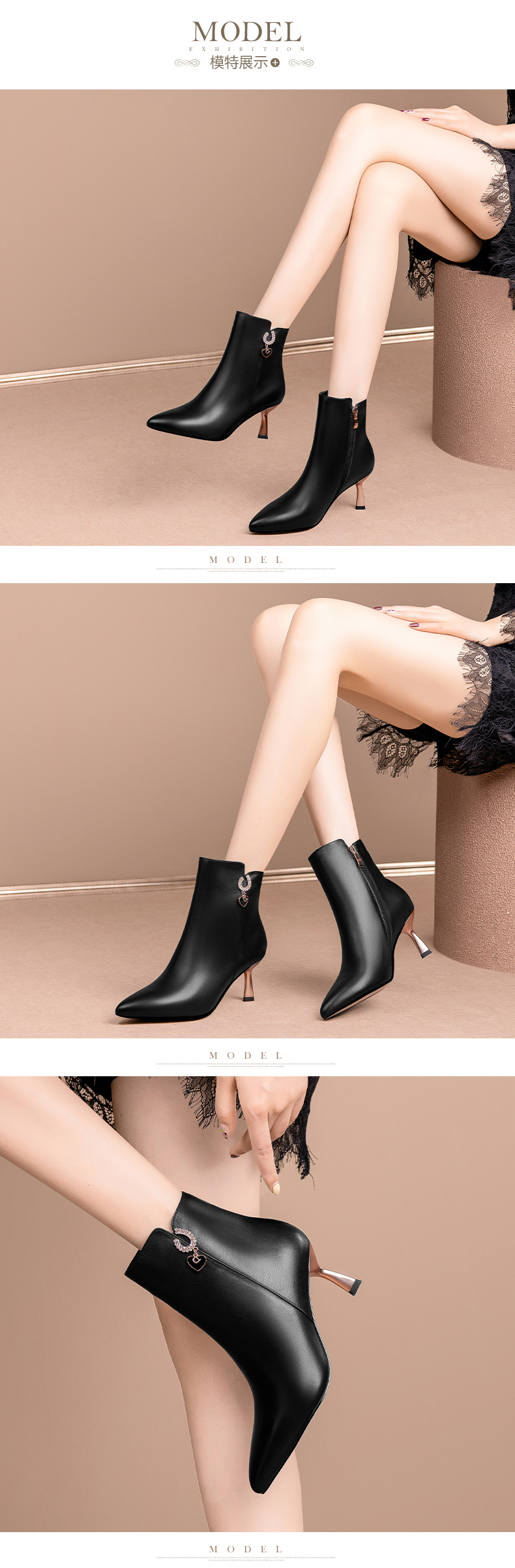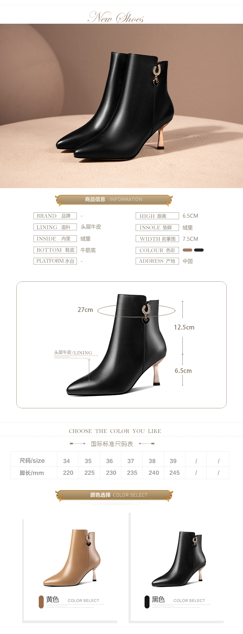 高跟韩版气质,尖头高跟短靴 HY-H2474