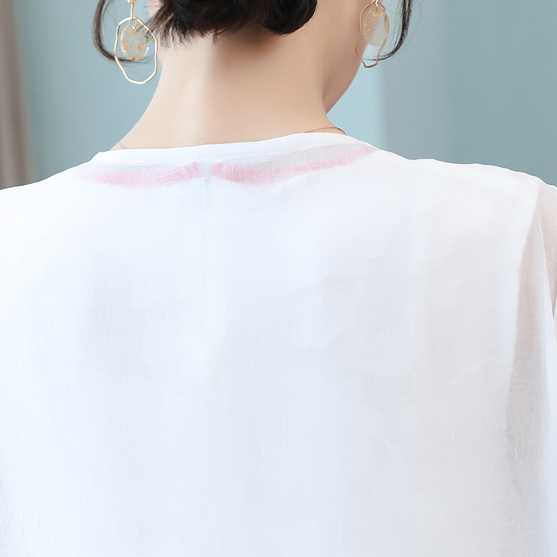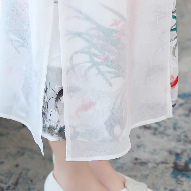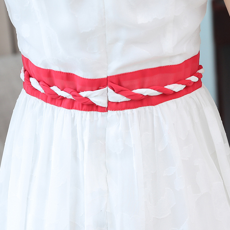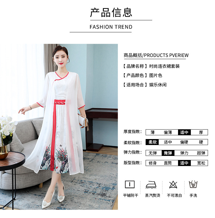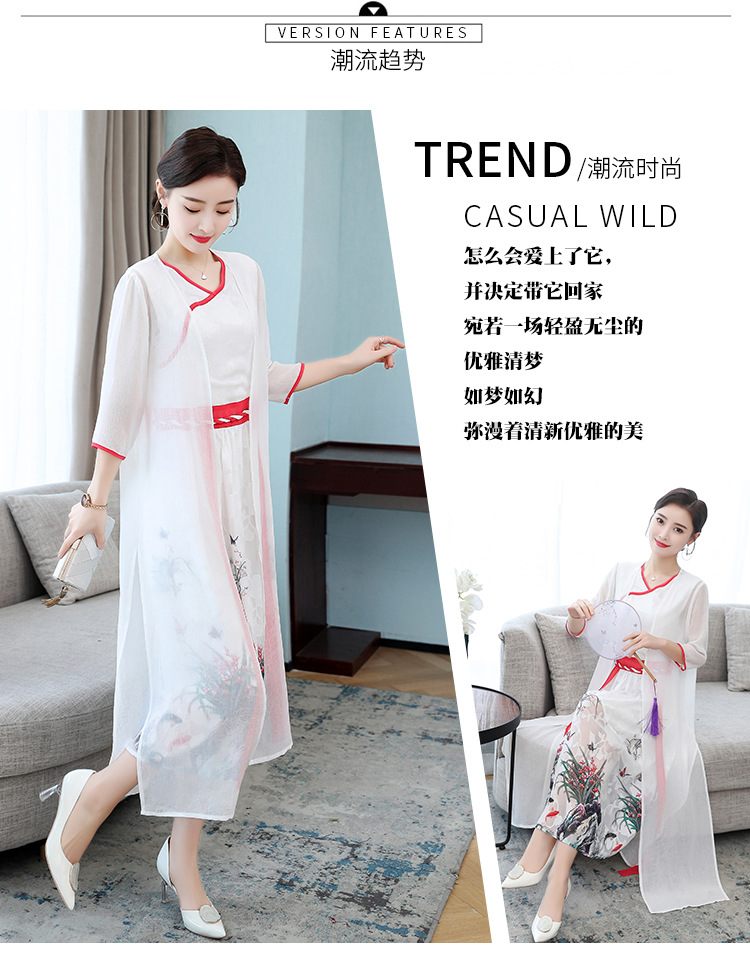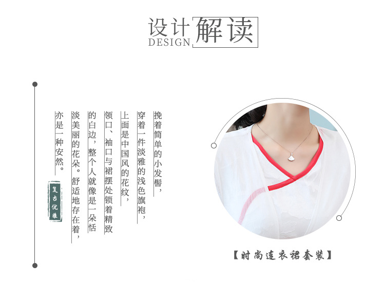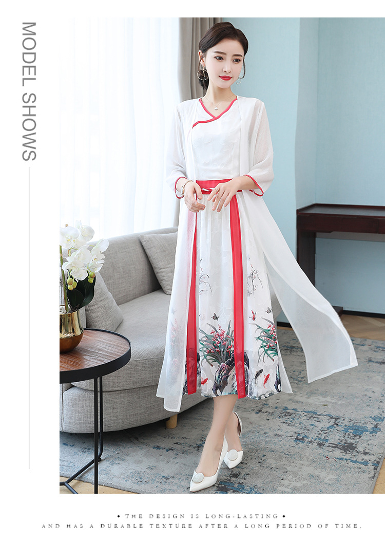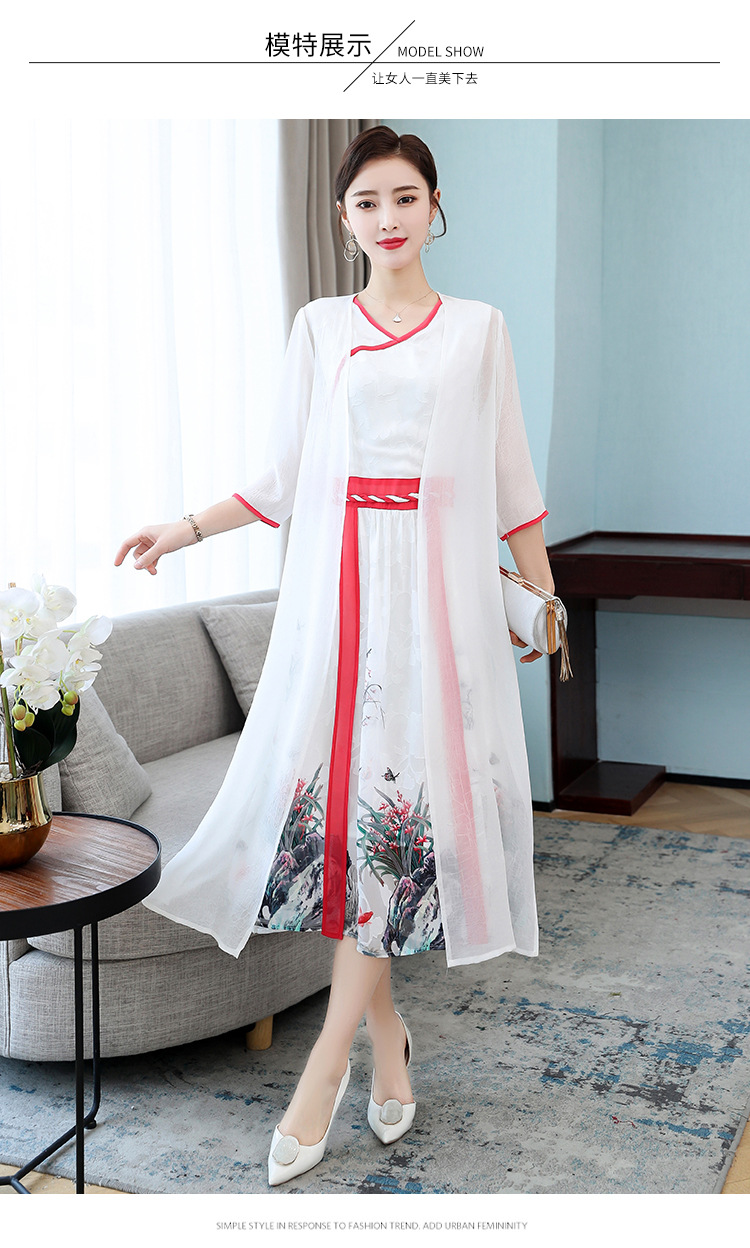 YH-78378文艺复古汉服改良连衣裙古风收腰刺绣改良V领雪纺连衣裙ZXH