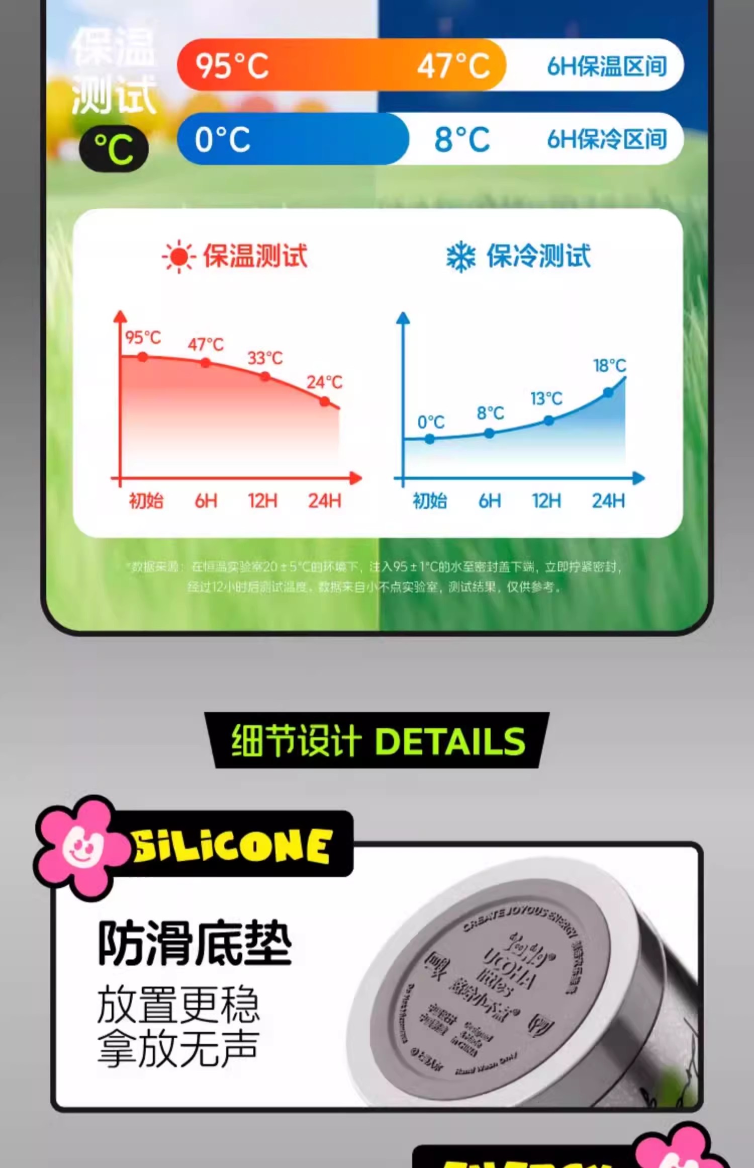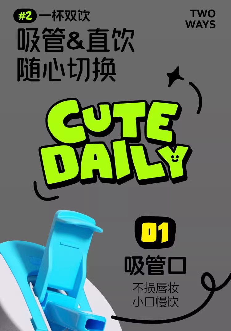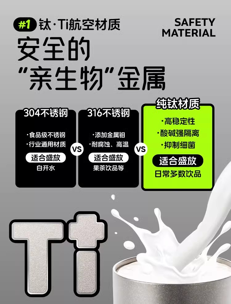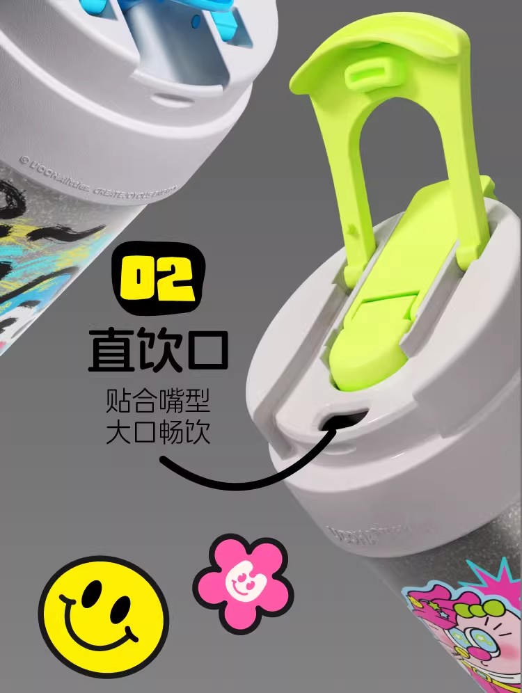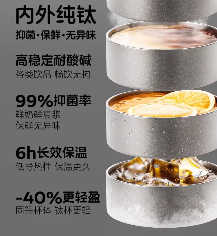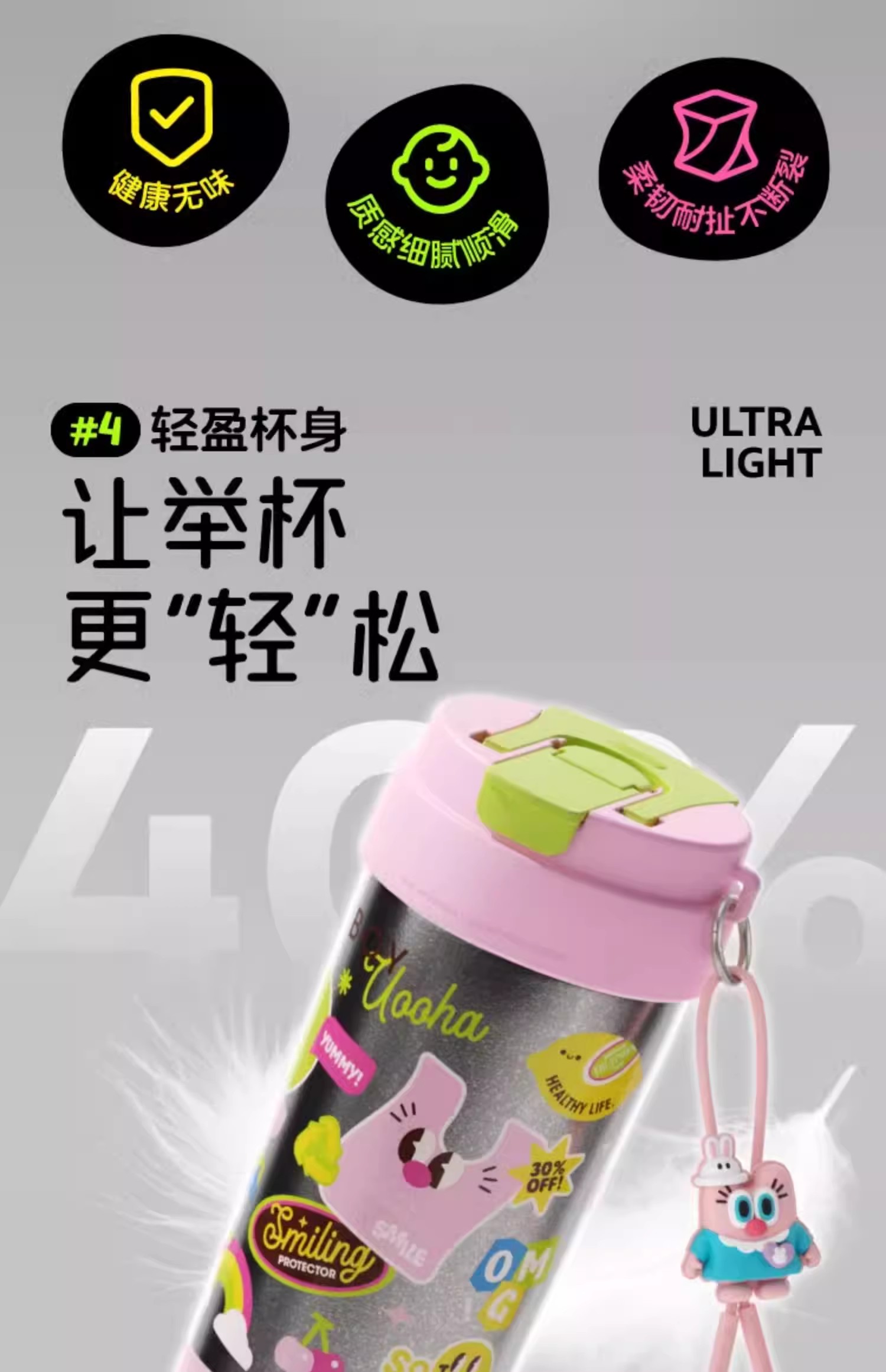 uooha多巴胺纯钛双饮咖啡杯冲鸭悠果-灰蓝 (490ml)