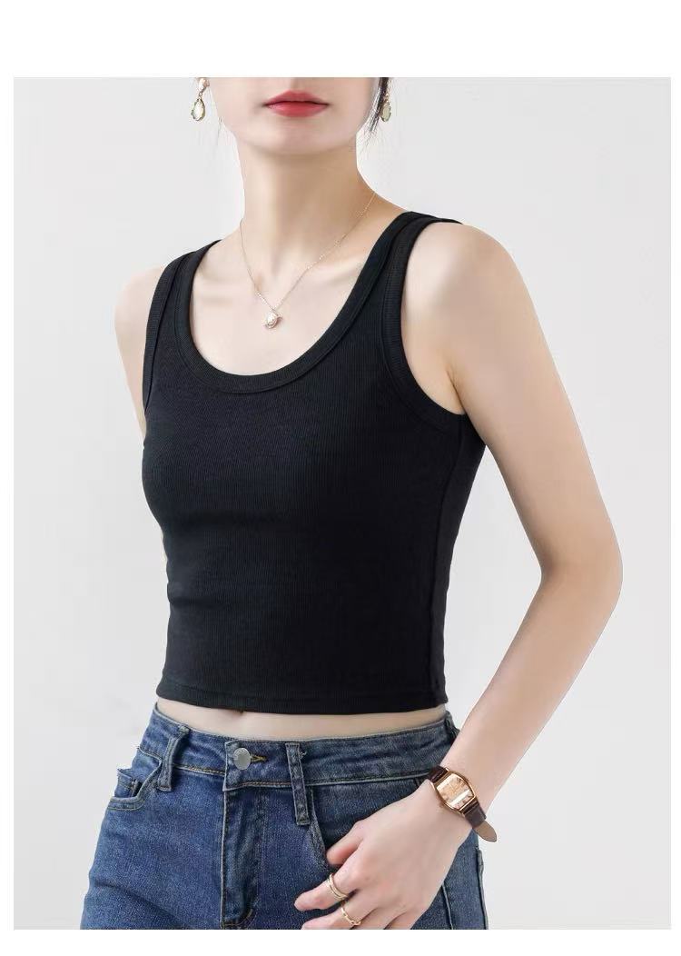 【品质美背】精梳棉~3621免穿内衣一体杯秋季螺纹弹力棉背心-喜出