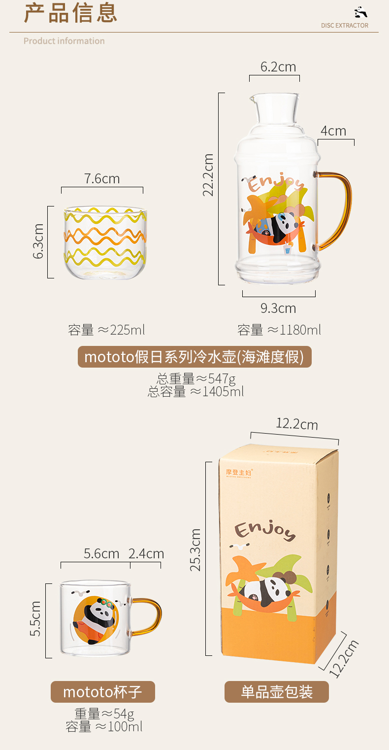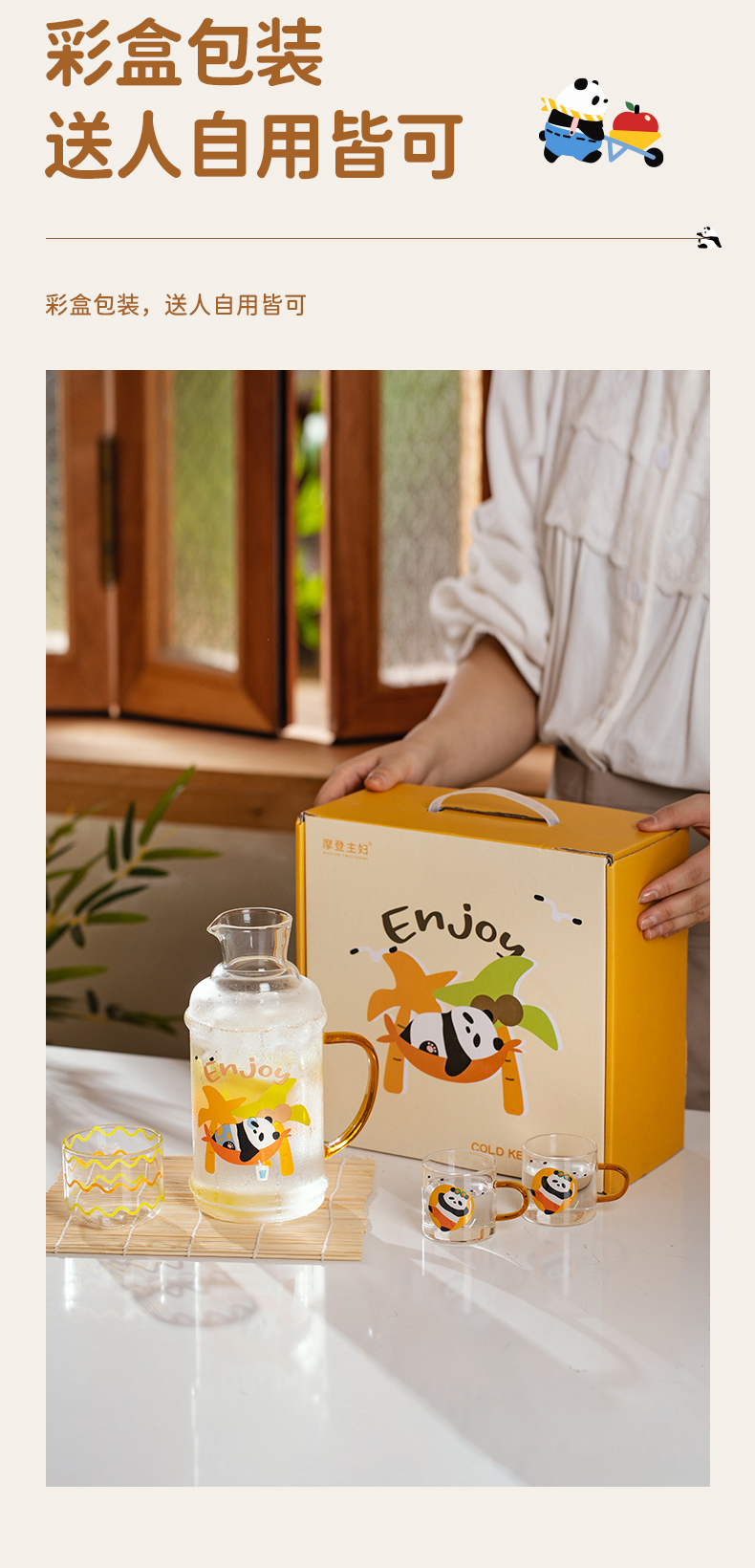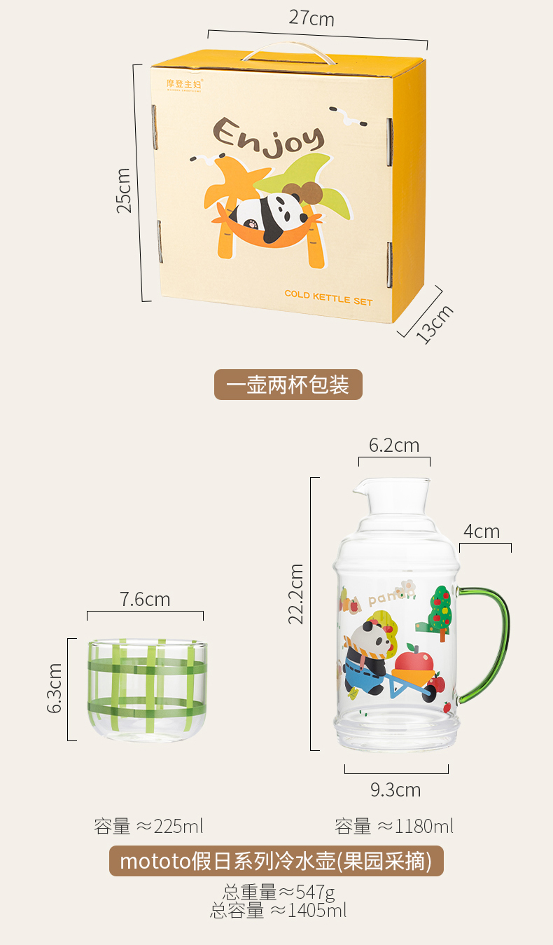 摩登主妇mototo玻璃冷水壶耐高温家用凉水壶高硼硅大容量礼盒套装