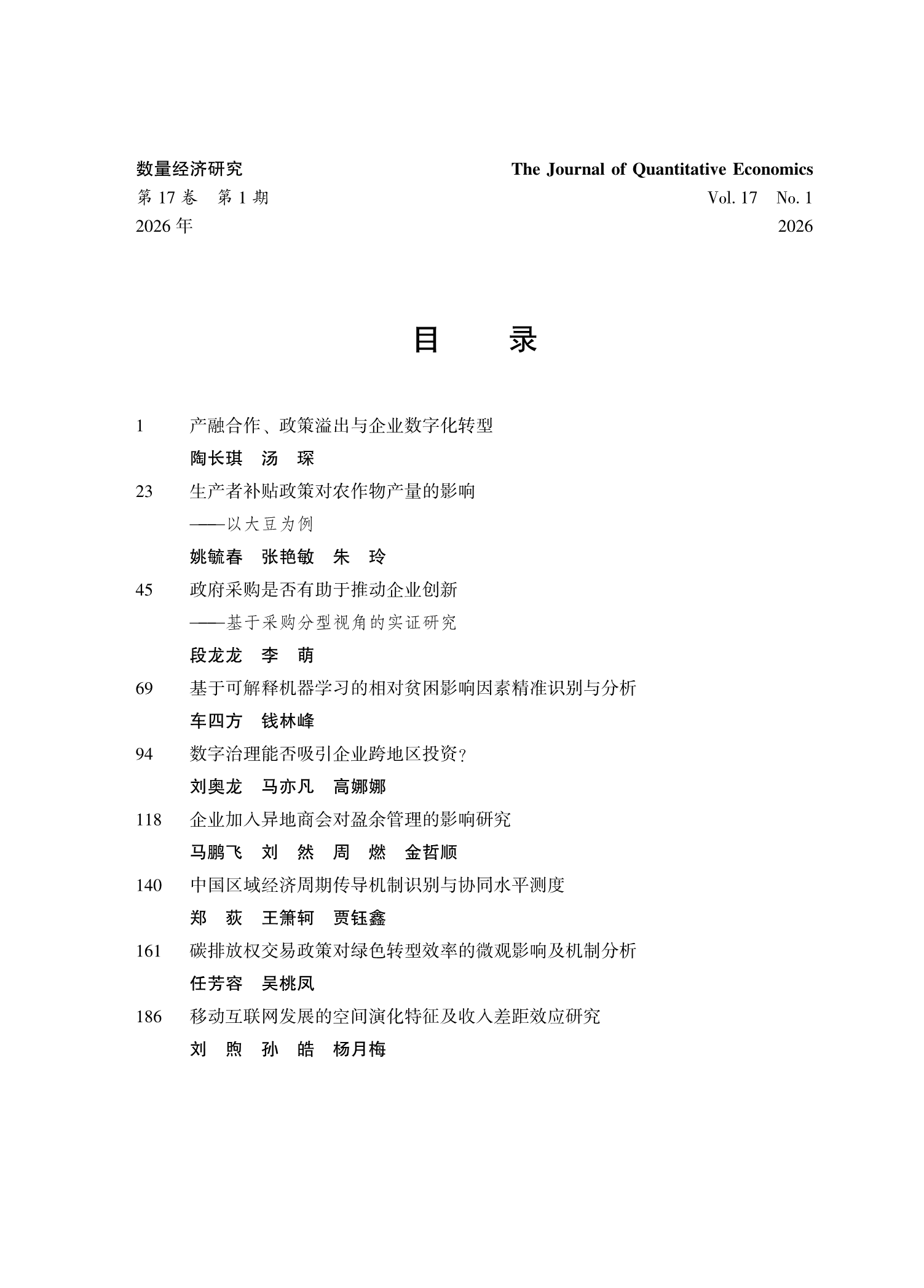 数量经济研究.2026年.第17卷.第1期
